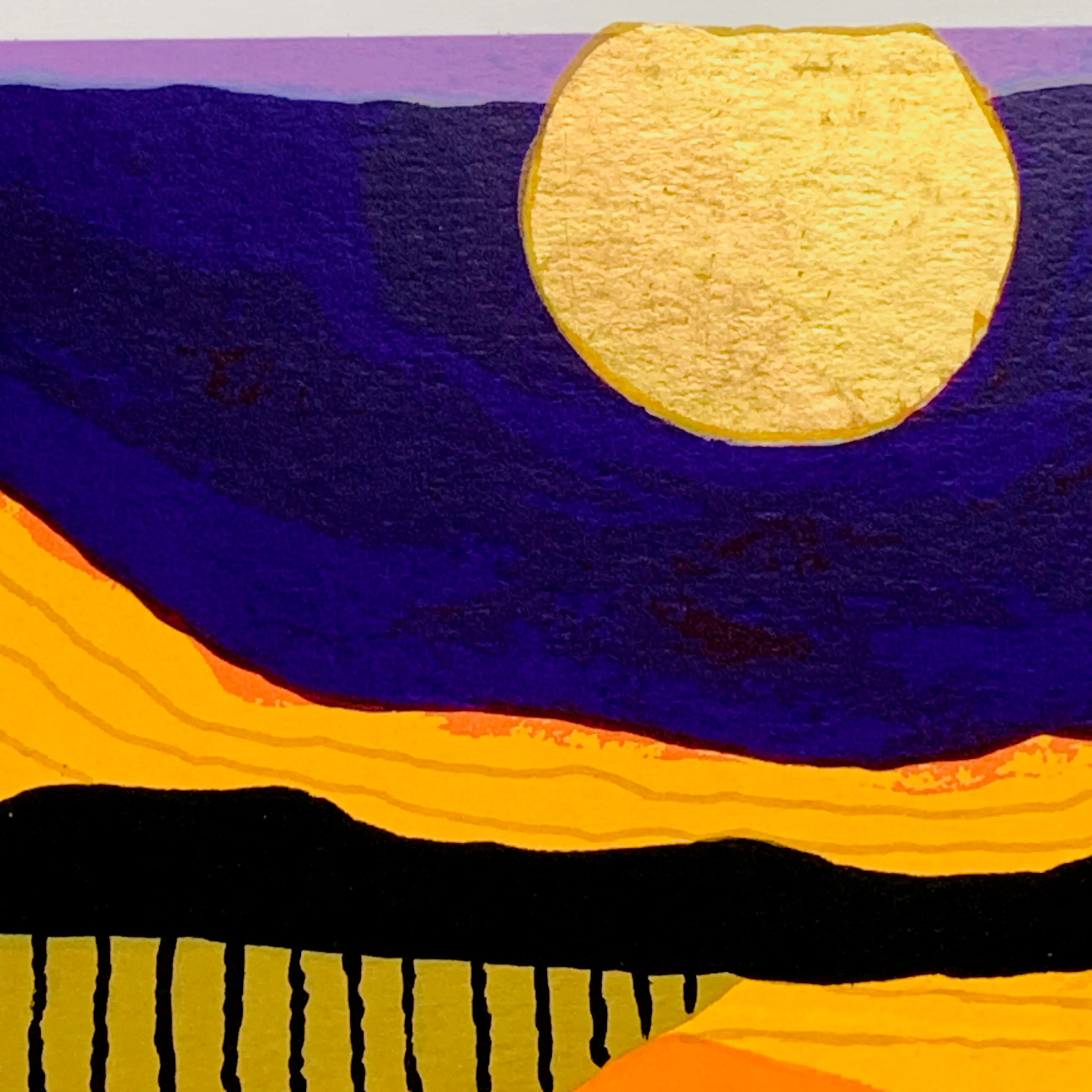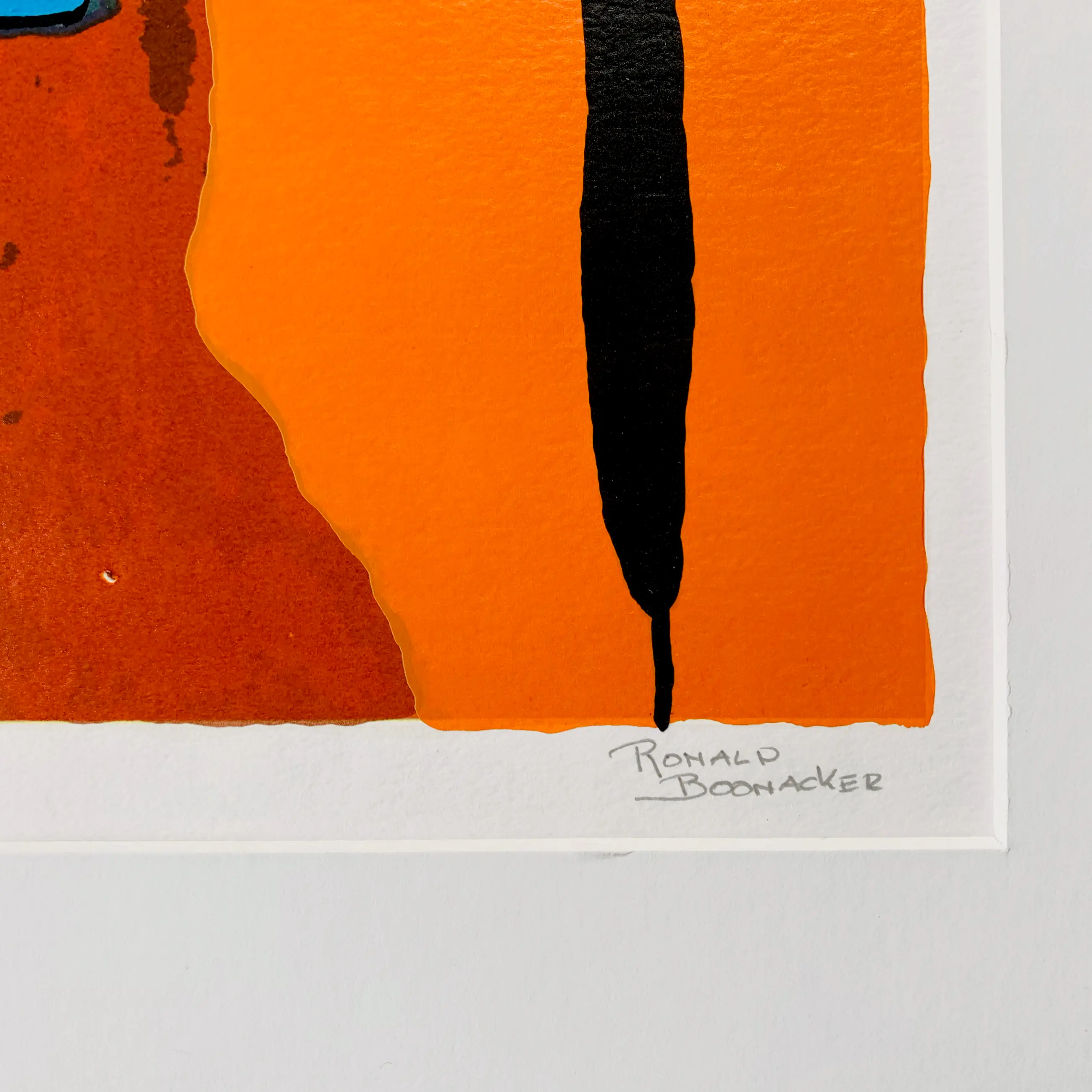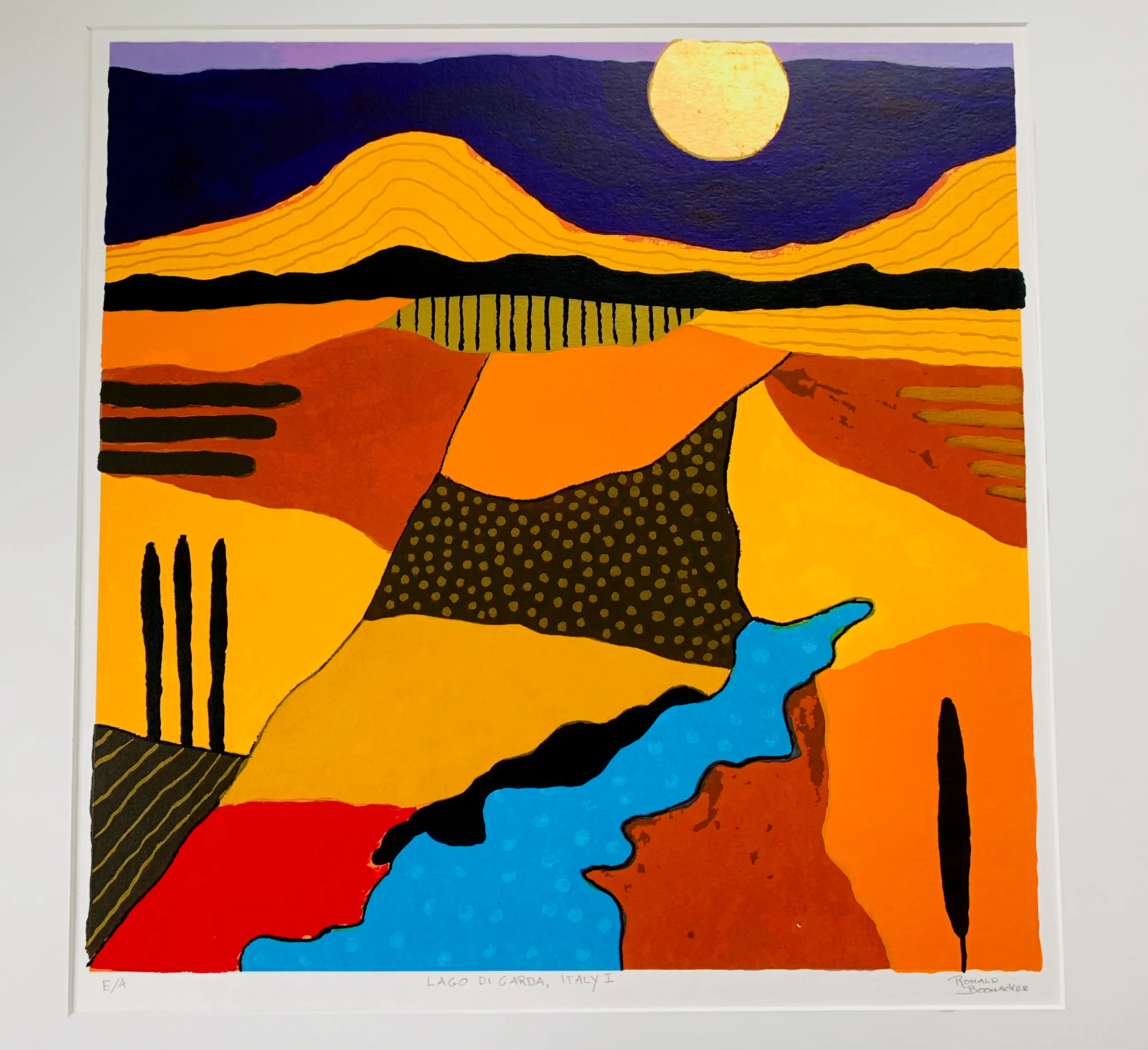 Conditie: uitstekend. In passe-partout. Oplage: E.A. Handgesigneerd. Bladgoud verwerkt in de zon.