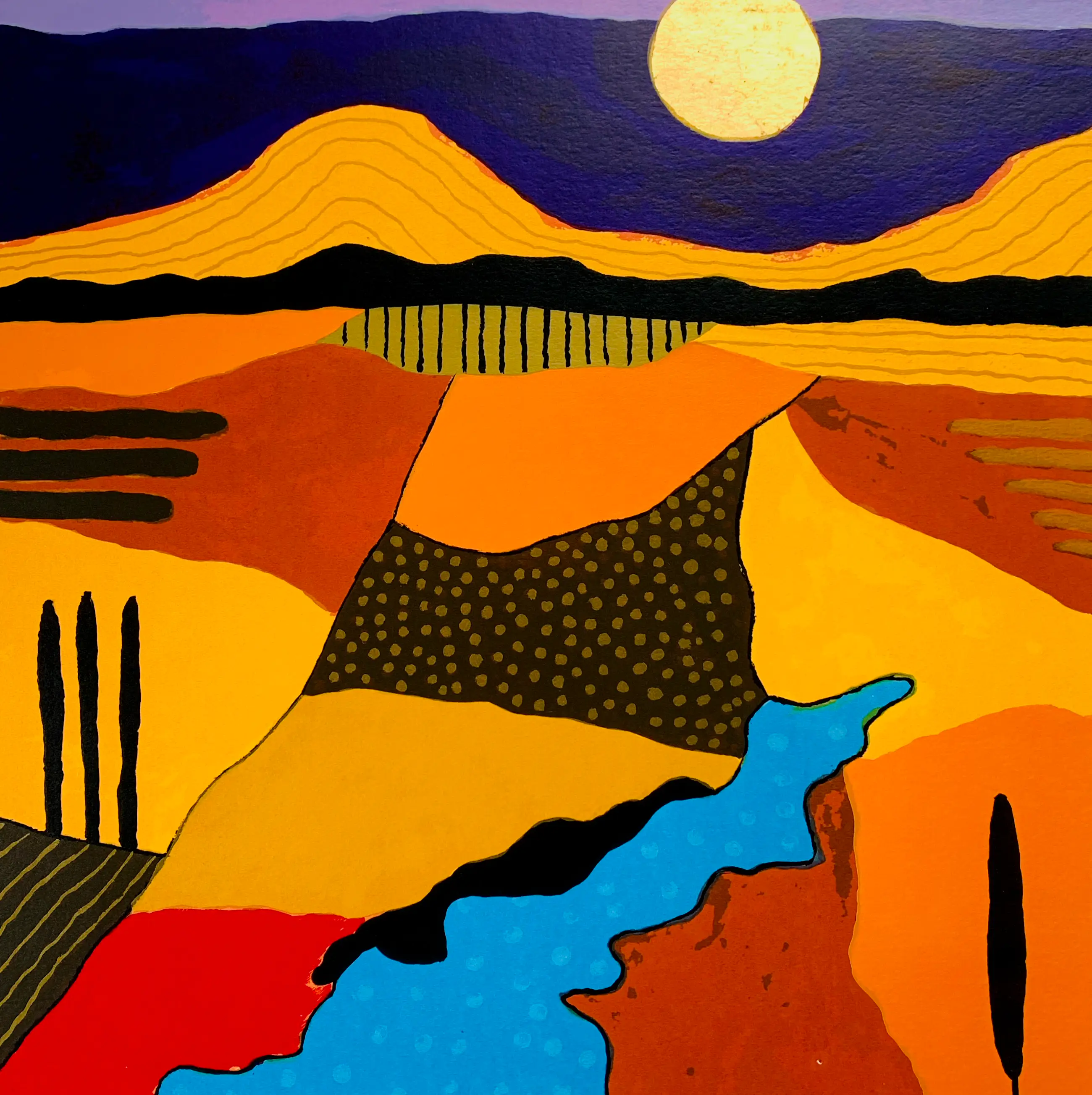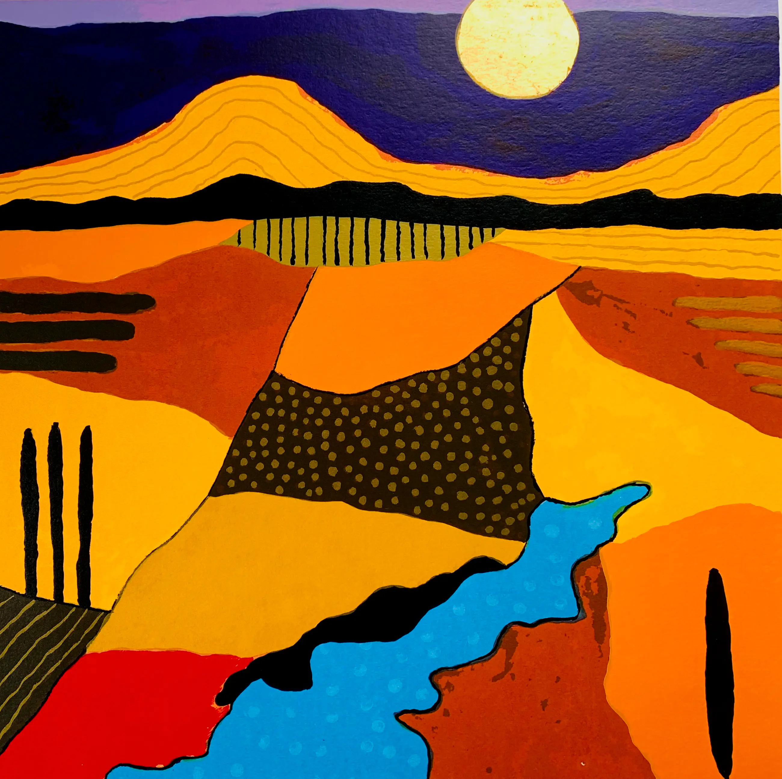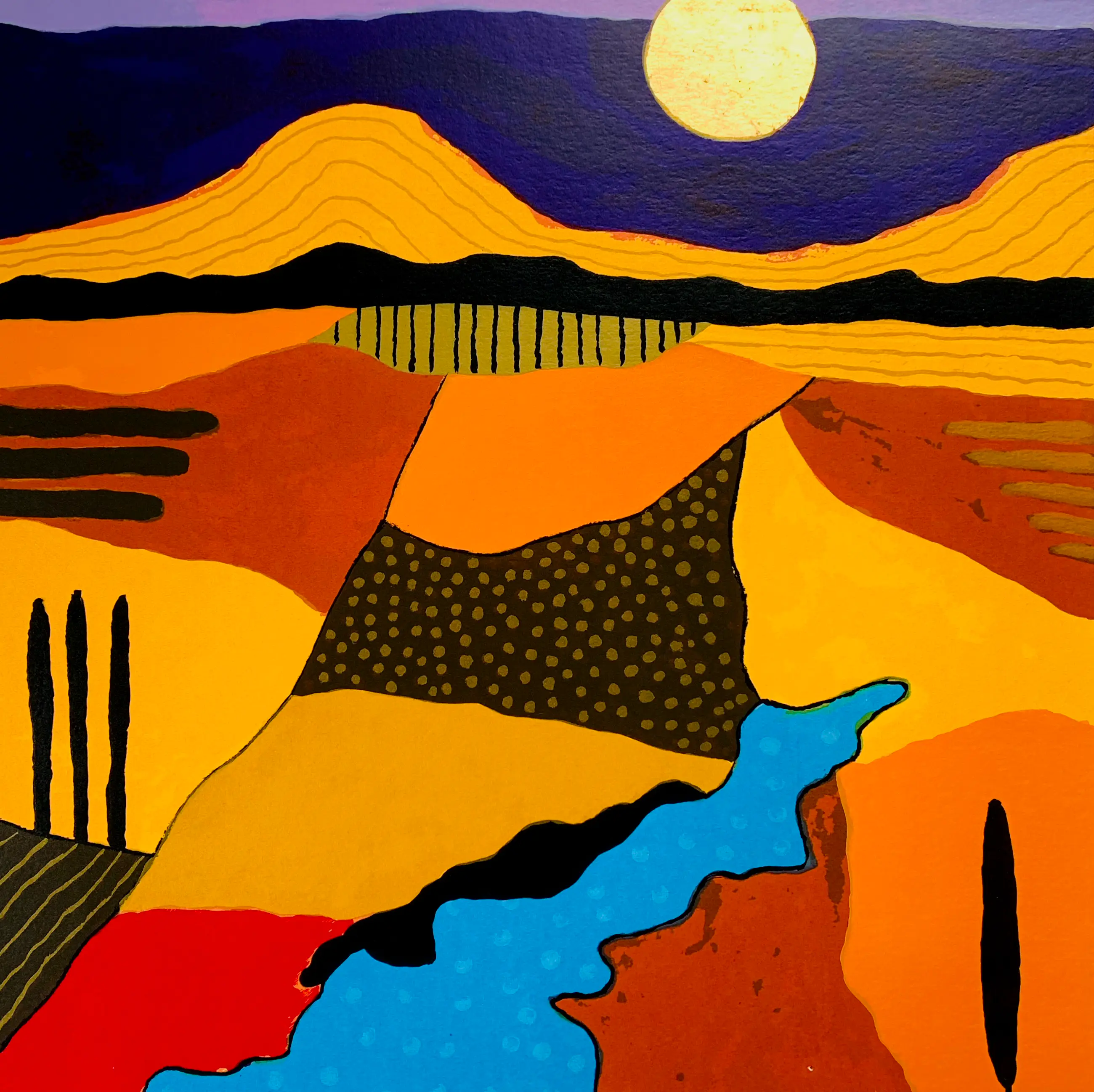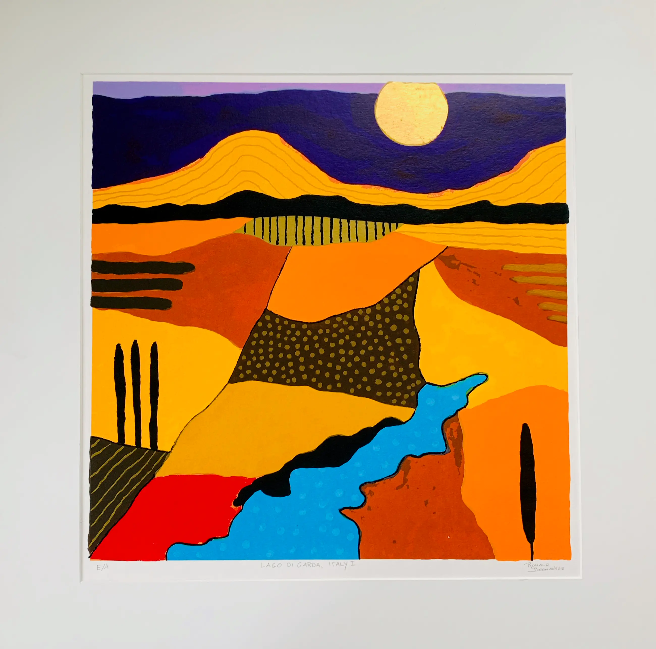 Conditie: uitstekend. In passe-partout. Oplage: E.A. Handgesigneerd. Bladgoud verwerkt in de zon.