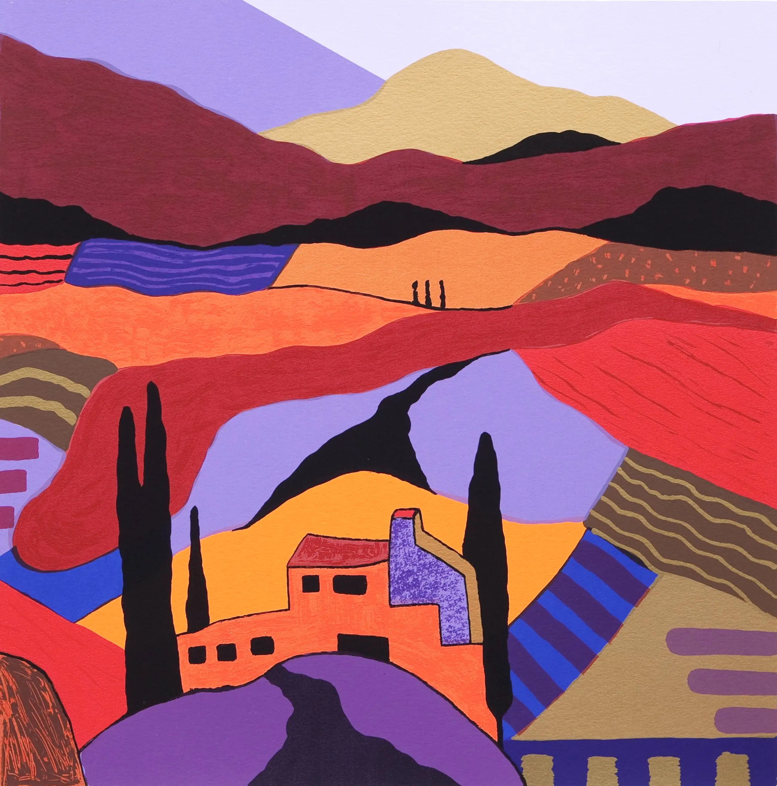 Zeefdruk (geen digitale print) op hoogwaardig 225 grams zuurvrij papier van Hahnemuehle. incl. zuurvrij passepartout. Zuurvrij papier vergeeld/verkleurd niet.