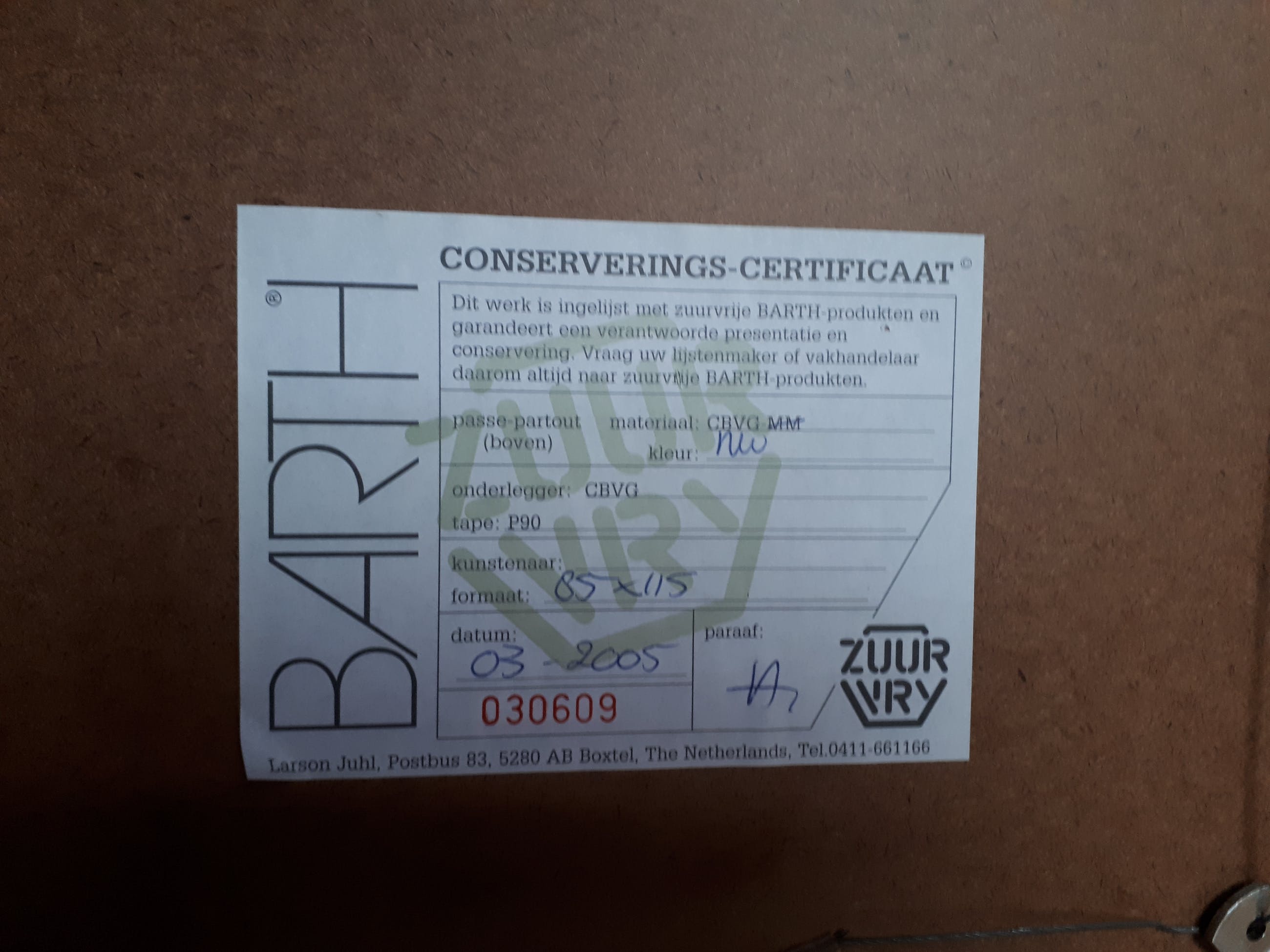 Het werk is af te halen op locatie. Als koper dient u zelf verpakkingsmateriaal mee te nemen. De locatie is: Nieuwegein, Nederland