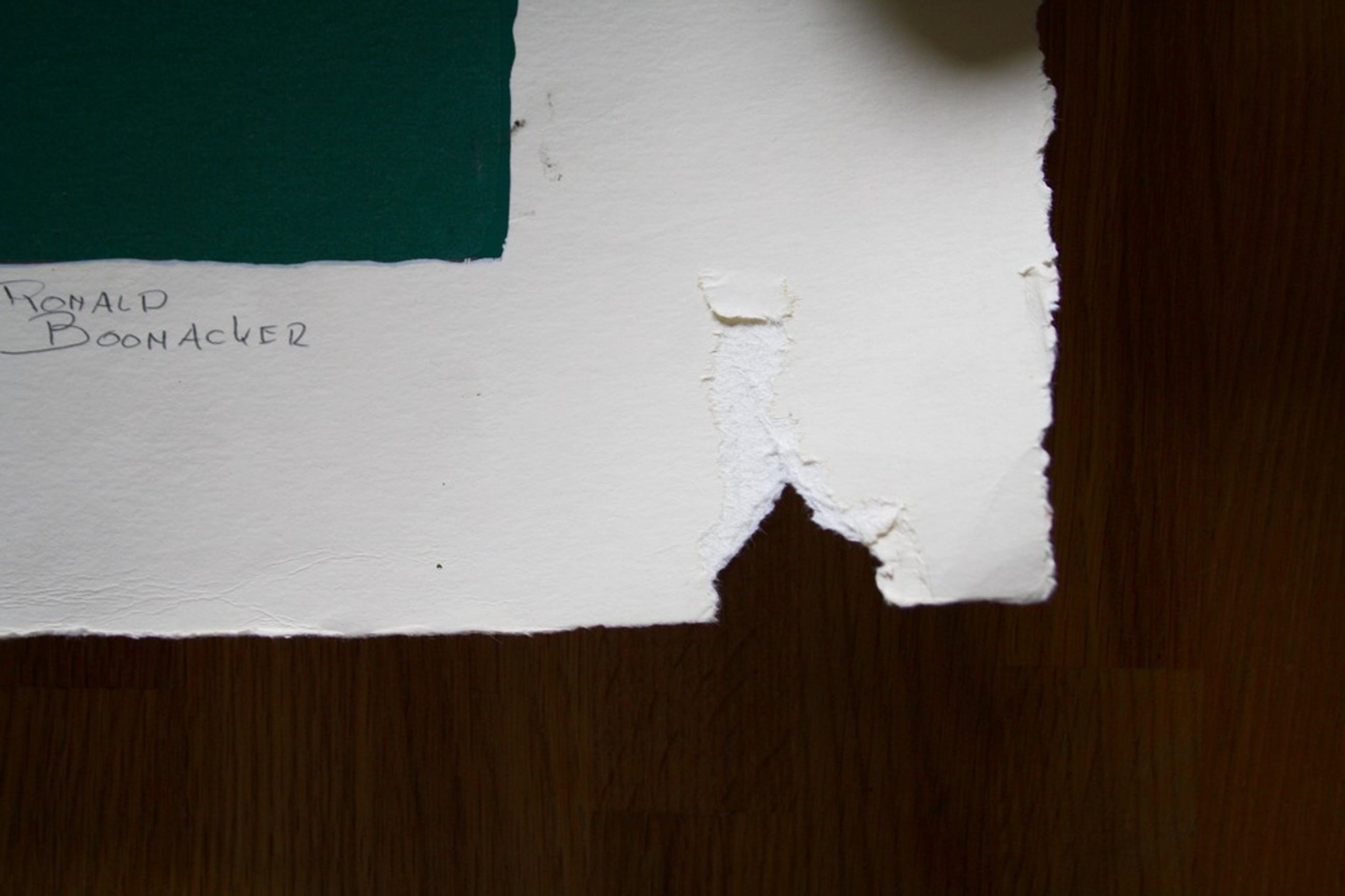 Conditie: Goed/ beschadigd papier rechts onder (valt weg onder passepartout) Zie foto.