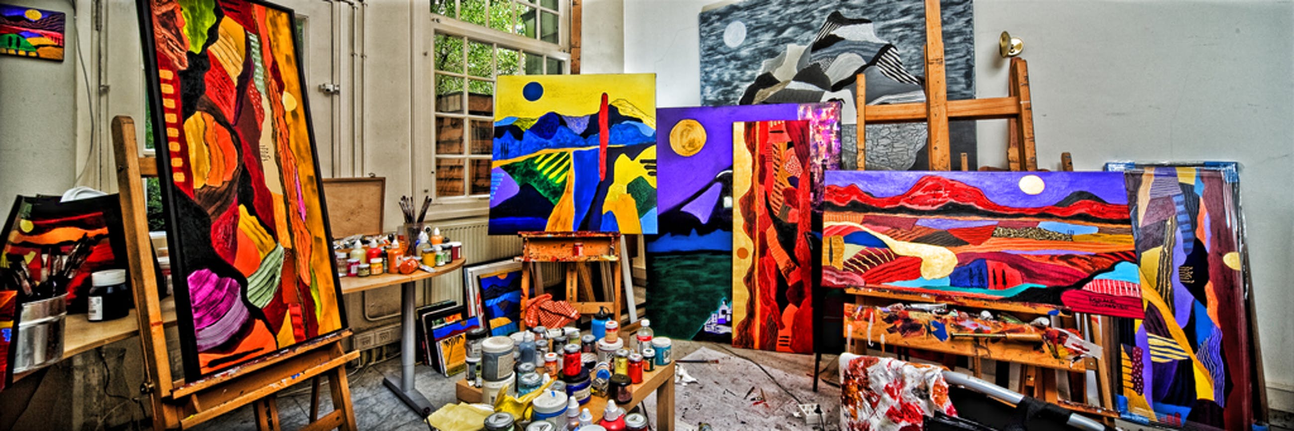 30 kleuren zeefdruk + 21 krt bladgoud (zon)
