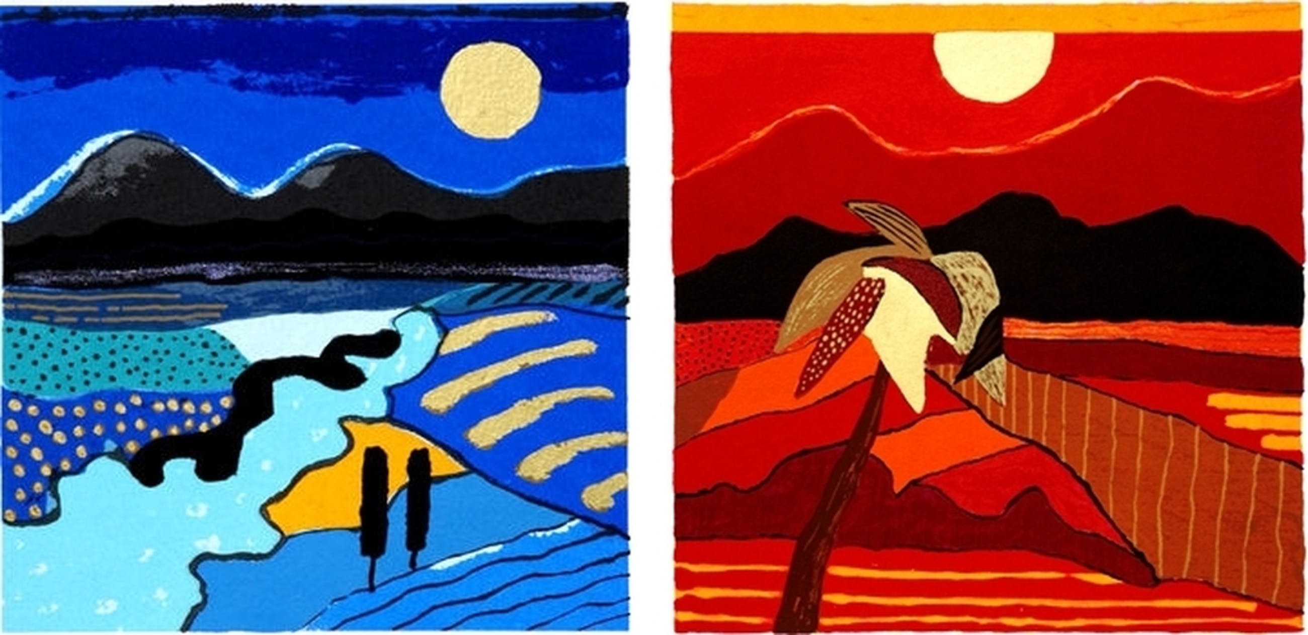 Heldere kleuren, handbewerkt met 22 krt bladgoud.
