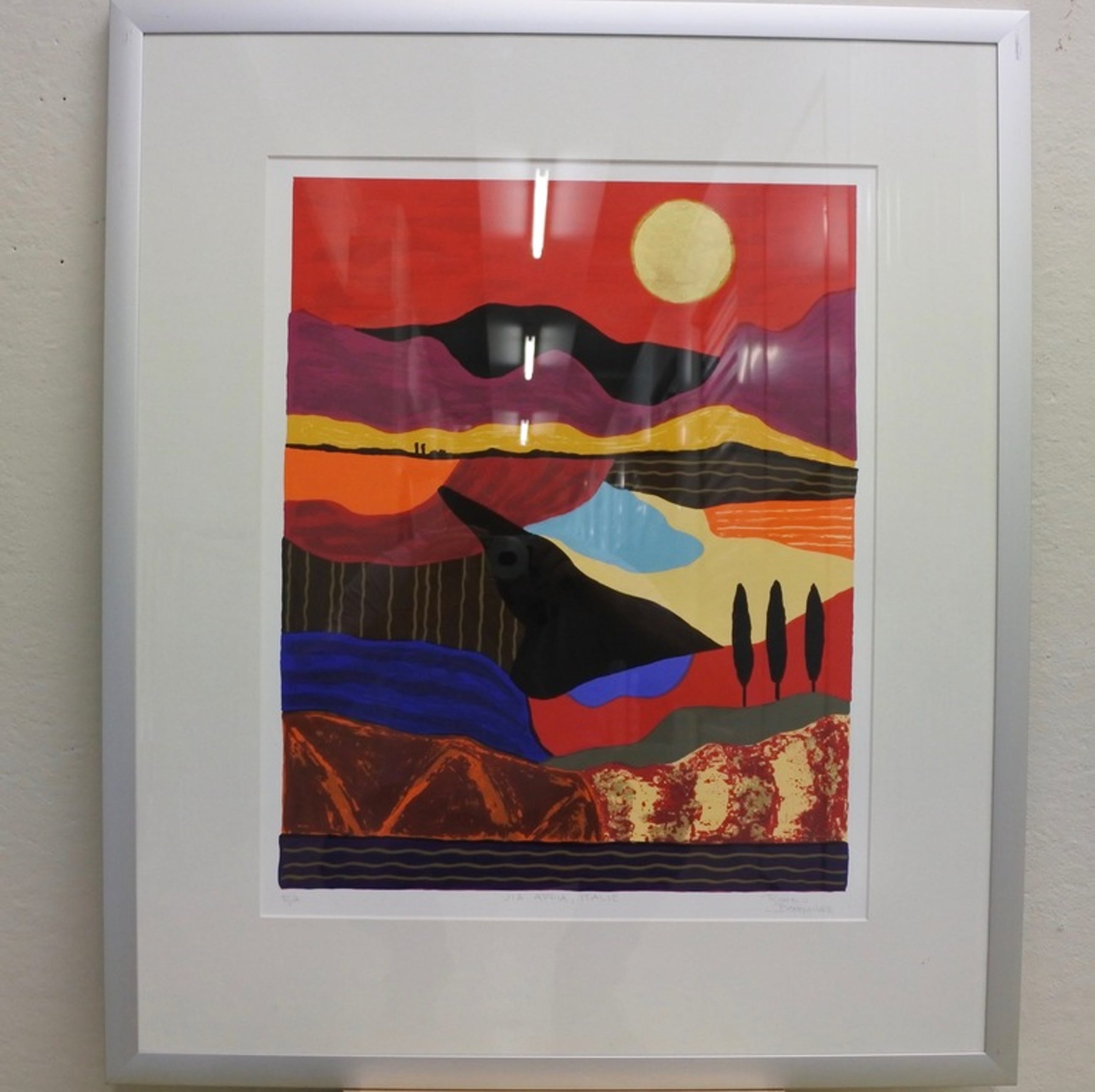 Zeefdruk achter glas /INGELIJST met ophang draad systeem