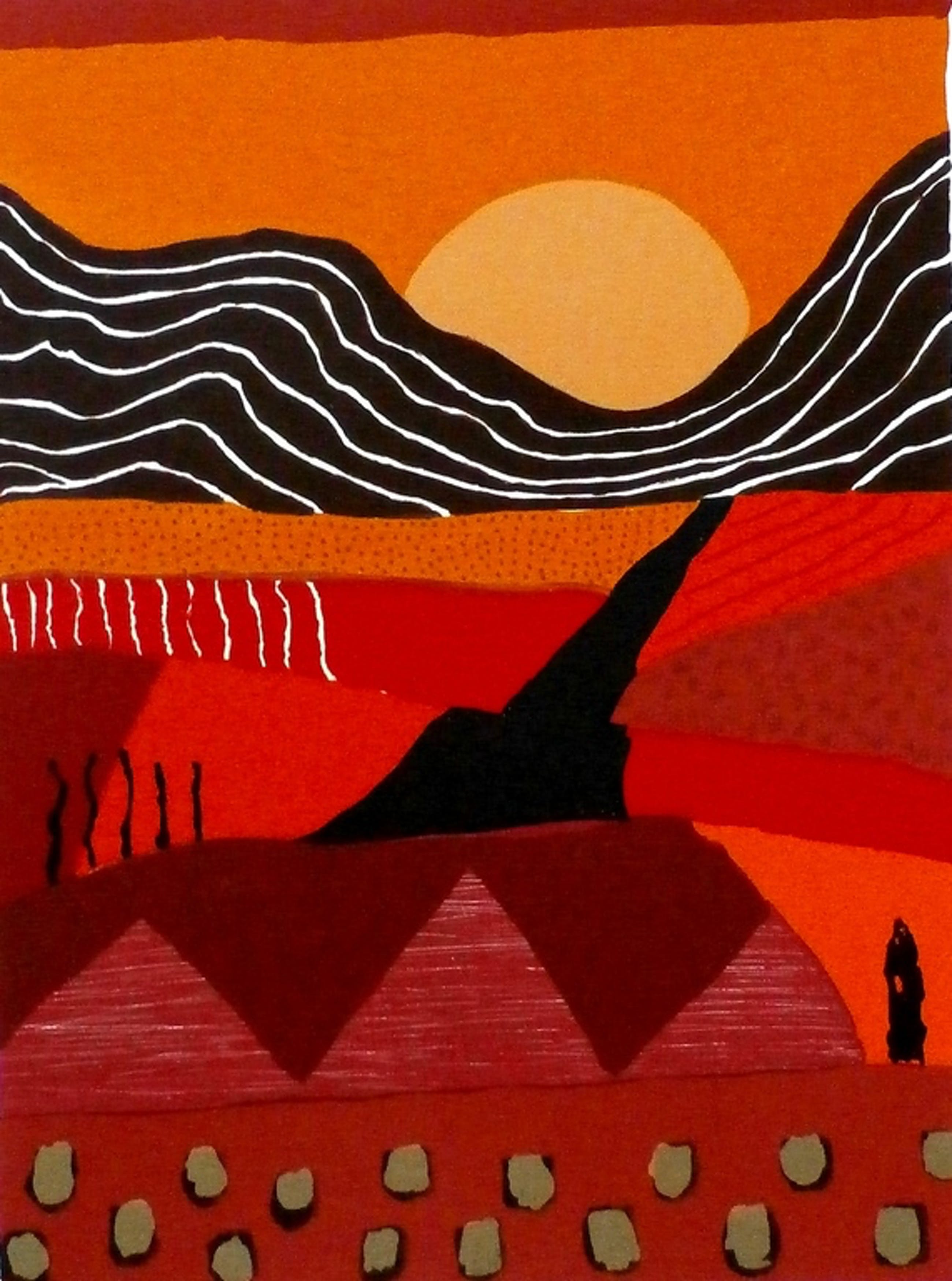 Zeefdruk van Ronald Boonacker. Titel: "Del Campo". Nummer: 69/150 Afmetingen: H61 x b41 cm.