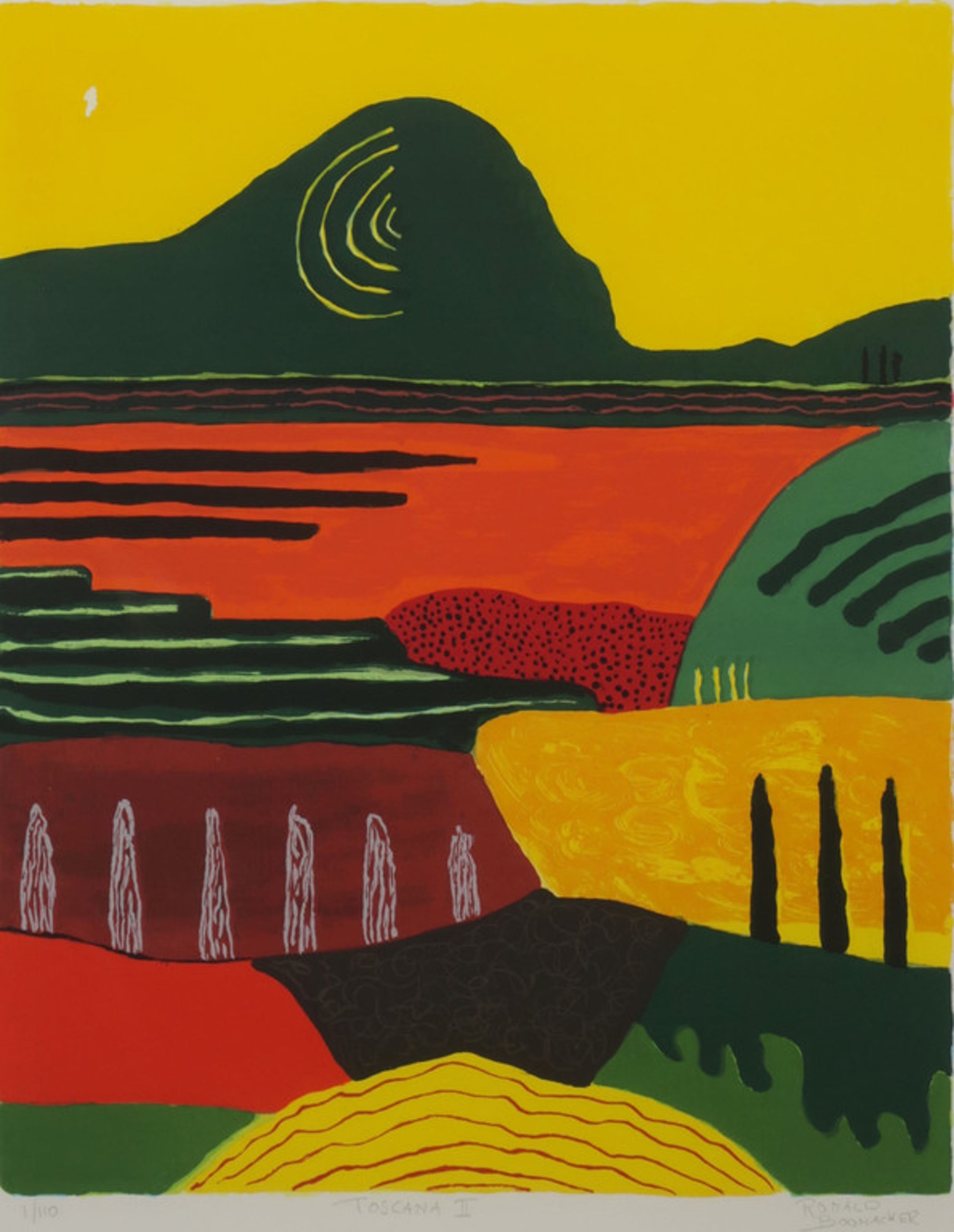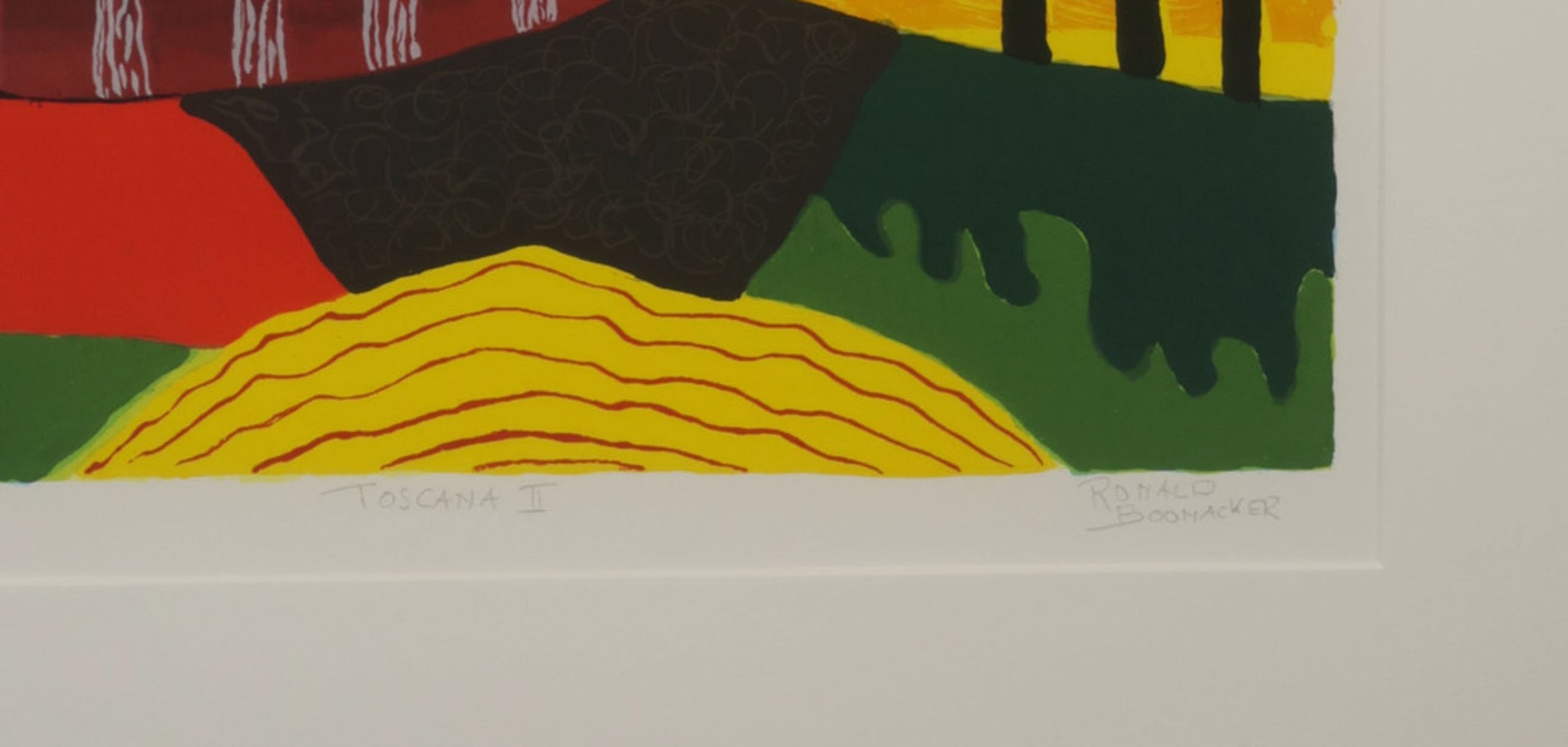 Conditie kunstwerk: In goede staat, maar met een beschadiging in het beeld, te zien als wit vlekje linksboven in het geel. Vandaar de lage inzet.