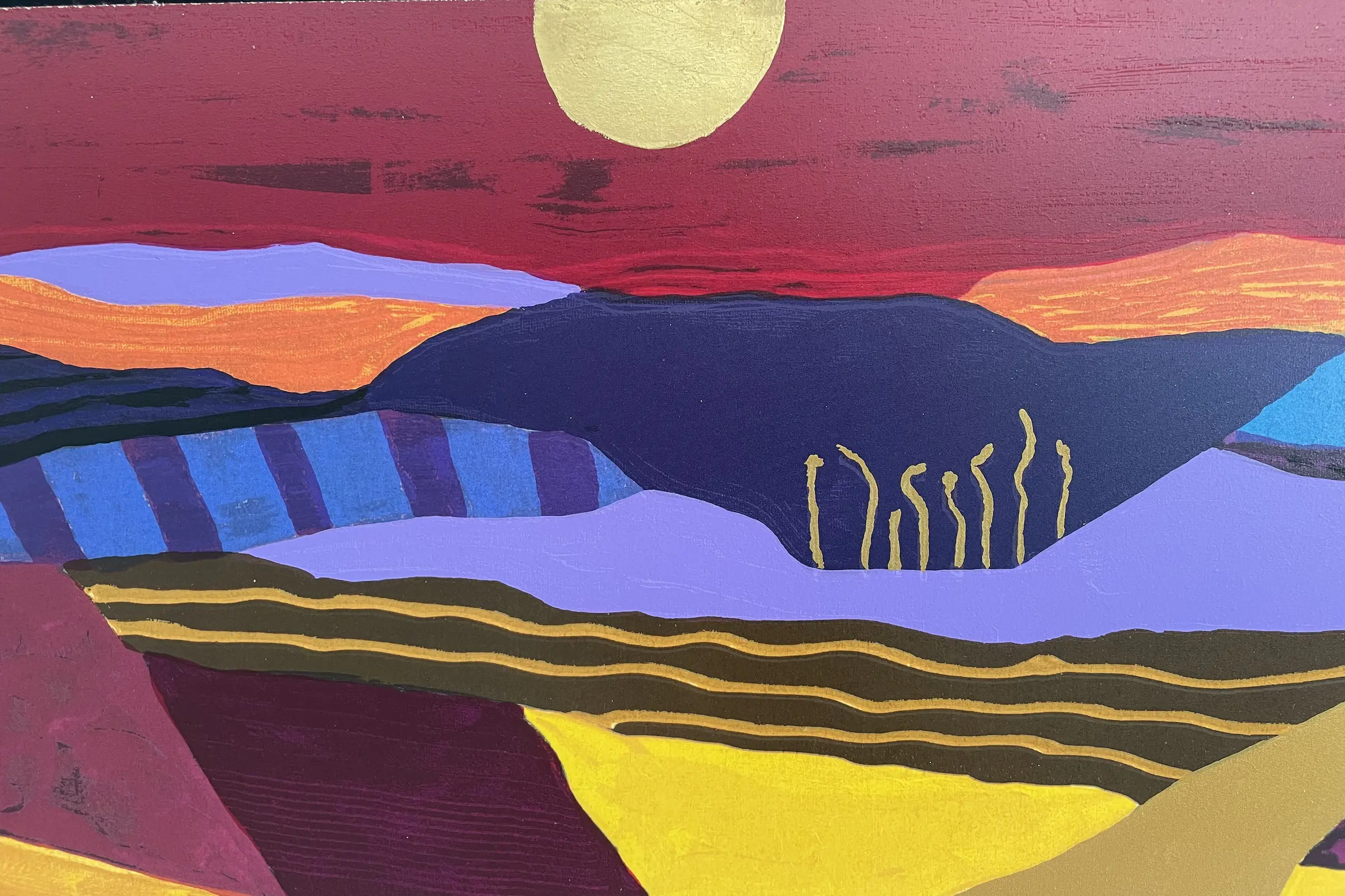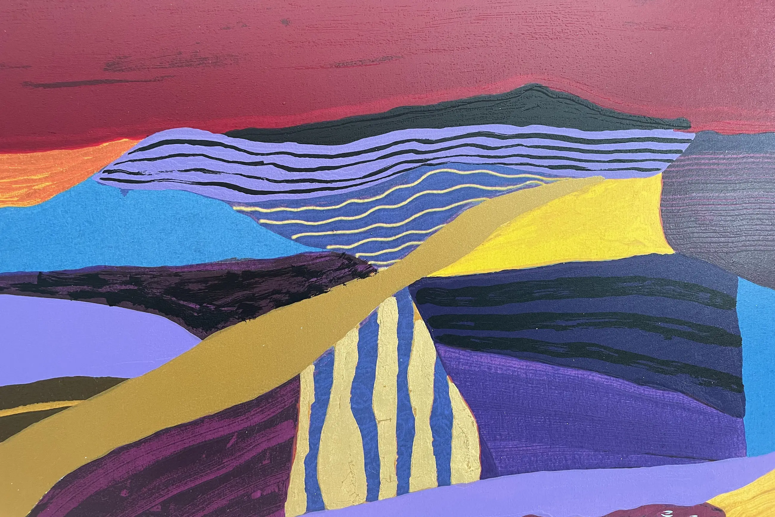 Zeer fraaie kleurenzeefdruk op paneel van Ronald Boonacker.