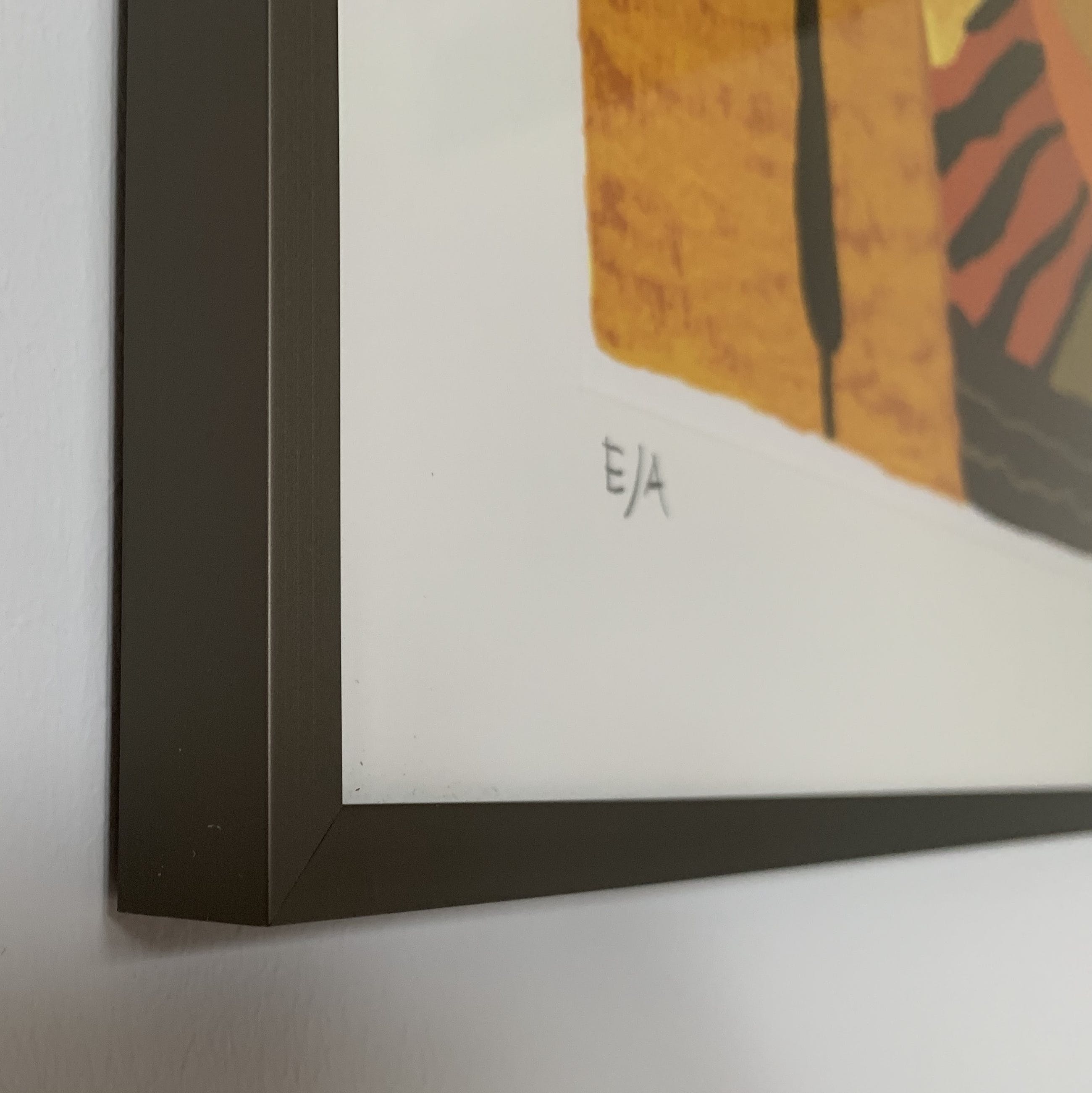 Zeefdruk (geen digitale print) op hoogwaardig 250 grams zuurvrij papier van Hahnemuehle. incl. zuurvrij passepartout. Zuurvrij papier vergeeld/verkleurd niet. De zeefdruk is achter glas.