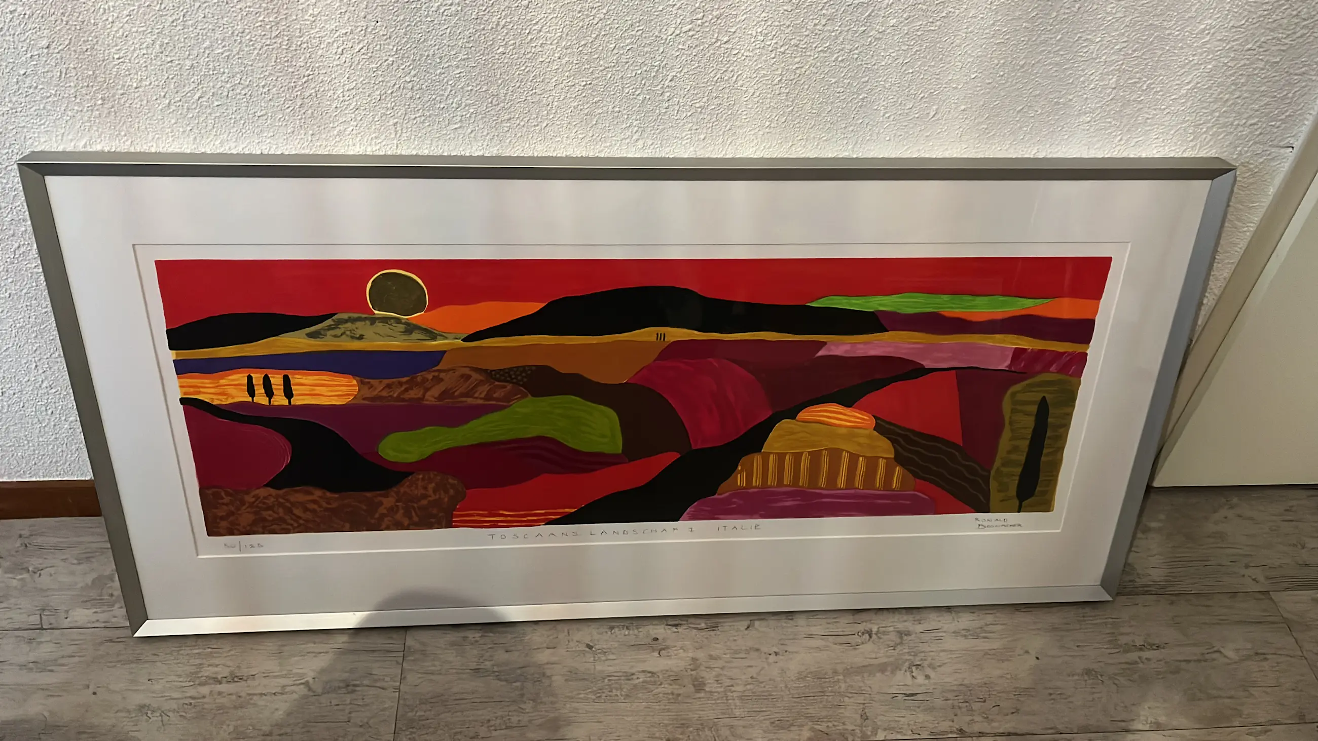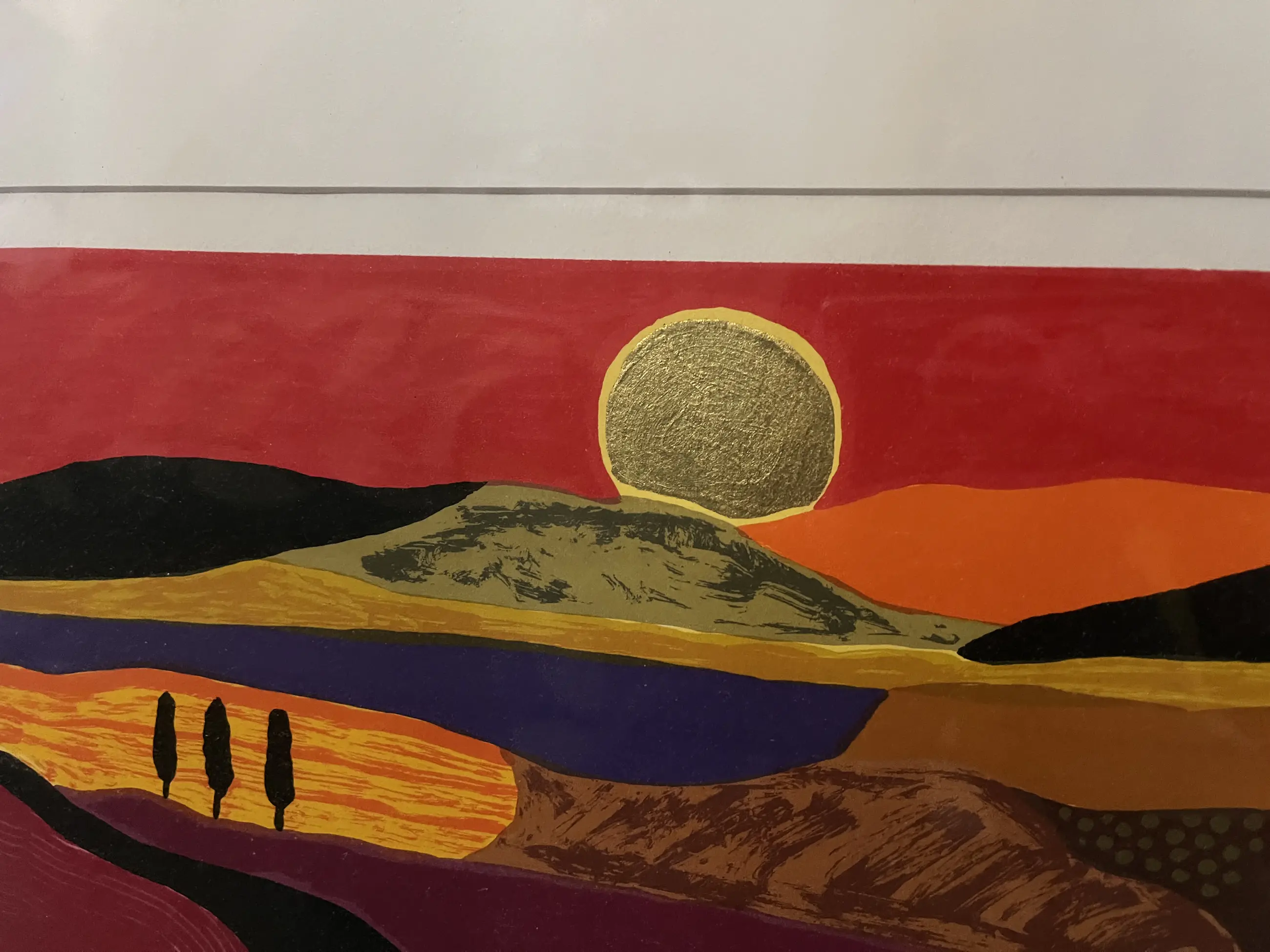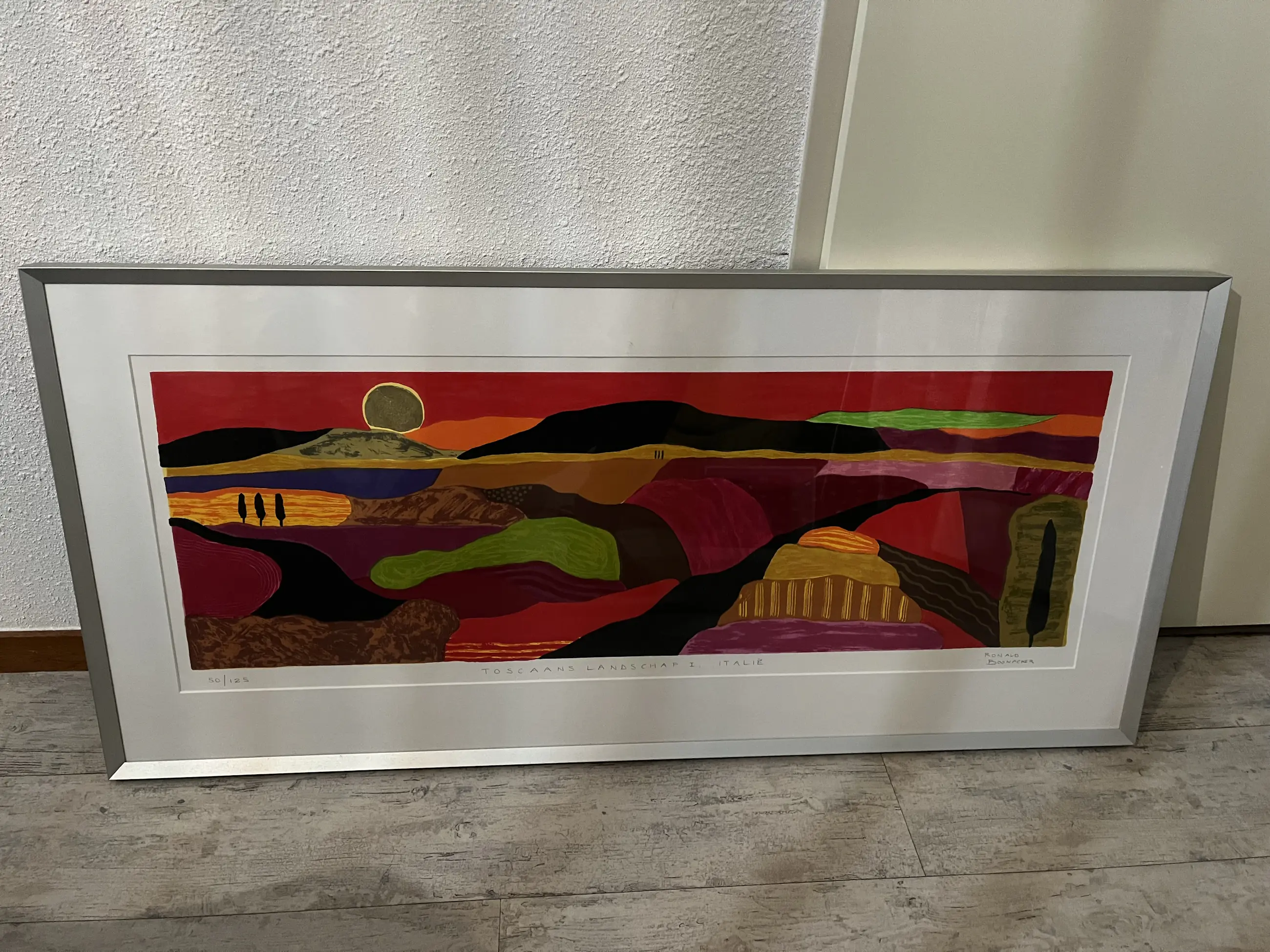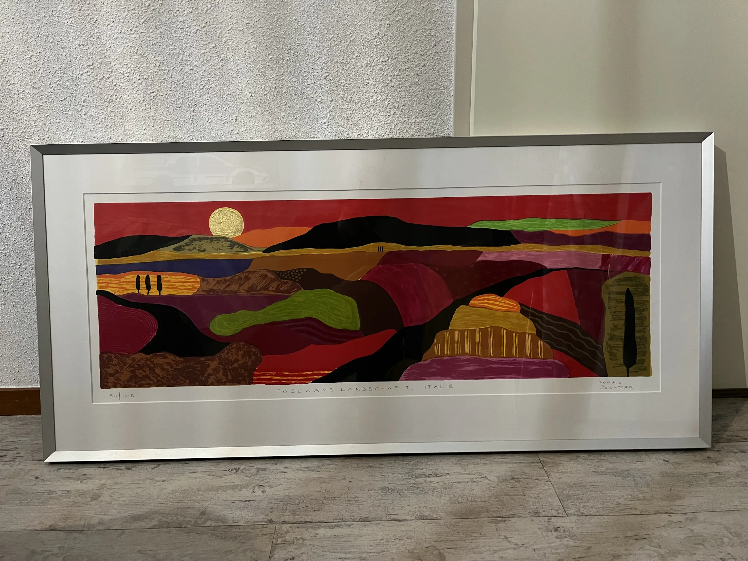 Prachtige zeefdruk van Ronald Boonacker, genaamd Toscns Landschap 1, Italië.