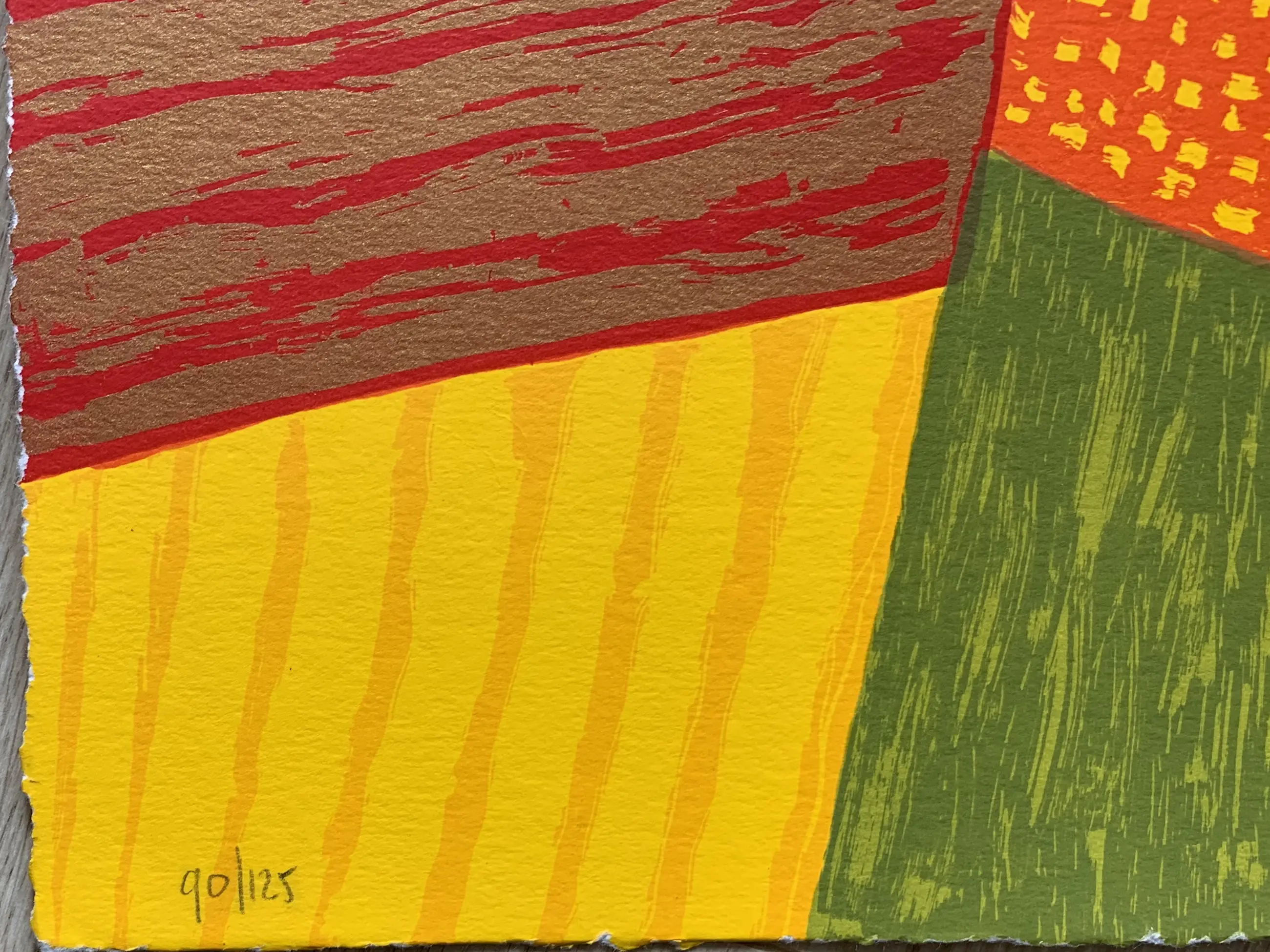 Vele prachtige heldere kleuren, de zeefdruk is handmatig gedrukt op zuurvrij papier, ca 200 grams.