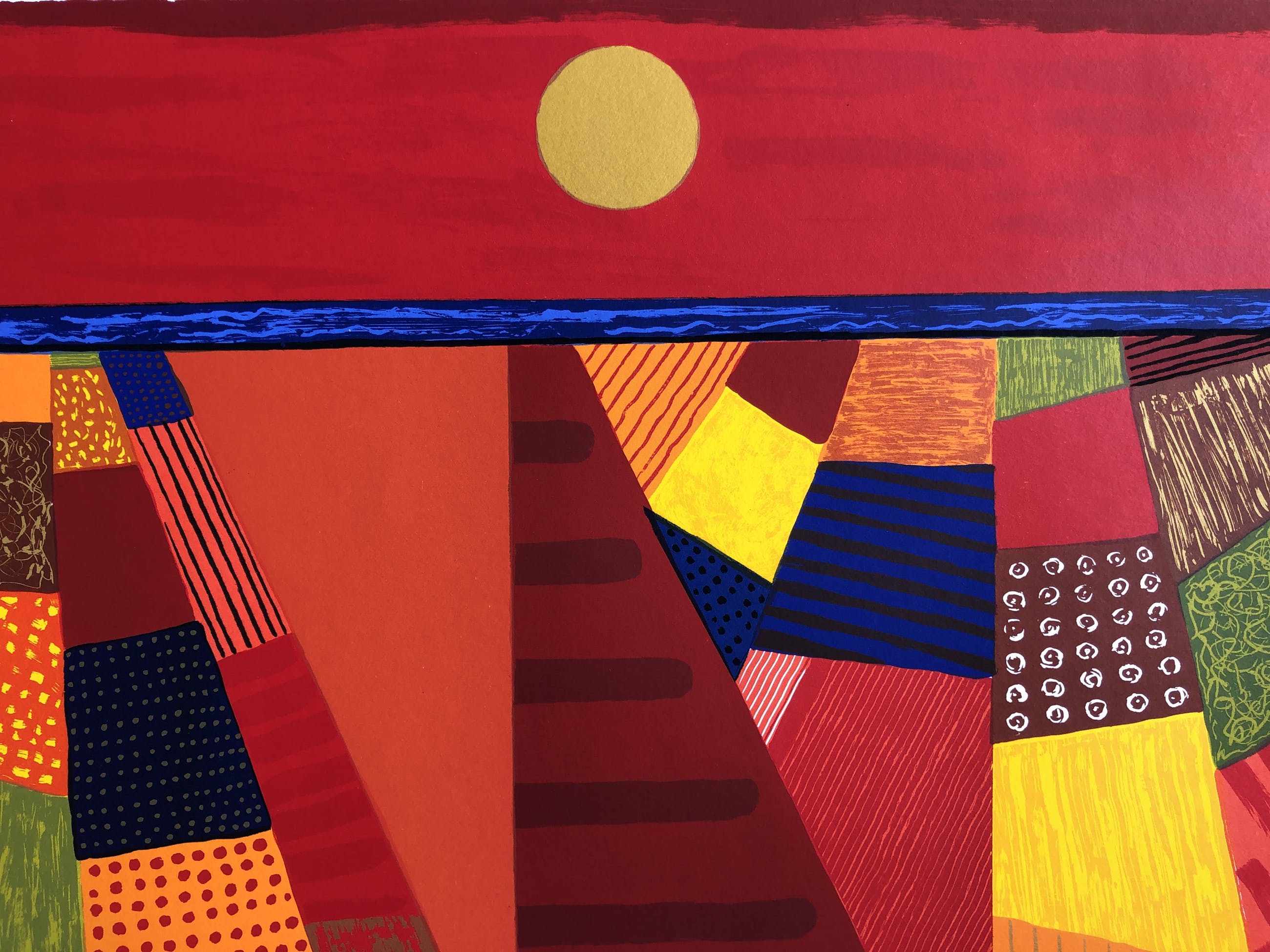 Kleurrijk landschap van de Amsterdamse kunstenaar Ronald Boonacker. Het werk hangt op dit moment in de tentoonstelling Weids, een ode aan het Noord-Hollandse landschap in het Stedelijk Museum Alkmaar. Gesigneerd en genummerd. Het werk verkeert in perfecte conditie. Hetw erk heeft mooi geschepte randen en het werk verdient het om verdiept ingelijst te worden. U kunt het werk vooraf komen bekijken bij galerie Rotor of na aankoop ophalen. Het werk kan ook verzonden worden via aangetekende post. Tijdens de pandemie kunt u uw aankopen gratis laten opslaan in onze speciale opslagruimte. Ook kunnen wij uw inlijsting verzorgen.