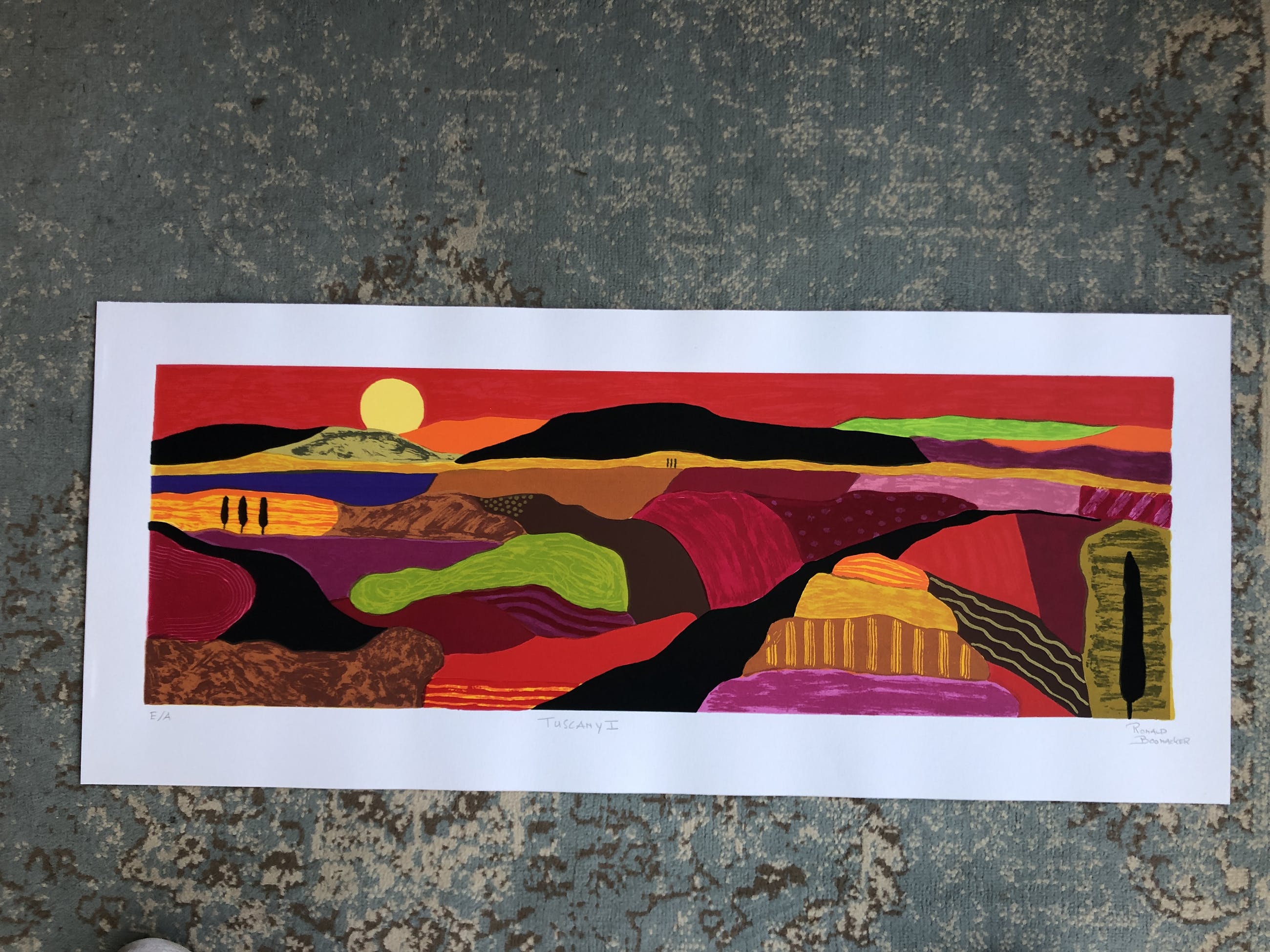 Haal de zomer in huis met een kleurrijk Italiaans landschap van de Amsterdamse kunstenaar Ronald Boonacker. Gesigneerd en genummerd (E.A). Het werk verkeert in perfecte conditie. U kunt het werk vooraf komen bekijken bij galerie Rotor of na aankoop ophalen. Het werk kan ook verzonden worden via aangetekende post. Tijdens de pandemie kunt u uw aankopen gratis laten opslaan in onze speciale opslagruimte. Ook kunnen wij uw inlijsting verzorgen.