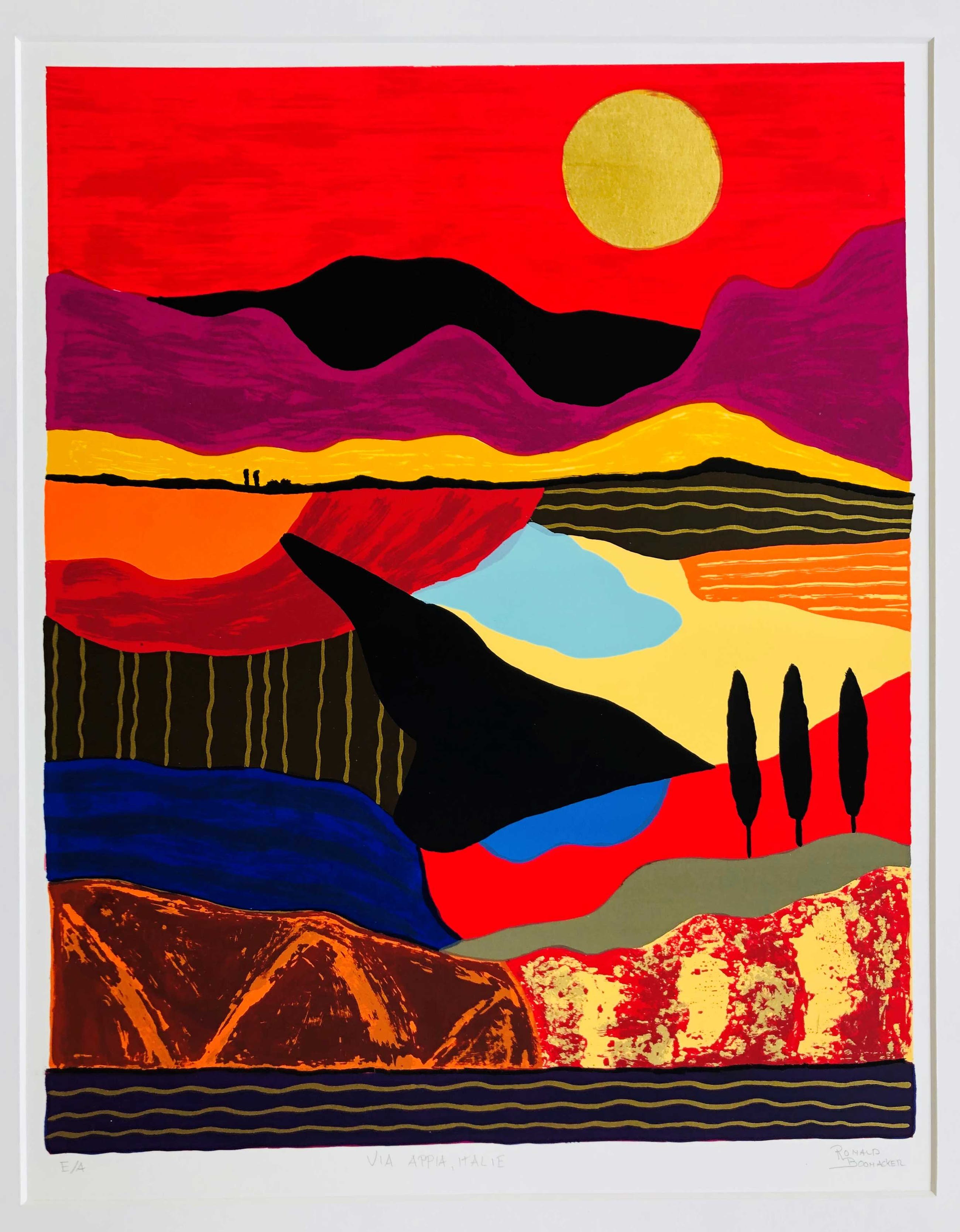 Mooie zeefdruk met bladgoud van de Amsterdamse kunstenaar Ronald Boonacker. Het werk zit inder passe partout en kan zo in een wissellijst gestopt worden. Nieuwstaat!U kunt het werk vooraf komen beoordelen bij onze galerie in Gorinchem en na aankoop ophalen of toegezonden krijgen via aangetekende pakketpost.