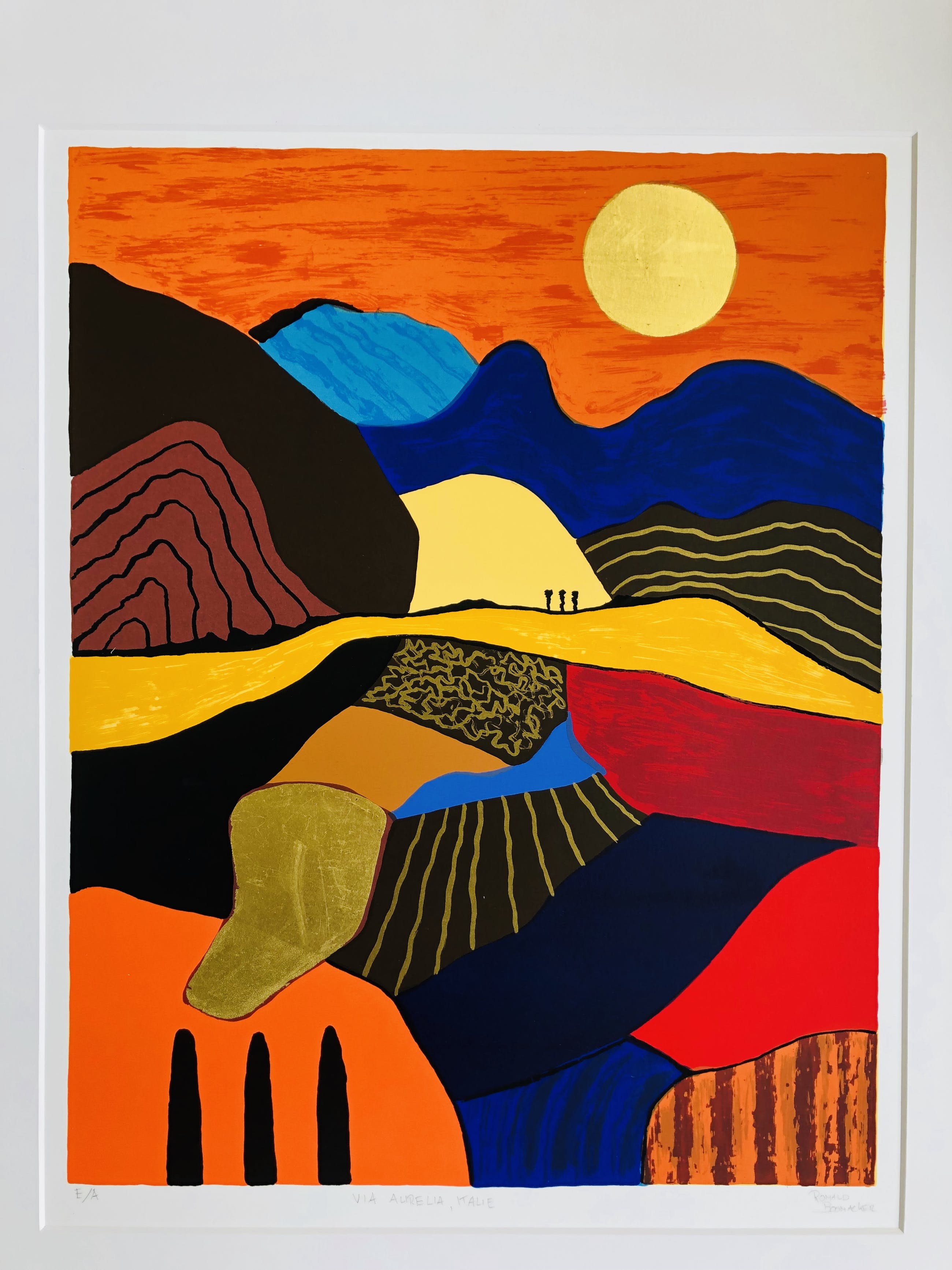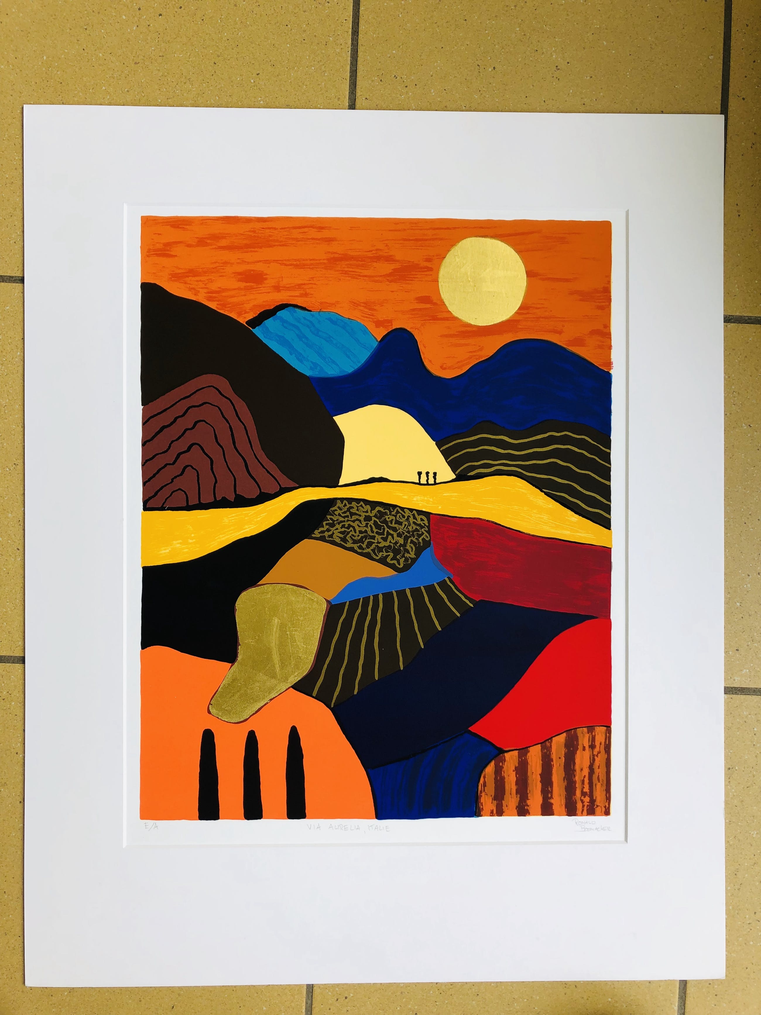 Mooie zeefdruk met bladgoud van de Amsterdamse kunstenaar Ronald Boonacker. Het werk zit inder passe partout en kan zo in een wissellijst gestopt worden. Nieuwstaat!U kunt het werk vooraf komen beoordelen bij onze galerie in Gorinchem en na aankoop ophalen of toegezonden krijgen via aangetekende pakketpost.