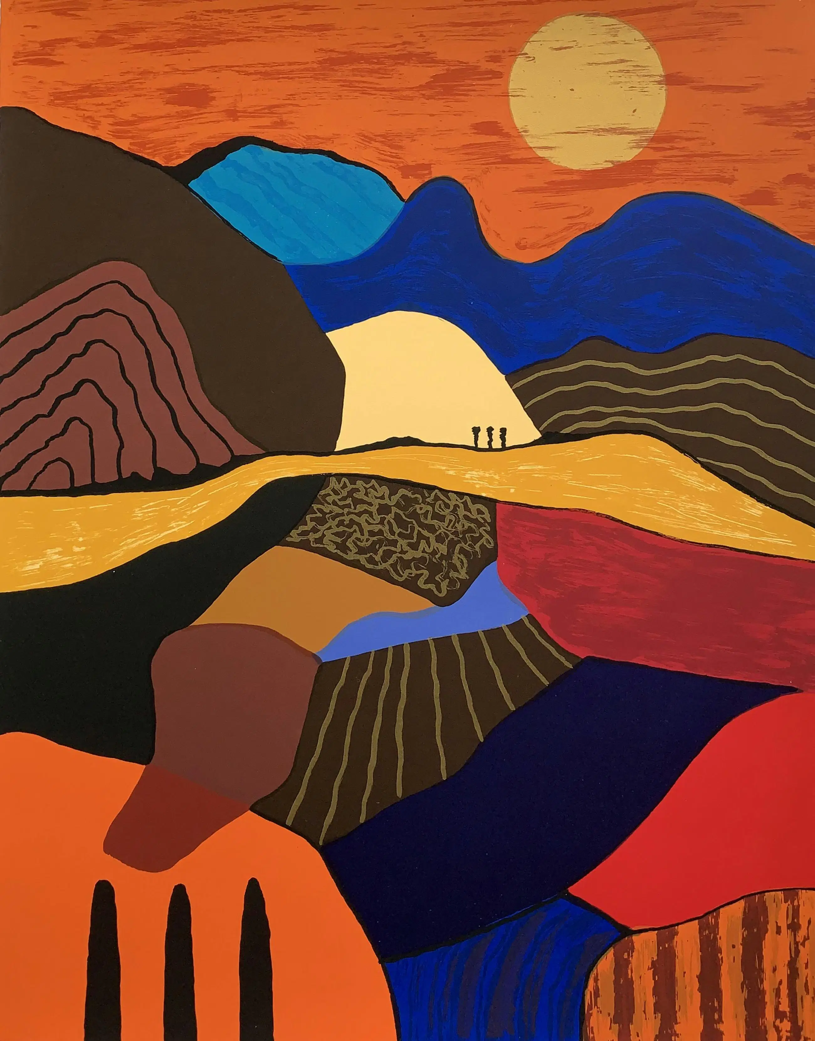 Hand gedrukt op mooi 300 grams zuurvrij (vergeeld niet) papier van de Hahnemuele papier fabriek. 25 kleuren