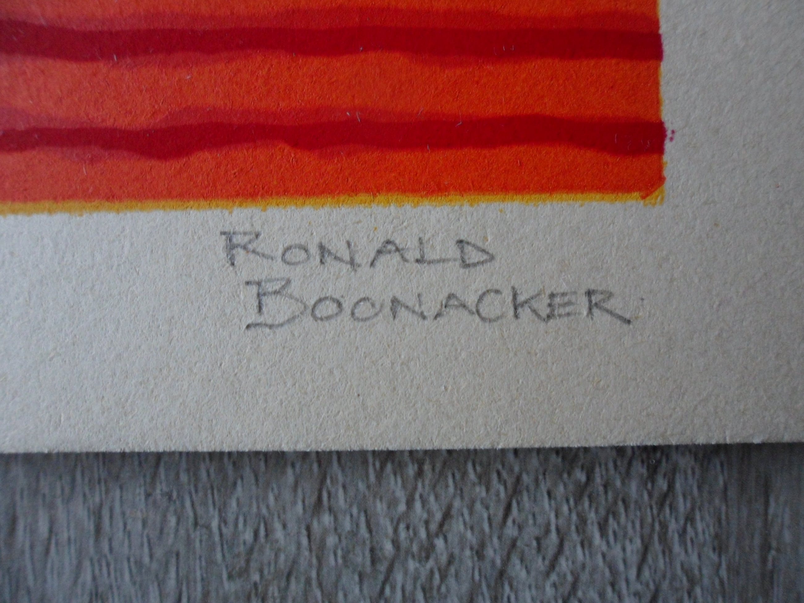 Boonacker staat bekend om zijn felgekleurde landschappen. Hij wordt hiertoe geïnspireerd door de vele reizen die hij heeft gemaakt en nog steeds maakt, naar onder meer zijn favoriete bestemmingen in Spanje, Italië en Brazilië. Tegelijkertijd is elk werk gebaseerd op de Nederlandse traditionele landschappen en stillevens. Als Boonacker een bepaalde omgeving wilt vastleggen, maakt hij er eerst een aquarel van, die dan later kan dienen ter herinnering wanneer hij aan een schildering begint. Het enorm warme gevoel dat de tropische stranden, eilanden en zonsondergangen in zijn werk uitstralen, hangt samen met Boonackers positieve kijk op het leven.