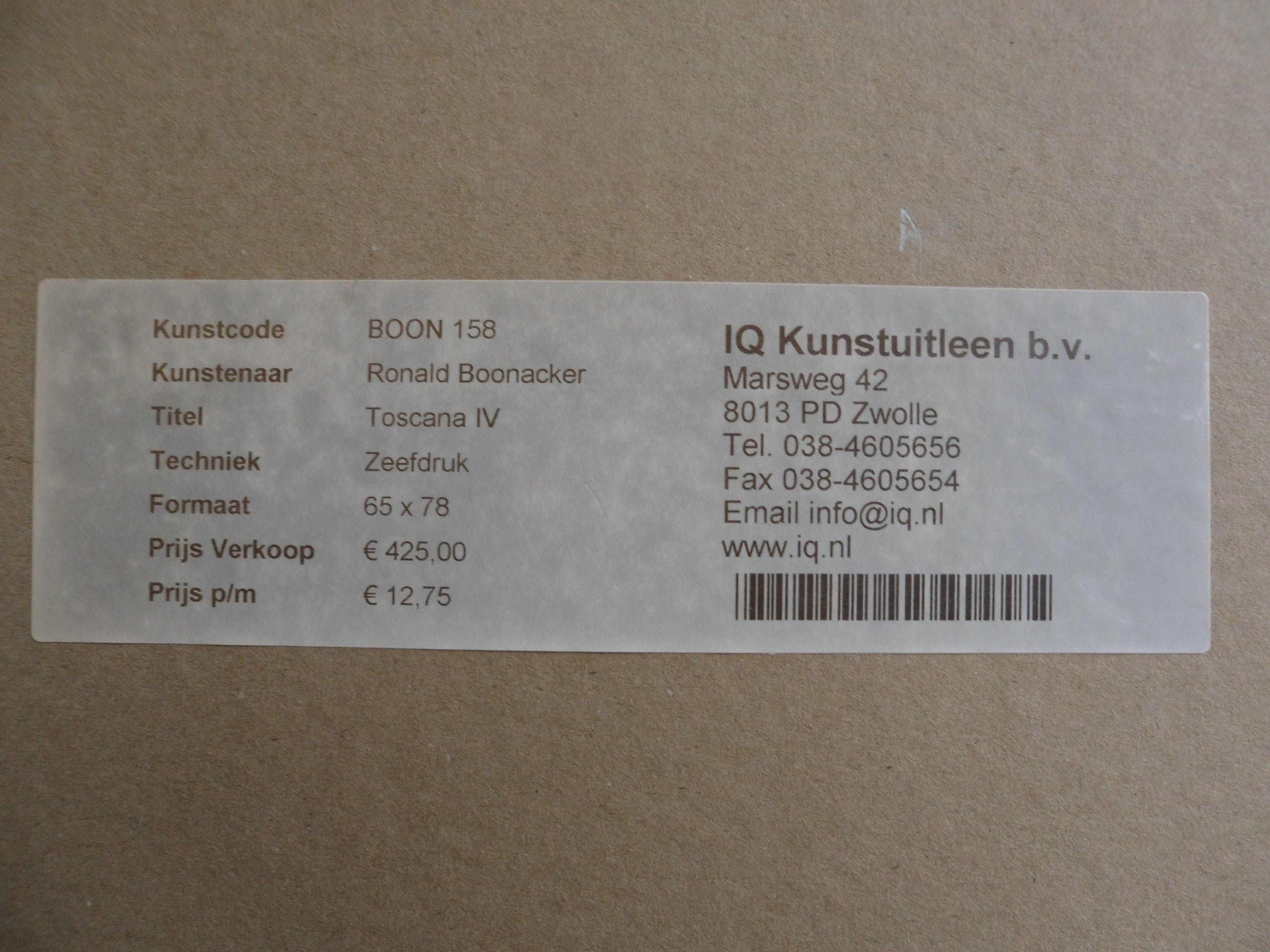 | Afhalen | Het werk is af te halen op locatie. Als koper dient u zelf verpakkingsmateriaal mee te nemen. De locatie is: Alkmaar, Nederland | ||||||