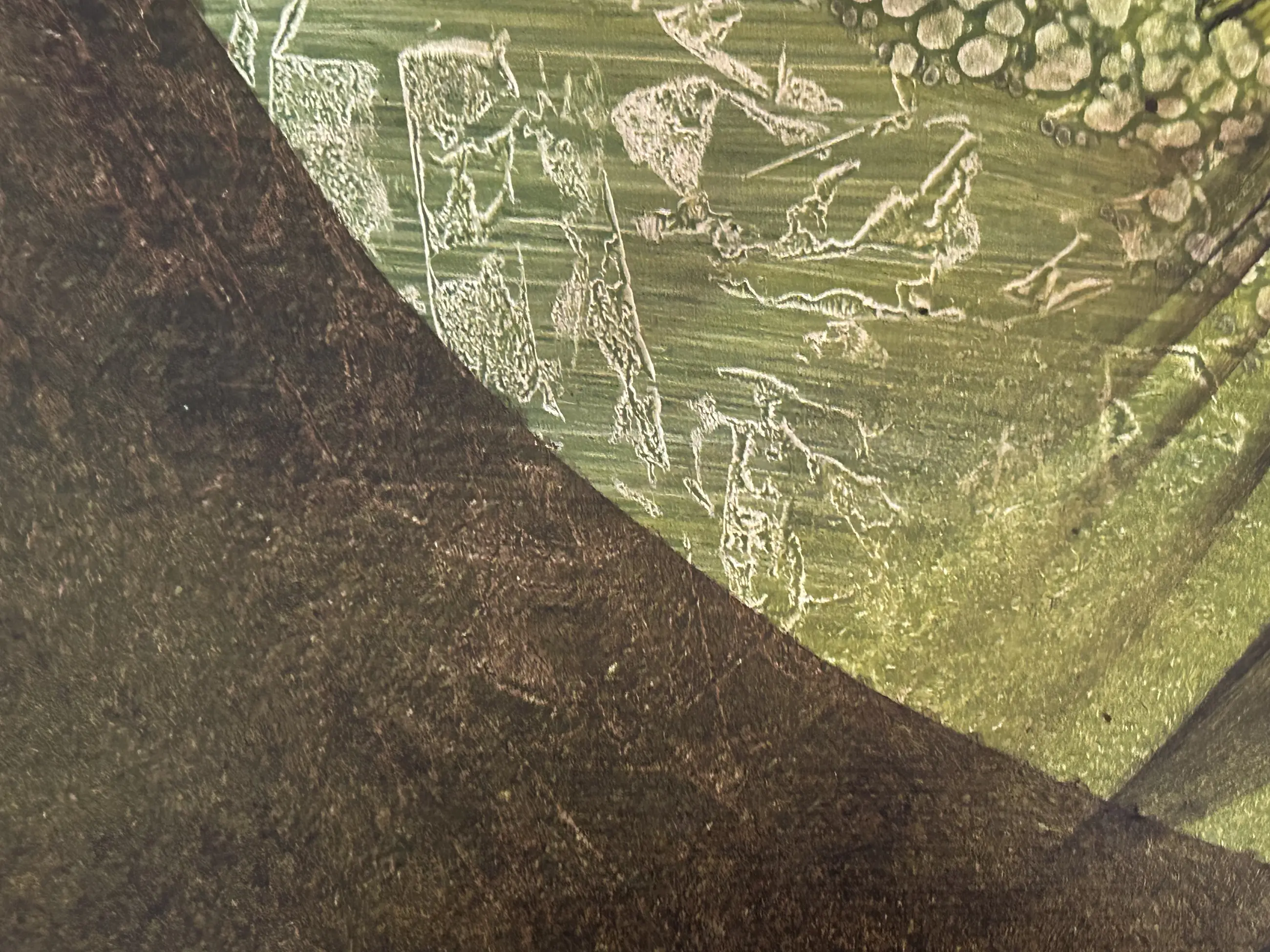 Het schilderij is in goede conditie. De kader heeft enkele imperfecties en wordt u gratis aangeboden bij dit kavel. Gesigneerd aan de voor - en achterkant.