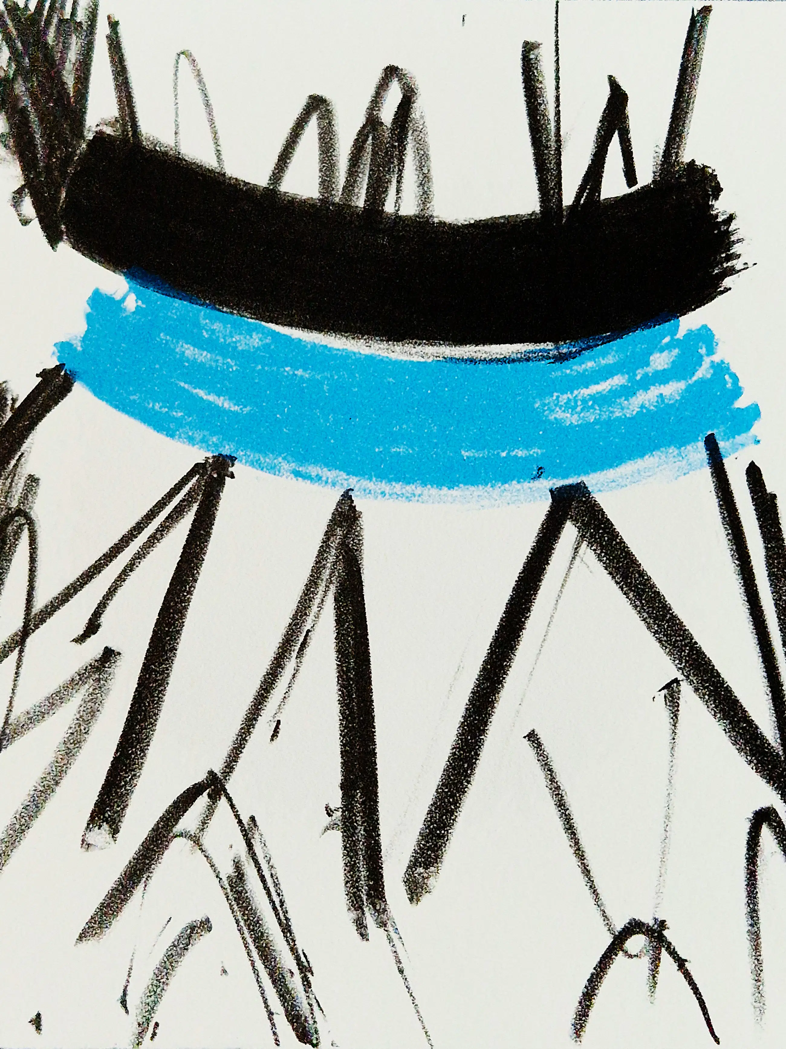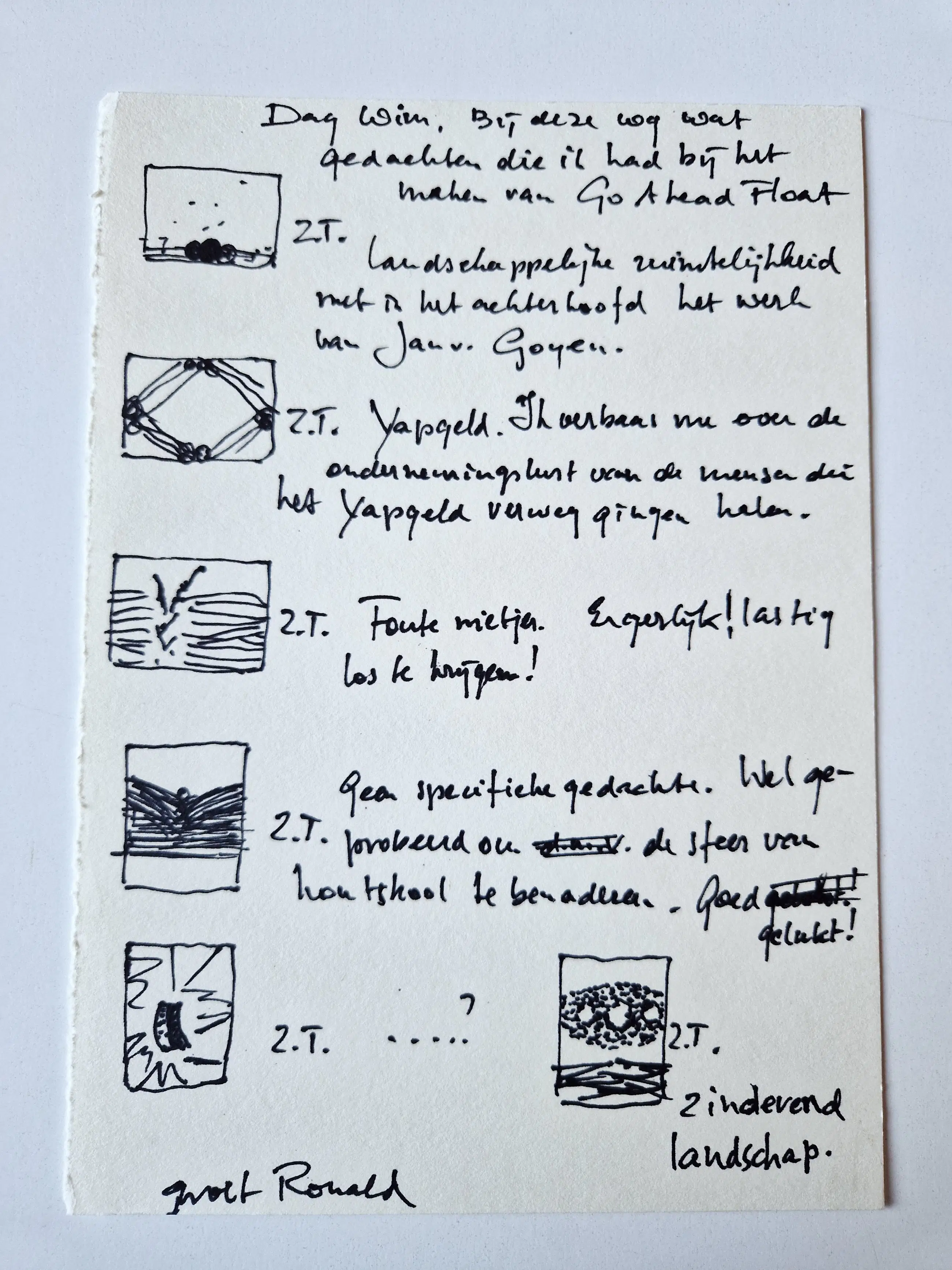 Ronald Noorman (1951) is een tekenaar pur sang, een kunstenaar die de kwaliteiten en mogelijkheden van zijn medium ten volle benut. Naast intimiteit en transparantie is vooral de kernachtigheid een opvallende eigenschap van de recente tekeningen op zijn tentoonstelling in de projectzaal. Vaak bestaan de werken uit niet meer dan enkele lijnen in krijt of houtskool en een aantal losse, open toetsen in gouache. Soms is er een kleuraccent, vaak ook gebruikt Noorman alleen zwart, want daarvan houdt hij het meest. De beperking tot het hoogst noodzakelijke gaat gepaard met een grote directheid. Intuïtie is een drijvende kracht. Noorman werkt aan meerdere tekeningen tegelijk, op zijn knieën op de grond, met zijn tekenmaterialen om zich heen. Zo is de afstand tussen hoofd, hand en beeld, zowel letterlijk als figuurlijk, ’t kleinst. Directe aanknopingspunten met de zichtbare werkelijkheid zijn er weinig, maar voorstellingloos zijn de tekeningen zeker niet. De lijnen voegen zich tot compacte tekens, waarin emoties, gedachten en ervaringen zich hebben samengebald. Er zijn terugkerende motieven, zoals enclaves, trechters of ‘foute’ (verbogen) nietjes. Titels als Mijn/Dijn of Landjepik geven richting aan het kijken, zonder dat ze de tekeningen echt verklaren. Ook al laten de beelden zich niet vangen in een eenduidige interpretatie, het is duidelijk dat de lijnen grenzen markeren, dat ze oprukken of juist ingesloten worden en vaak op gespannen voet staan met elkaar. Verbindingen worden gezocht, maar komen niet altijd tot stand. Vaak gaat het er heftig aan toe en heerst er een ingehouden spanning, maar er is ook verstilling en de ritmiek van een zojuist gevonden balans. De expressieve geladenheid van de tekeningen berust voor een groot deel op het karakter en de intensiteit van de lijnen zelf. Ze zijn niet alleen het resultaat van een handeling, maar dragen er ook de sporen van. Door de heftigheid waarmee ze zijn gezet, lijkt het soms of het tekenen zelf een vorm van ‘landjepik’ is. In andere bladen is de lijnvoering fragieler en lichter, alsof het beeld niet hoefde te worden veroverd, maar zich zelf aandiende. Met hoe weinig kun je toe om tot een vitaal beeld te komen dat zichzelf genoeg is, en waar ontkracht een teveel de intensiteit en de magie ervan? Die vraag ligt aan de basis van Noormans benadering van het tekenen, maar klinkt ook door in zijn bewondering voor de etnografica, die hij in de afgelopen twintig jaar samen met zijn vrouw heeft verzameld. Ook in die kunst zoekt hij naar de creatieve omgang met het materiaal en de kracht en bondigheid van de lijnvoering. In zijn beeldtaal of motieven laat Noorman zich zelden leiden door de objecten uit zijn verzameling of de daarachter liggende gebruiken.