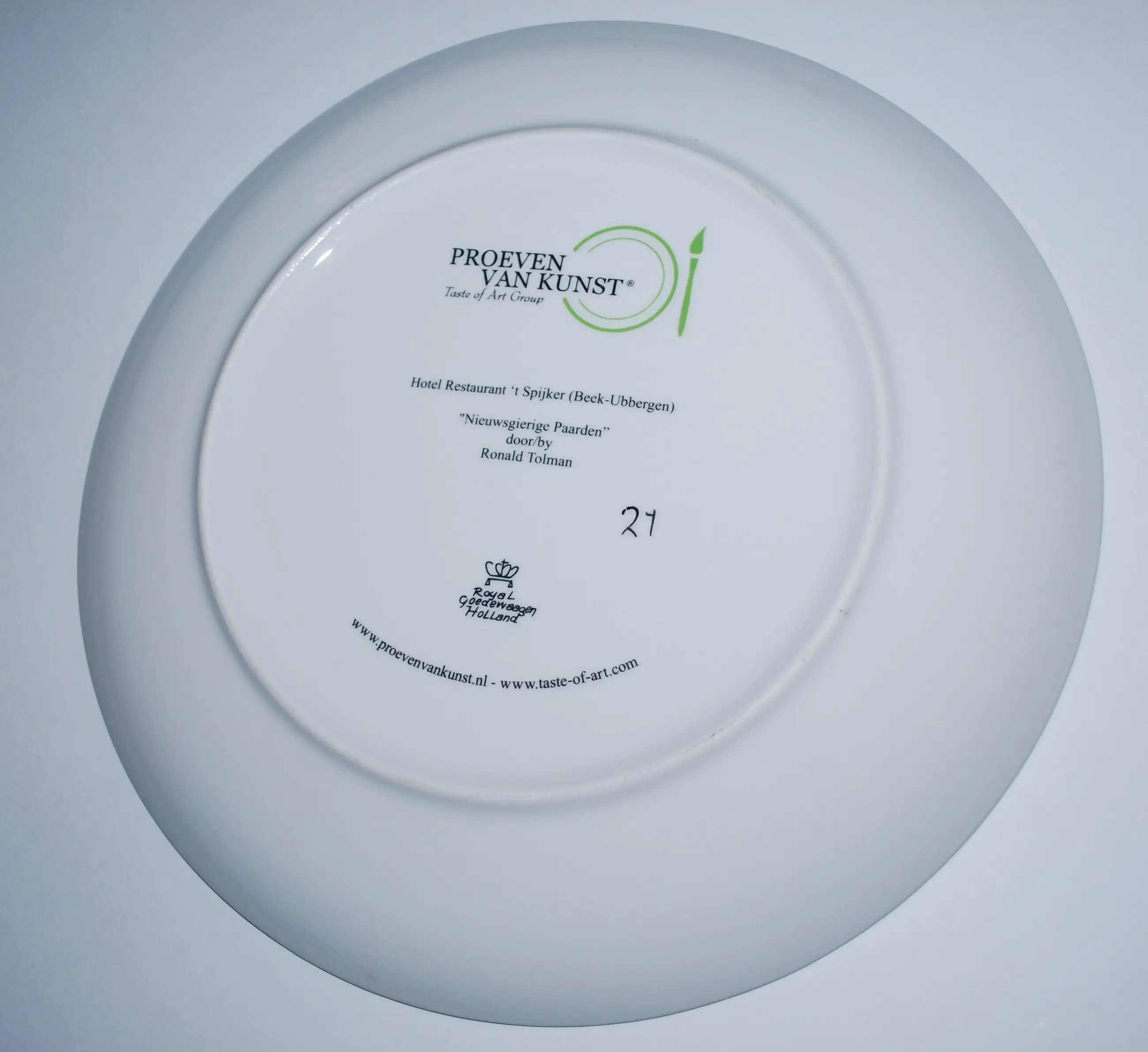 Bord diameter 31 cm, titel "Nieuwsgierige paarden"