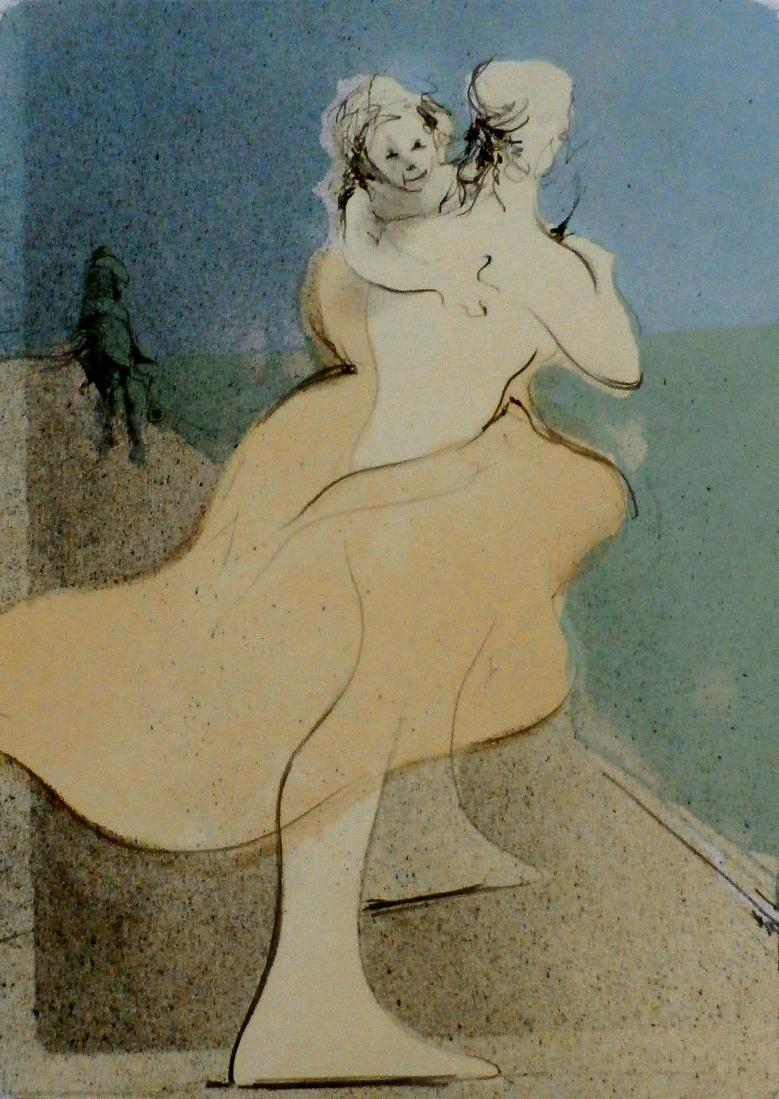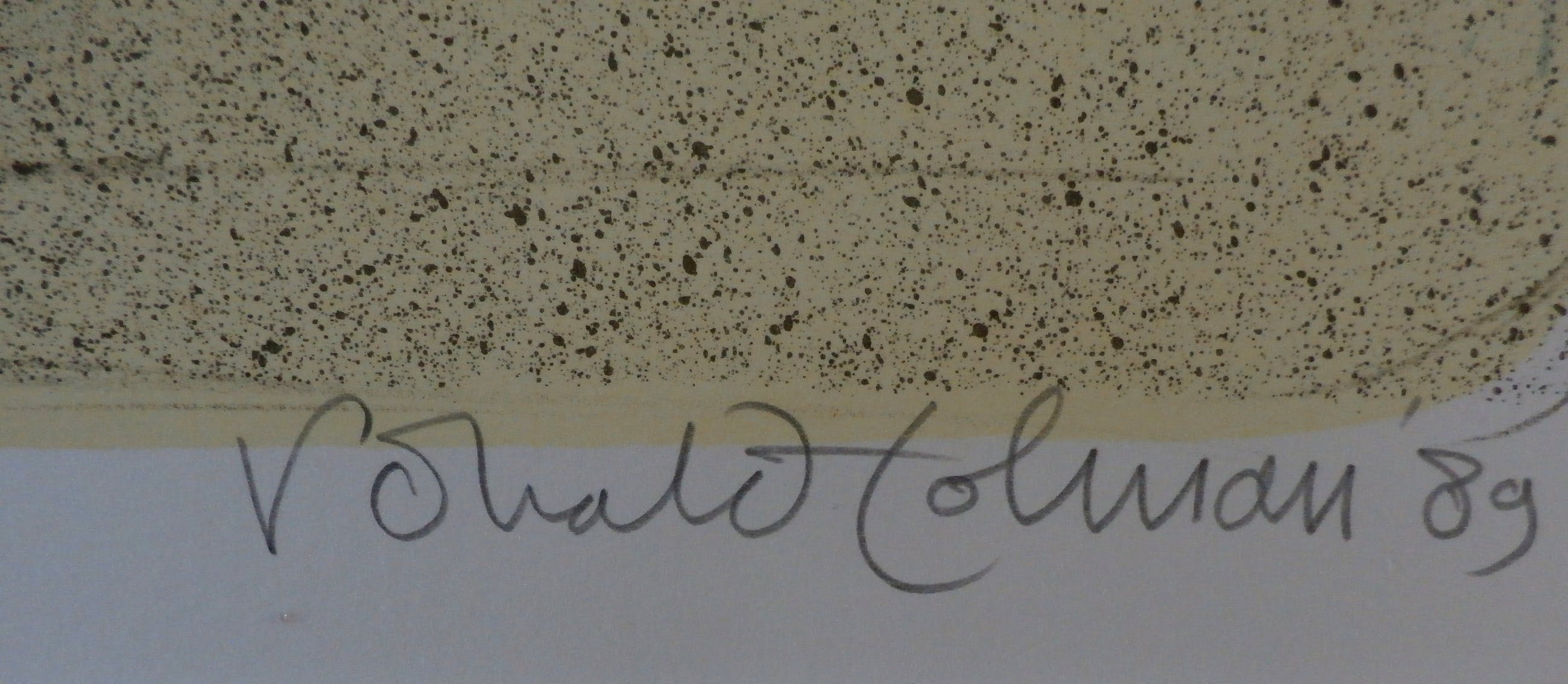 Litho van Ronald Tolman uit 1989. Titel: Dansende vrouw met kind. Nummer: 51/175. Afmetingen incl passepartout: H71 x b56cm. Afmetingen voorstelling: H53.5 x b39cm. Het werk is rechtsonder gesigneerd met potlood door de kunstenaar. De rok van de vrouw is geel in werkelijkheid. Op de foto zit er een oranje gloed overheen. De authenticiteit van dit werk wordt volledig gegarandeerd. Een certificaat van echtheid kan, op aanvraag, worden gemaild.