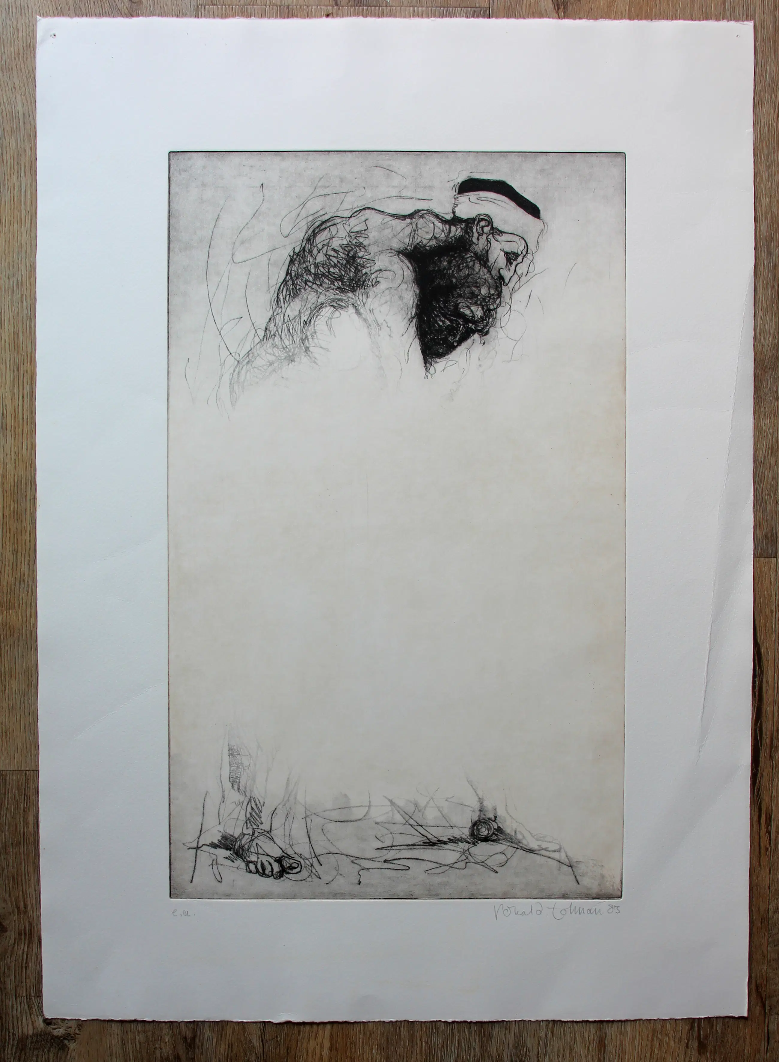 Ets van Ronald Tolman. Jaar: 1983. Oplage: E.A. Afmetingen blad: H78 x b56cm. Afmetingen voorstelling: H58 x b36cm. Het werk is rechts onderaan gesigneerd door de kunstenaar. De authenticiteit van het aangeboden werk wordt volledig gegarandeerd. Een certificaat van echtheid kan, op aanvraag, worden gemaild.