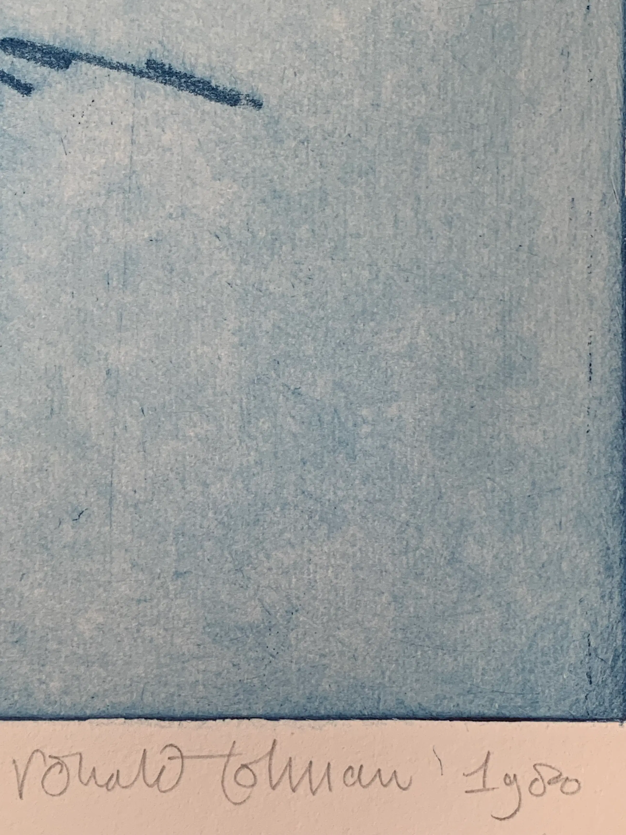 Mooie en grote ets in een kleine oplage van Ronald Tolman. Dit is nummer 3 van een oplage van 12. In nieuwstaat. Afmetingen blad: 78 x 53 cm, afmetingen beeld: 55 x 49 cm.