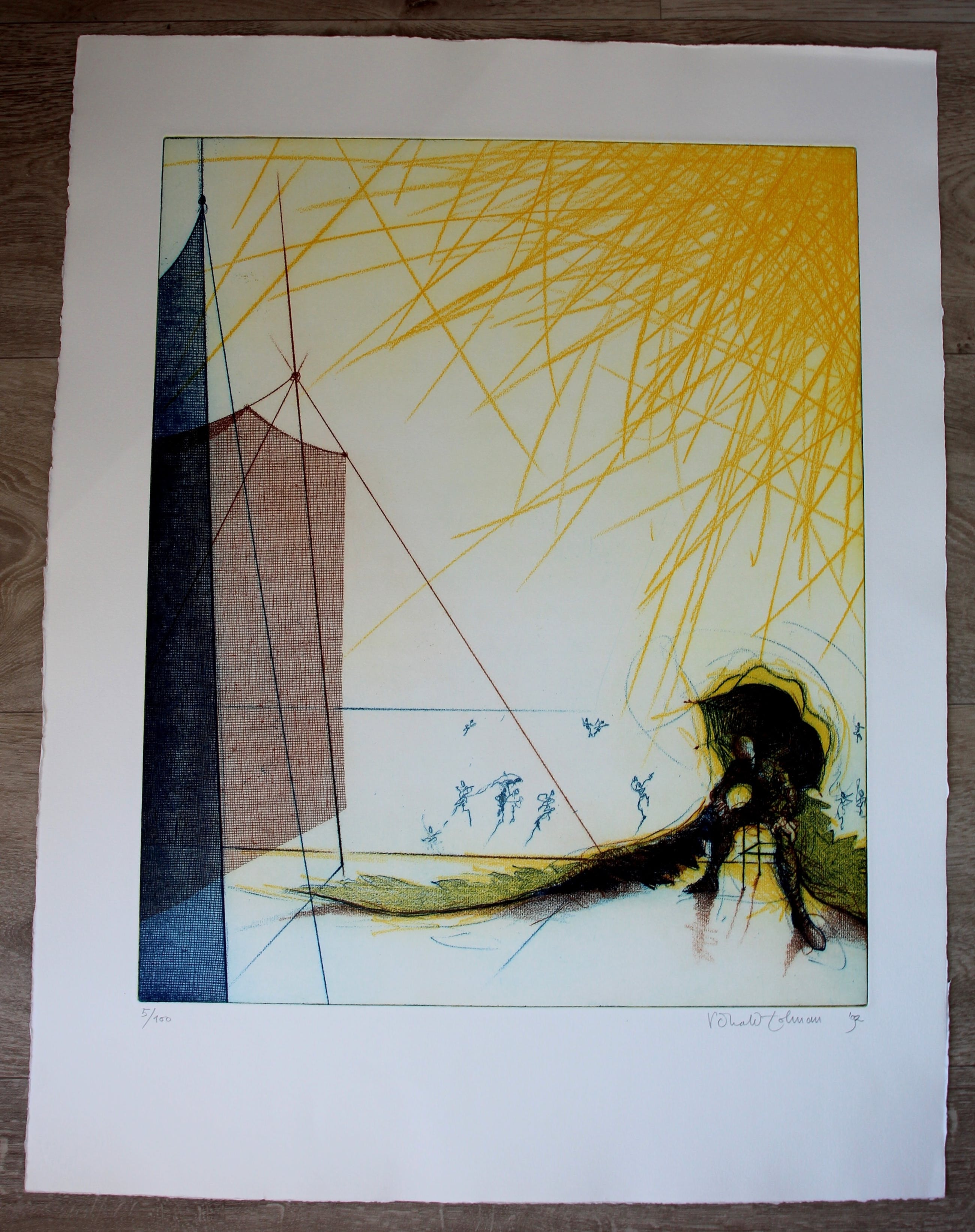 Ets van Ronald Tolman. Titel: Diadolos. Jaar: 1992 Nummer: 5/100. Afmetingen blad: h65 x b50cm. Afmetingen voorstelling: h49 x b40 cm. Het werk is rechts onderaan, met potlood, gesigneerd door de kunstenaar. De authenticiteit van dit werk wordt volledig gegarandeerd. Een certificaat van echtheid kan, op aanvraag, worden gemaild.