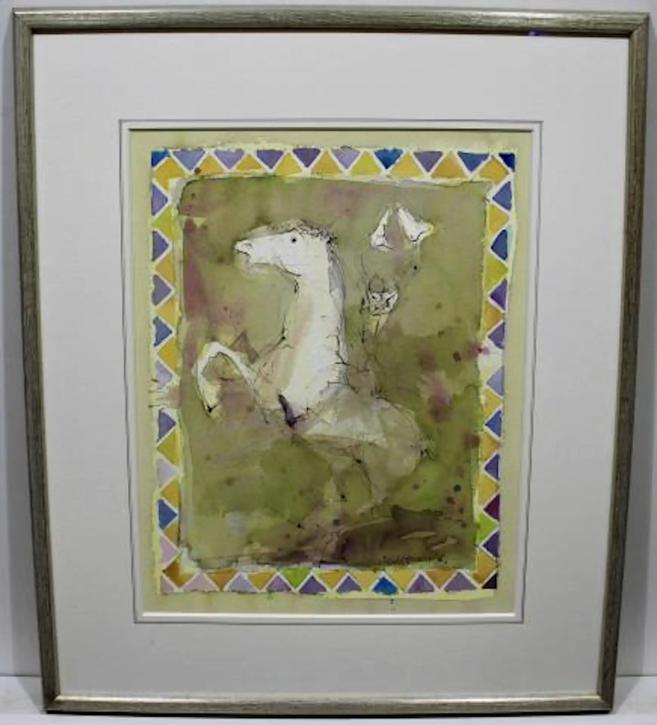 Ingelijste aquarel van Ronald Tolman. Titel: Equestrian applause. Jaar: 1996.
