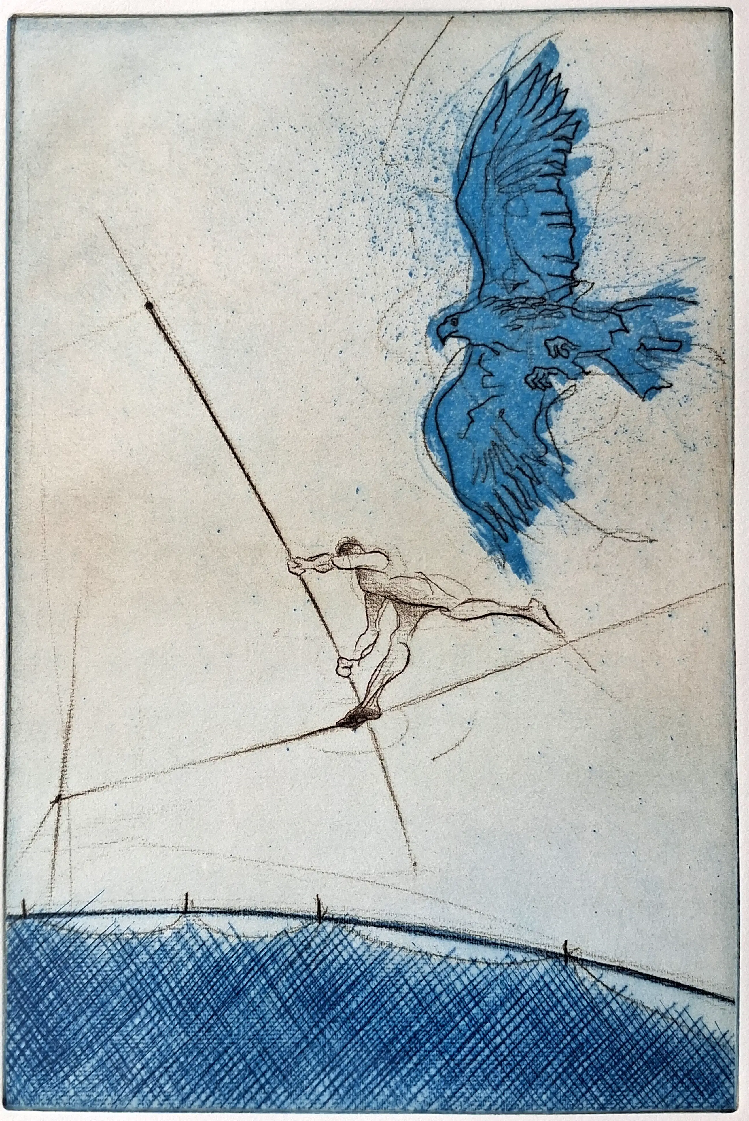 Ets/aquatint van Ronald Tolman, een van de etsen die hij maakte met als thema het circus. Met potlood door de maker gesigneerd, gedateerd en genummerd. Ingelijst in aluminium lijst. Het geheel verkeert in nieuwstaat.
