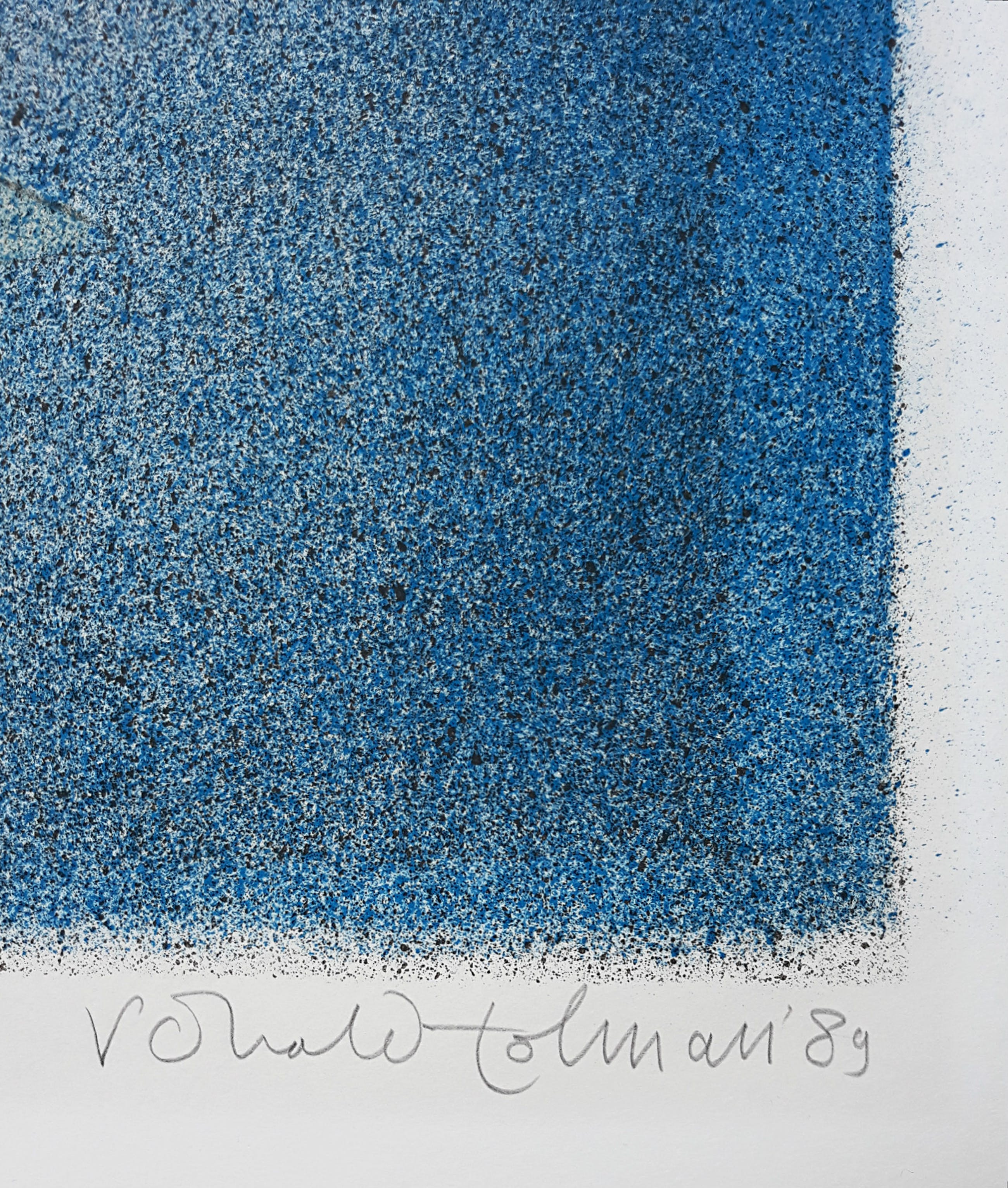 Prachtig werk van Ronald Tolman uit 1989. Litho op Rives papier, met potlood gesigneerd, gedateerd en genummerd (96/175). Afkomstig uit de kunstcollectie van ABNAMRO; in zeer goede conditie. Het blad heeft ingelijst gezeten want er is een lichte verkleuring binnen een vorig passe-partout. Opnieuw ingelijst met passe-partout is het geheel uitstekend.