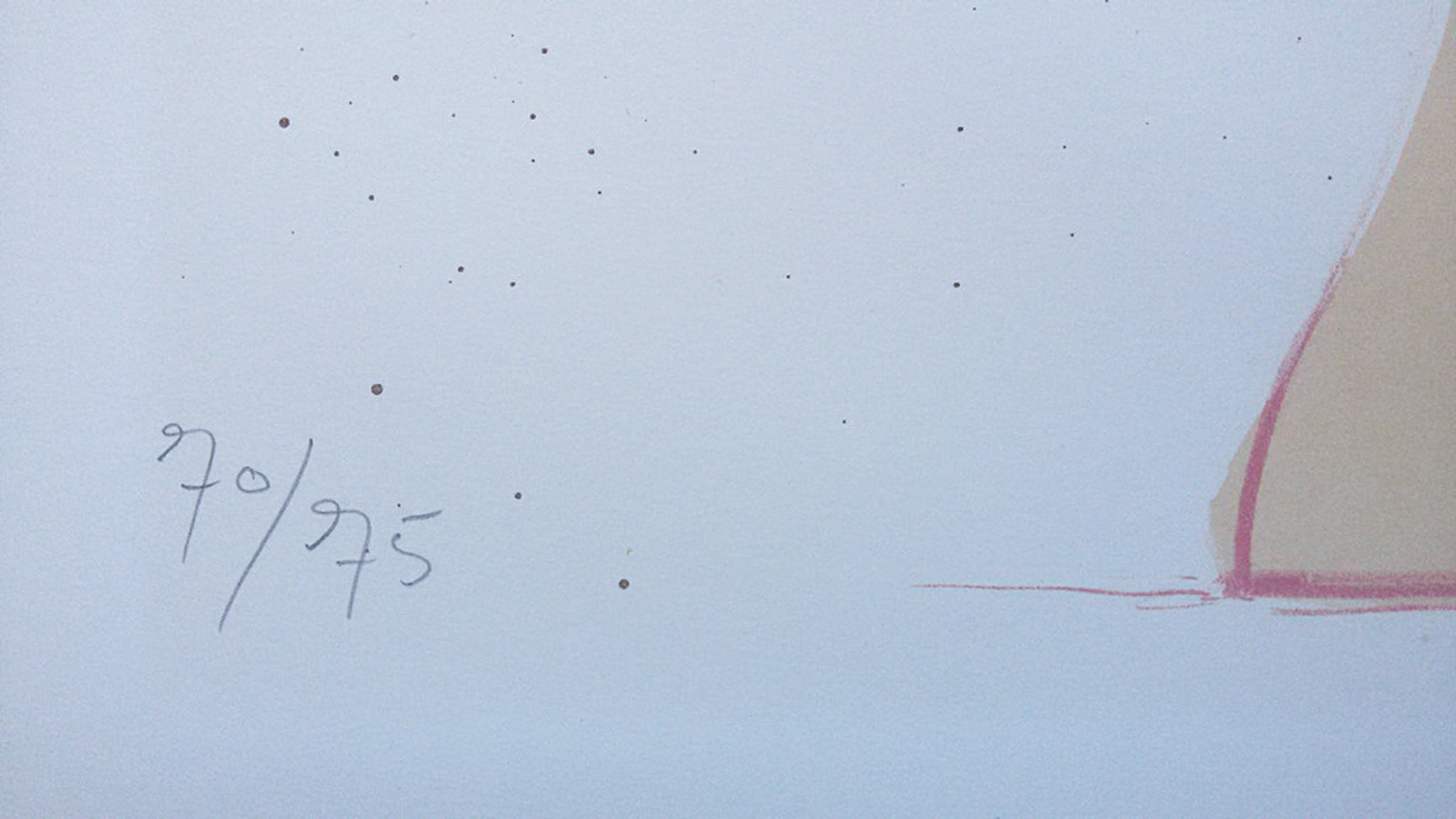 Prachtige litho op geschept papier van Ronald Tolman uit 1989. Met potlood gesigneerd, gedateerd en genummerd (70/75). Het werk is ingelijst geweest want er is een lichte verkleuring langs de randen, goed ingelijst is dit niet meer te zien. Verder in uitstekende staat, afkomstig uit de kunstcollectie van ABNAMRO.