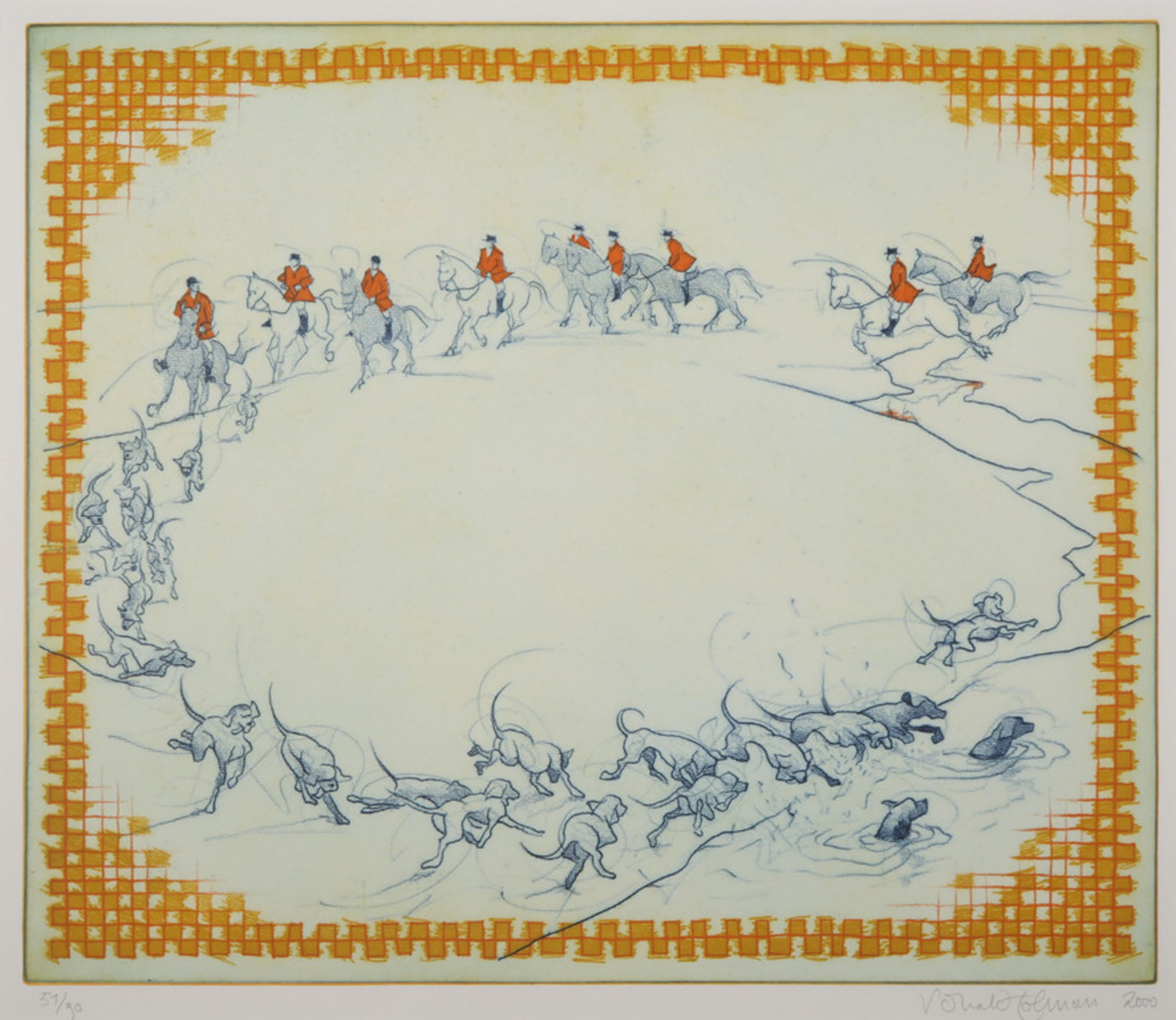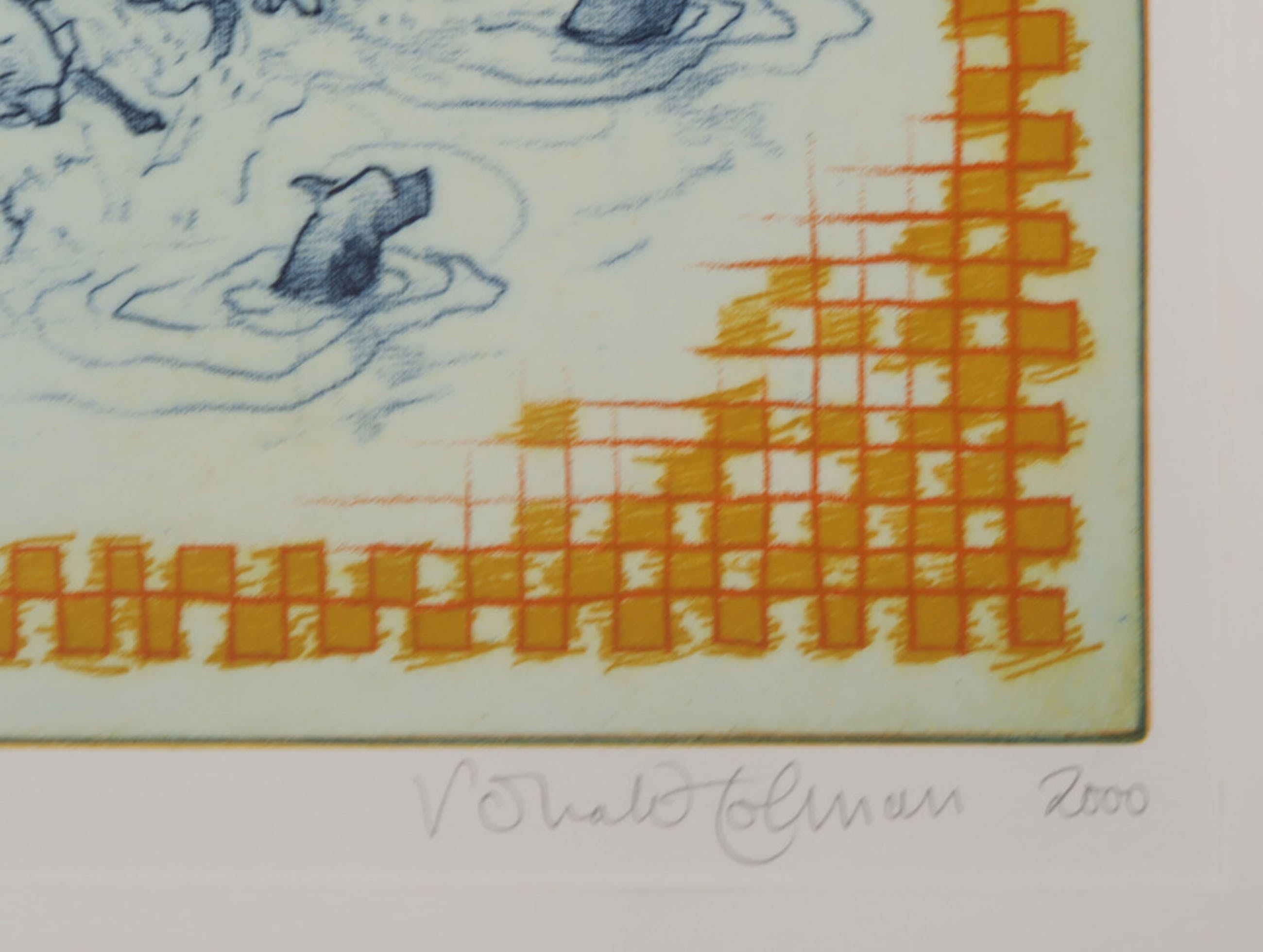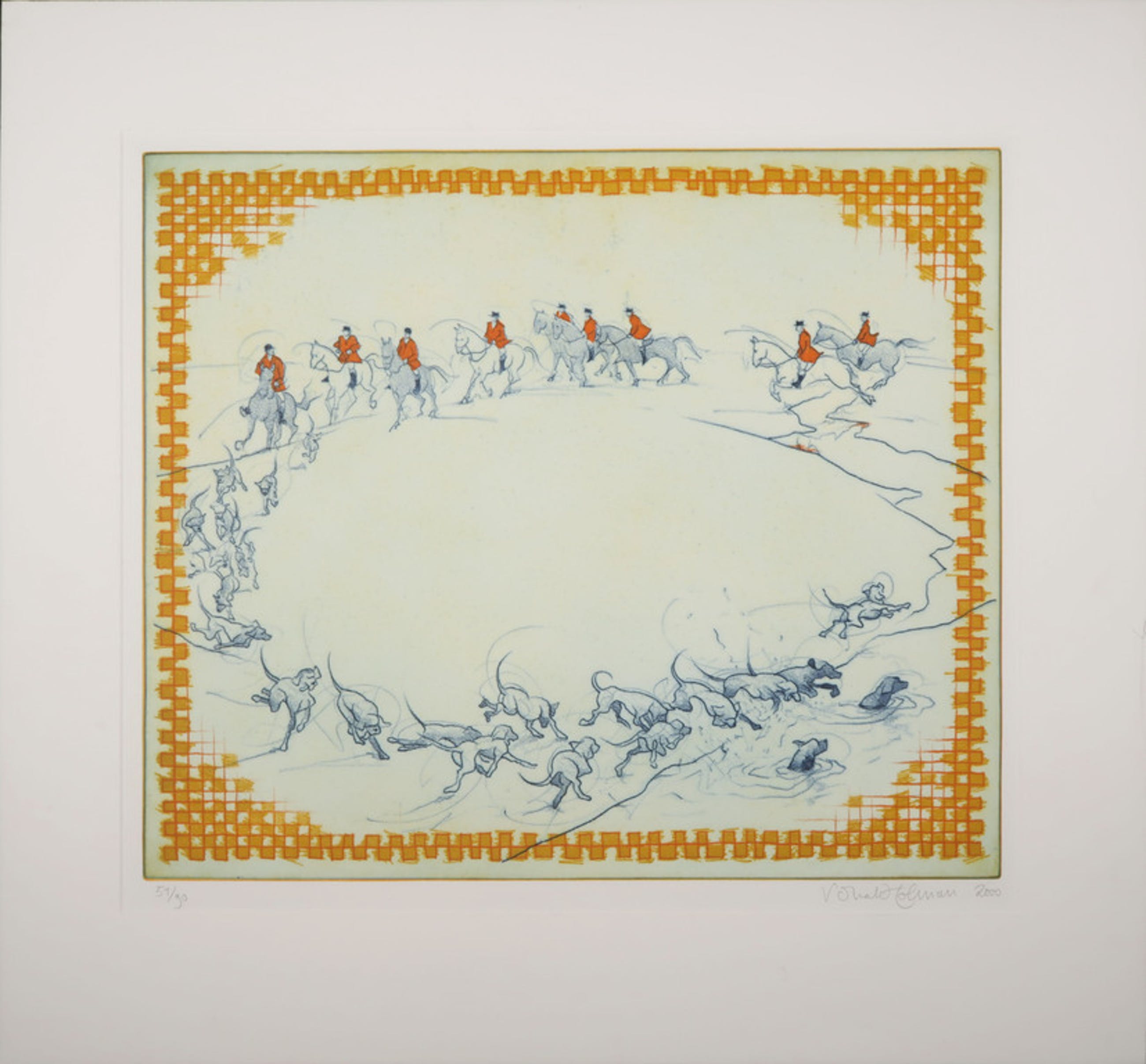 Materiaal: Ets op papier, achter passe-partout gelijmd.