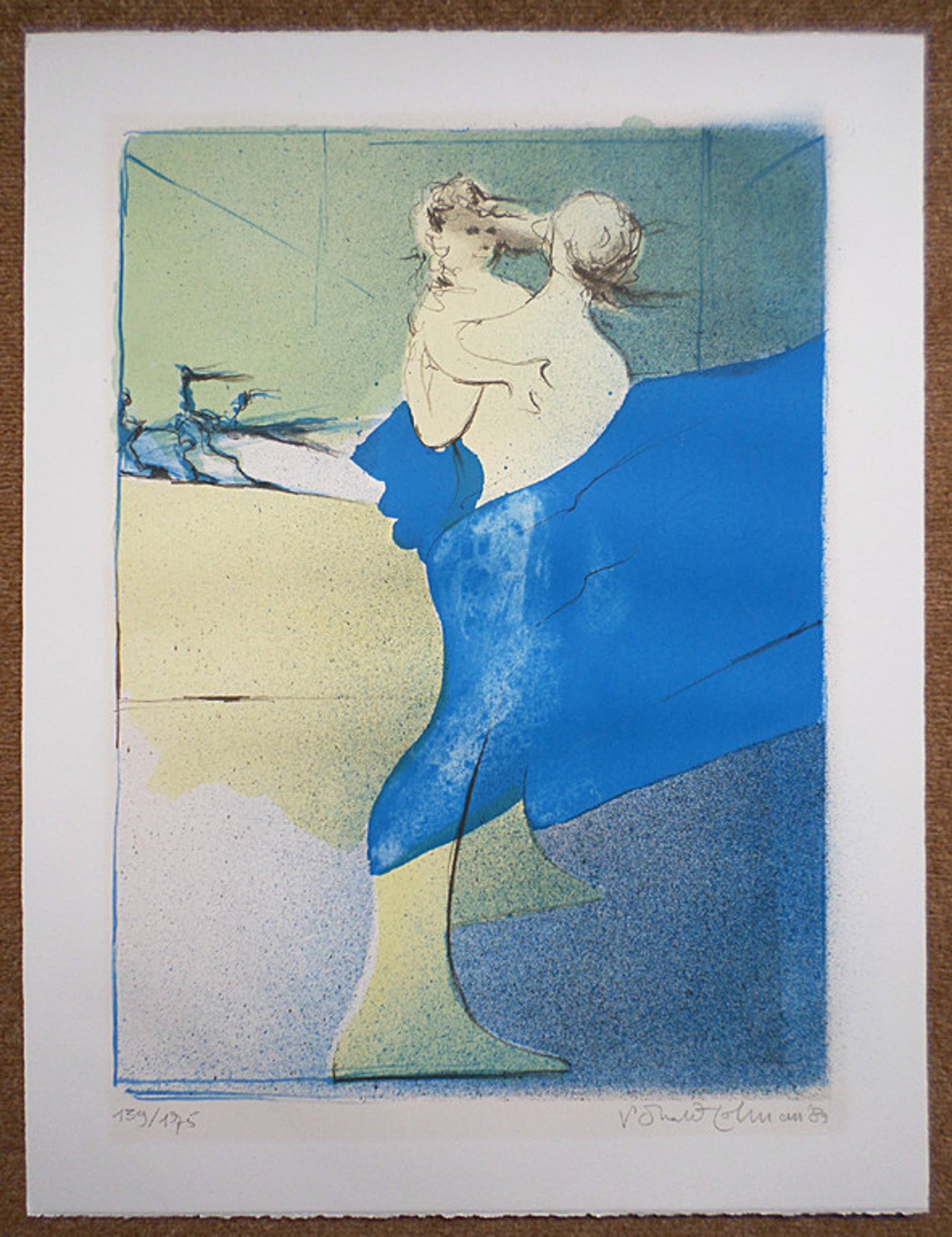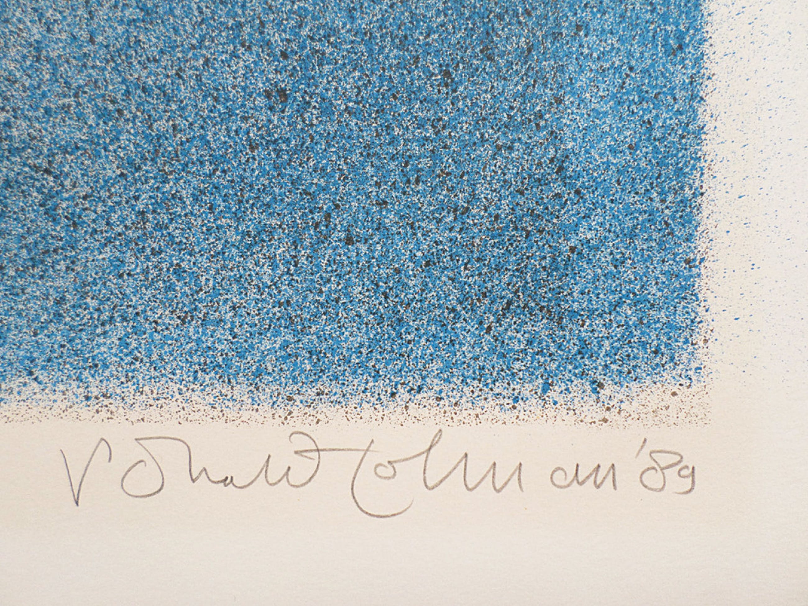 Prachtige litho van Ronald Tolman uit 1989. Met potlood gesigneerd, gedateerd en genummerd (139/175). Het werk is ingelijst geweest want er is een lichte verkleuring langs de randen, goed ingelijst is dit niet meer te zien. Verder in uitstekende staat, afkomstig uit de kunstcollectie van ABNAMRO.