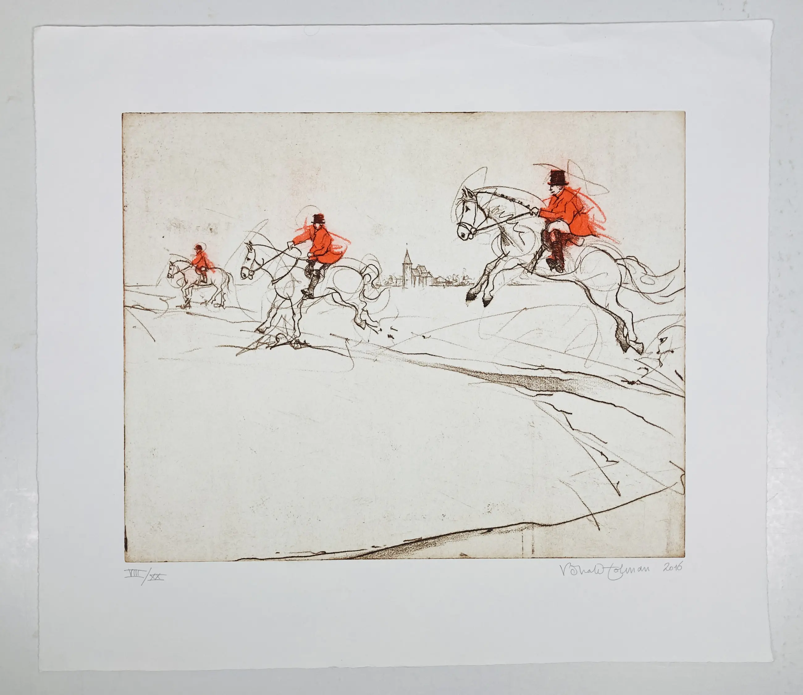 Een mooie paarden ets van de Nederlandse kunstenaar Ronald Tolman (1948). De ets verkeert in goede conditie, maar heeft wat deukjes in de wit rand. Het werk is gemaakt in 2016 en is handgesigneerd door de kunstenaar.