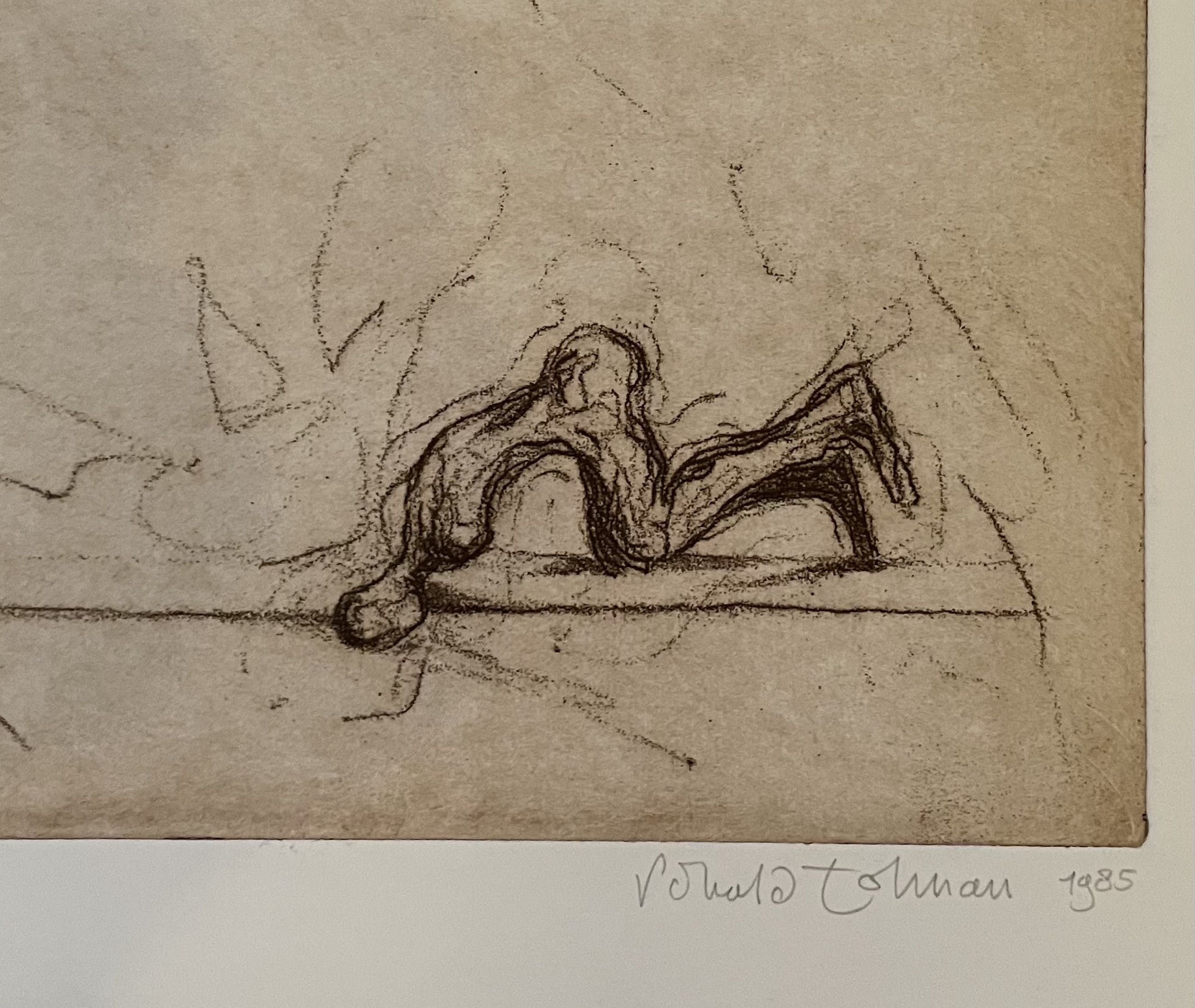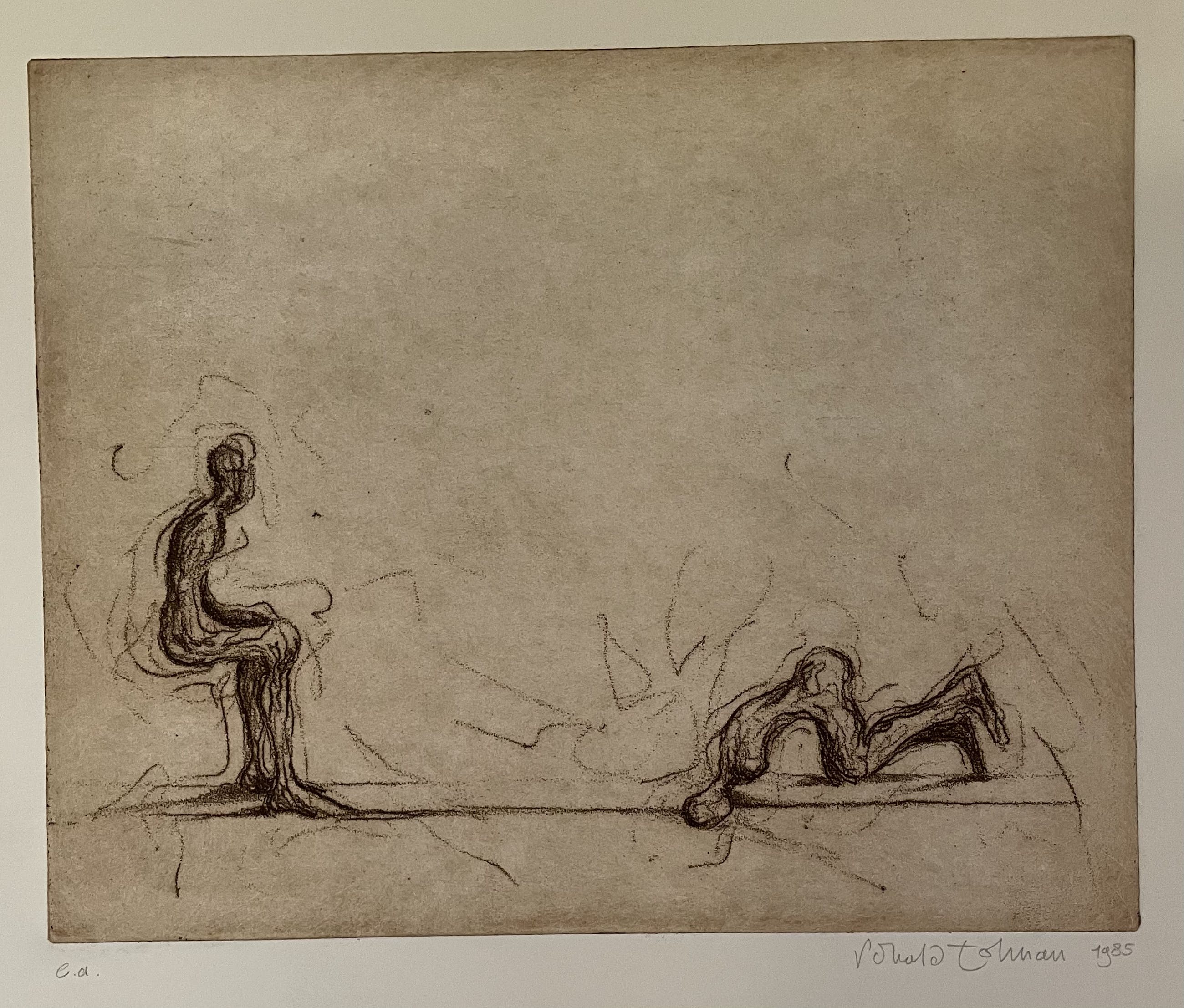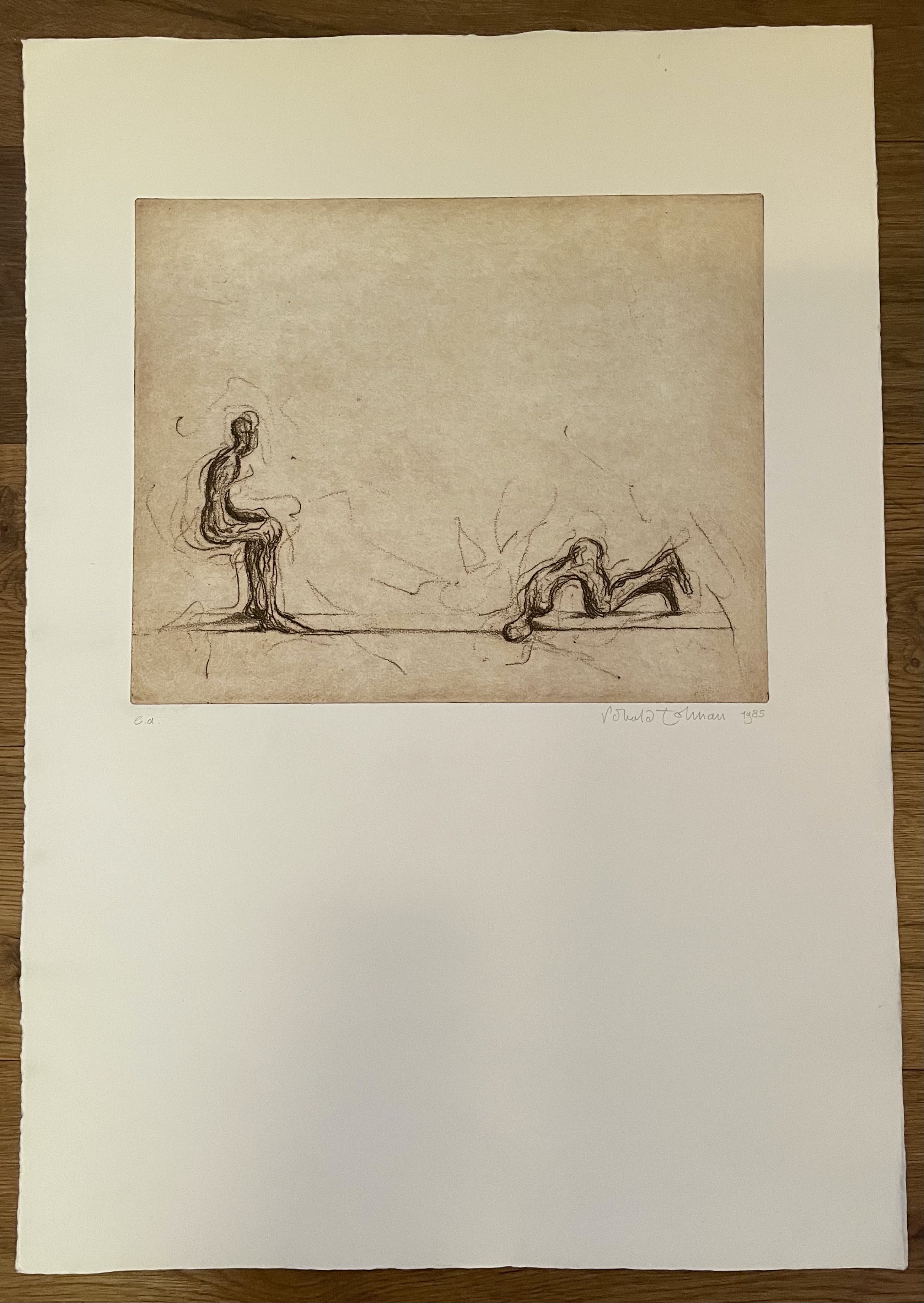 Mooie, grote ets met 2 figuren. Typische thematiek van Ronald Tolman over menselijke verhoudingen en doen en laten van de mens.