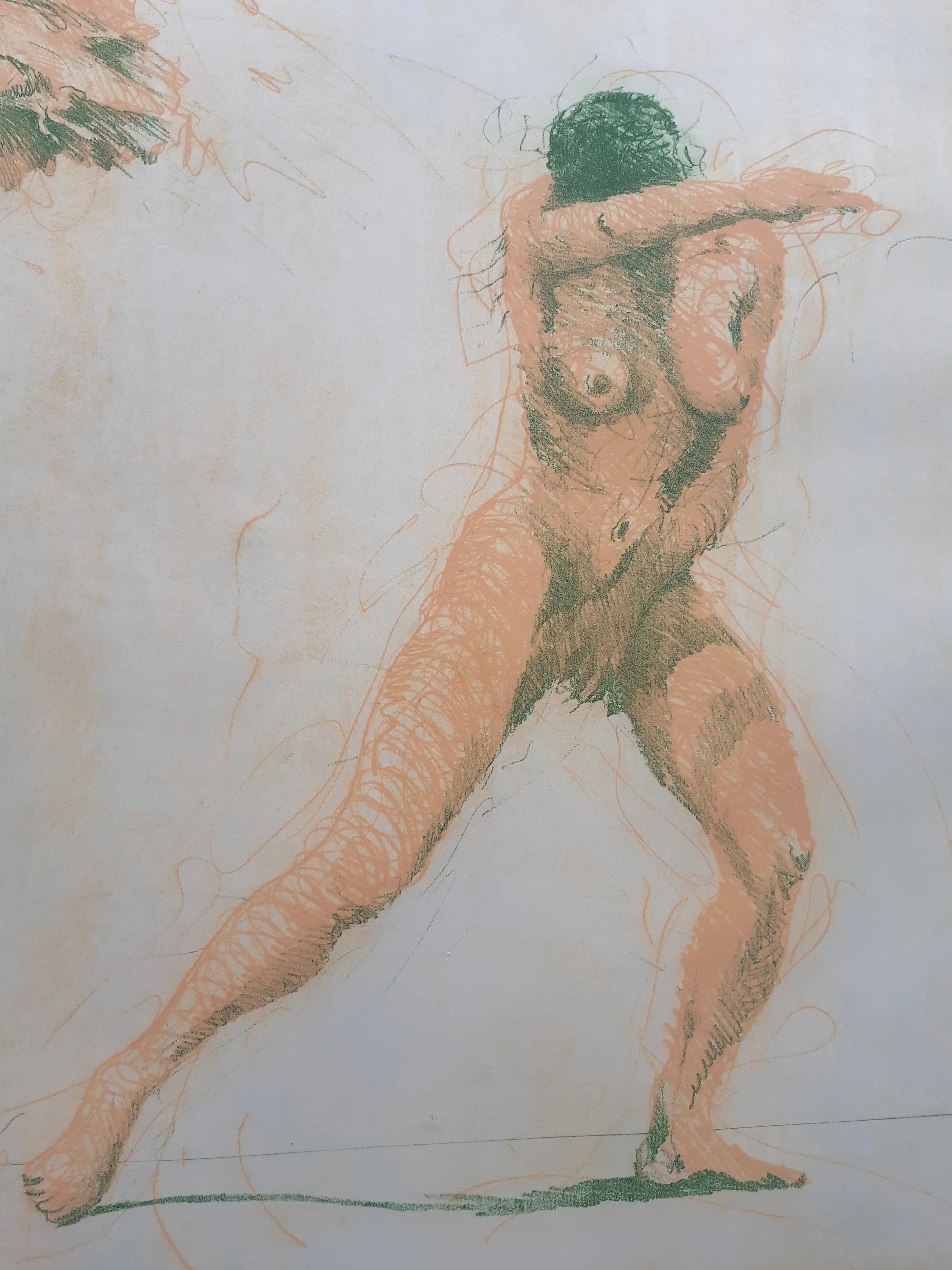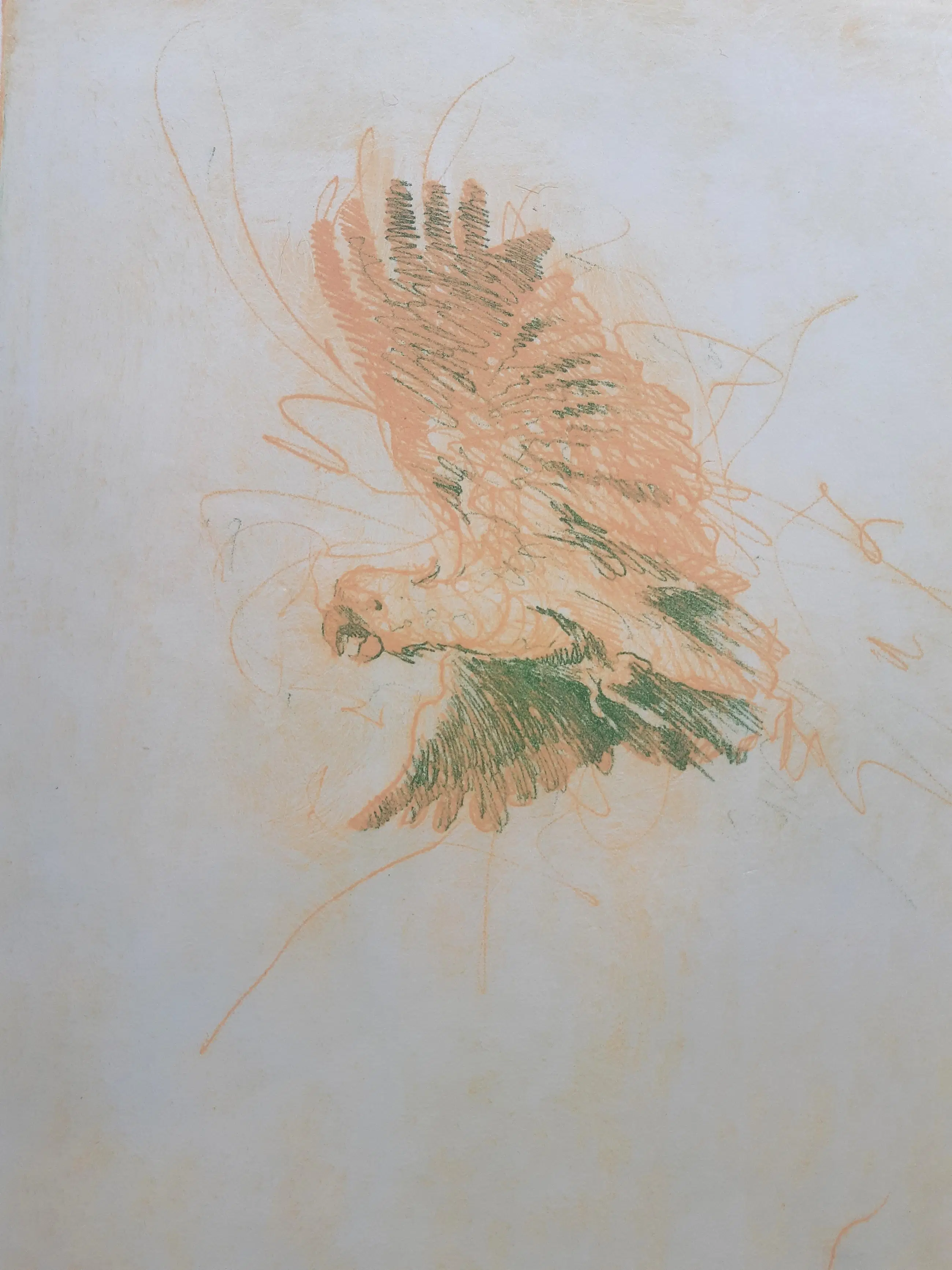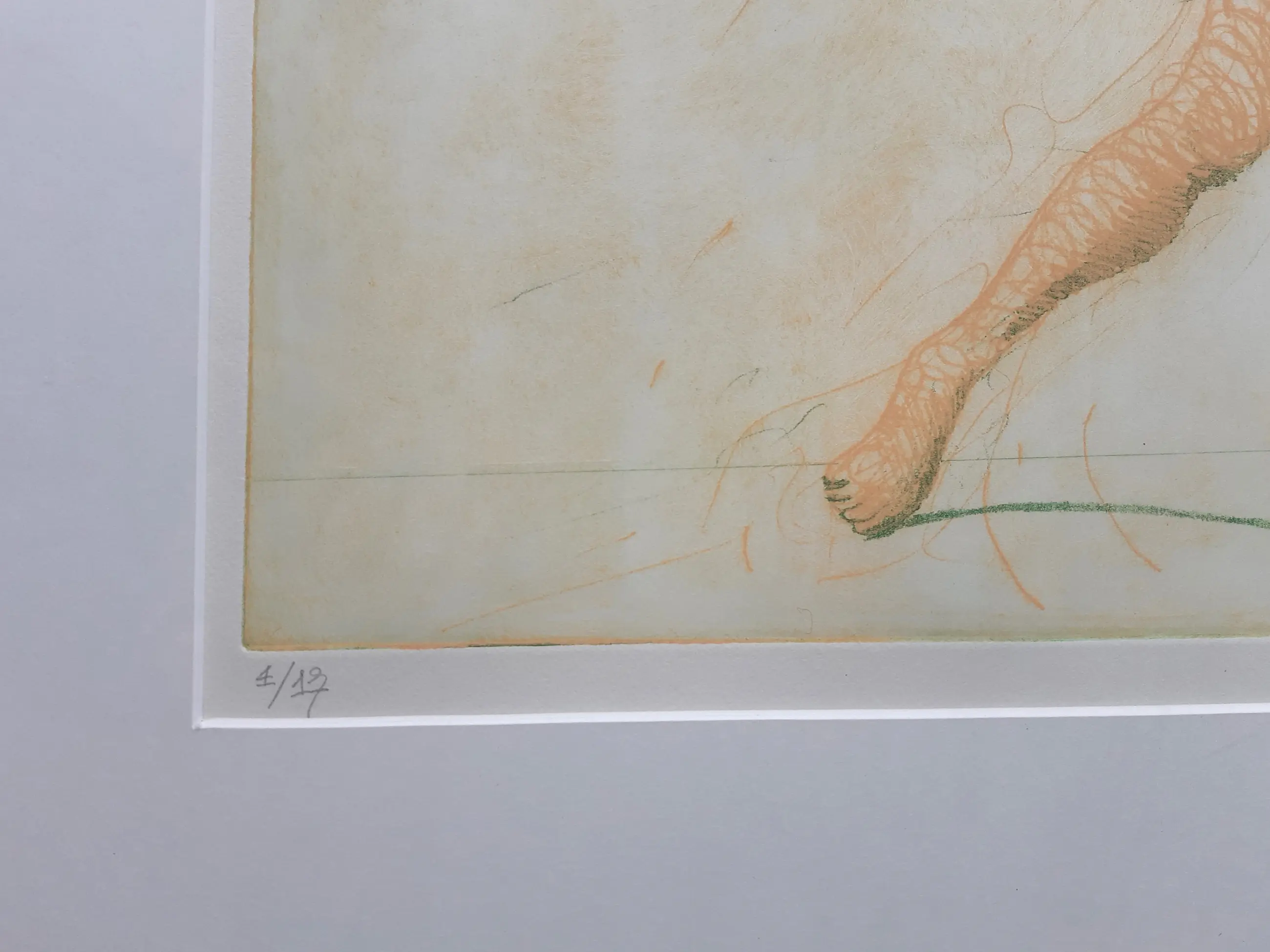 Grote intrigerende ets van Ronald Tolman, volgens etiket op achterzijde getitel Leda (met papegaai?). Met potlood gesigneerd, gedateerd en genummerd. Ingelijst in witte aluminium lijst. De conditie van de ets is uitstekend, de lijst heeft lichte gebruikssporen (zie foto).
