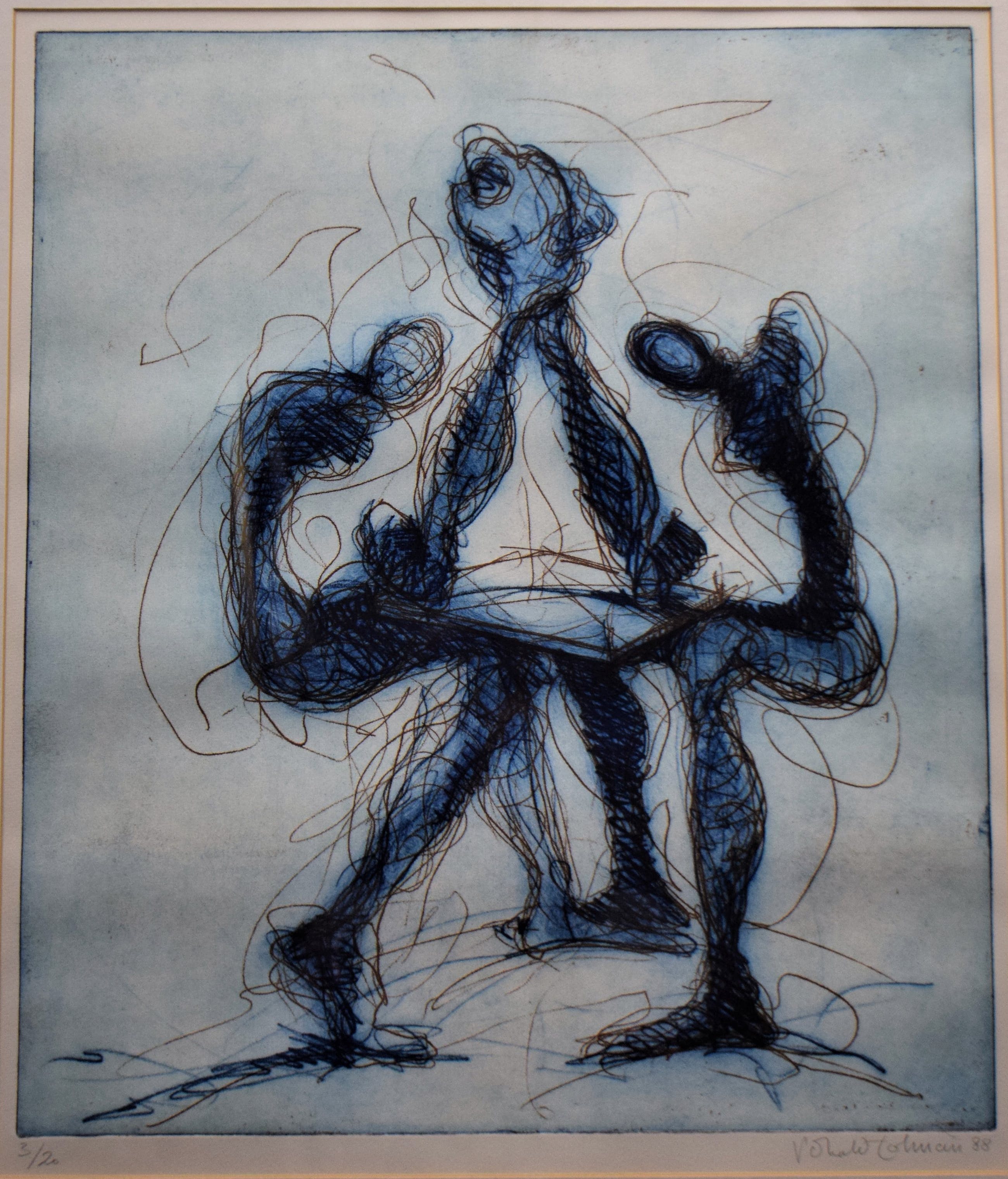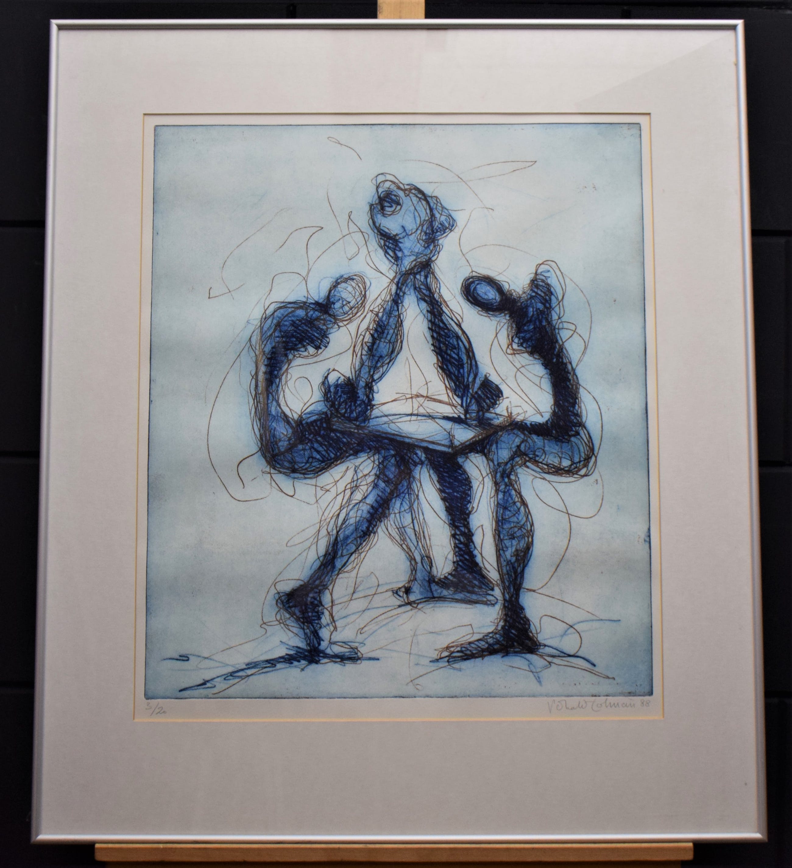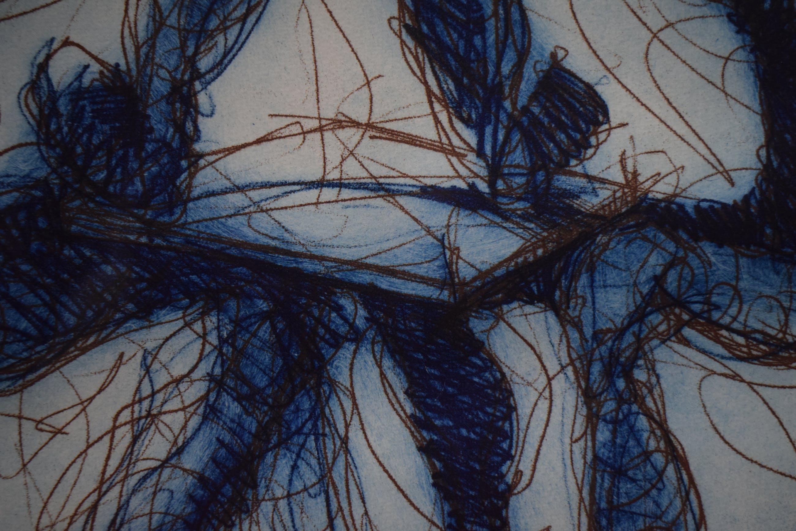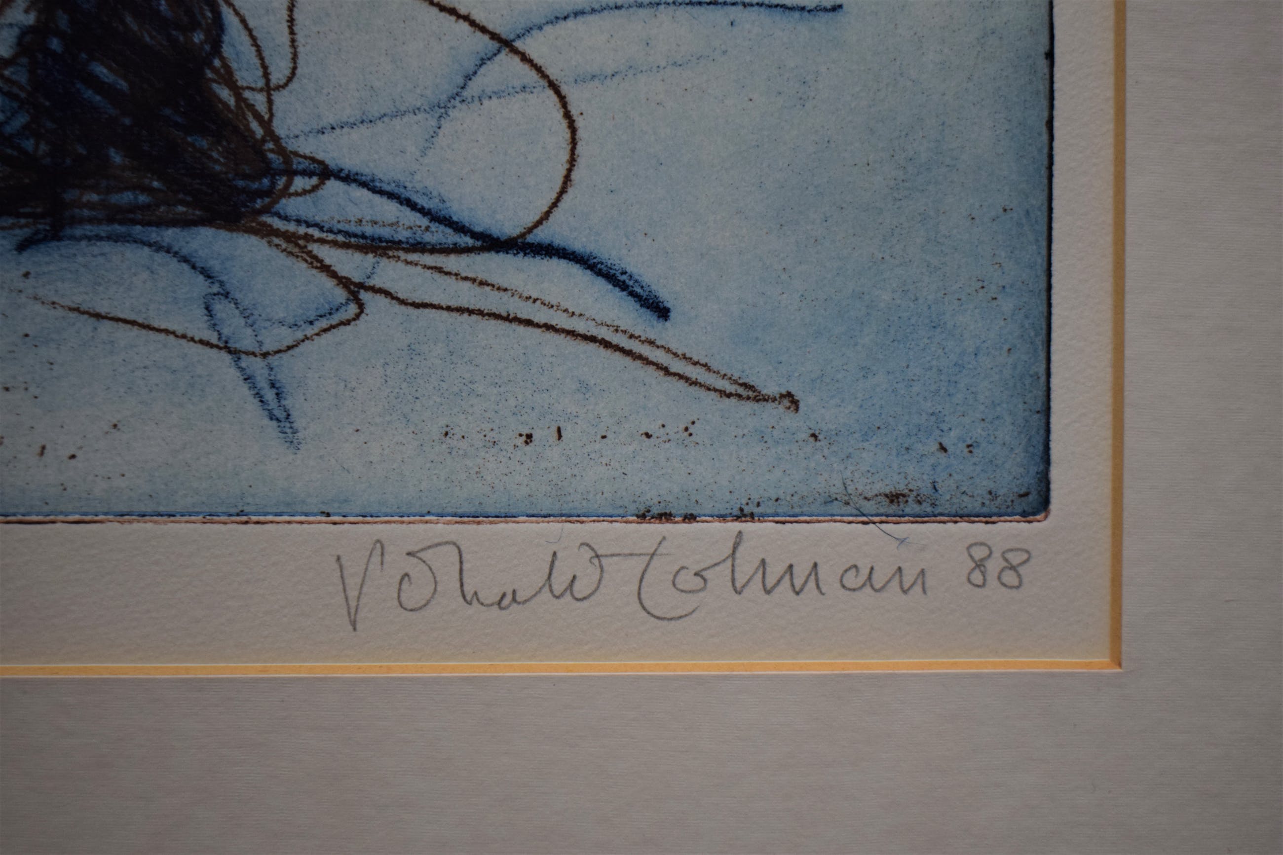 Titel: Zonder titel Jaartal: 1988 Afmetingen: 77 x 66 Gesigneerd: Ja, handgeschreven met potlood (rechtsonder) Materiaal: Ets op papier Ingelijst: Ja Conditie: In zeer goede staat.