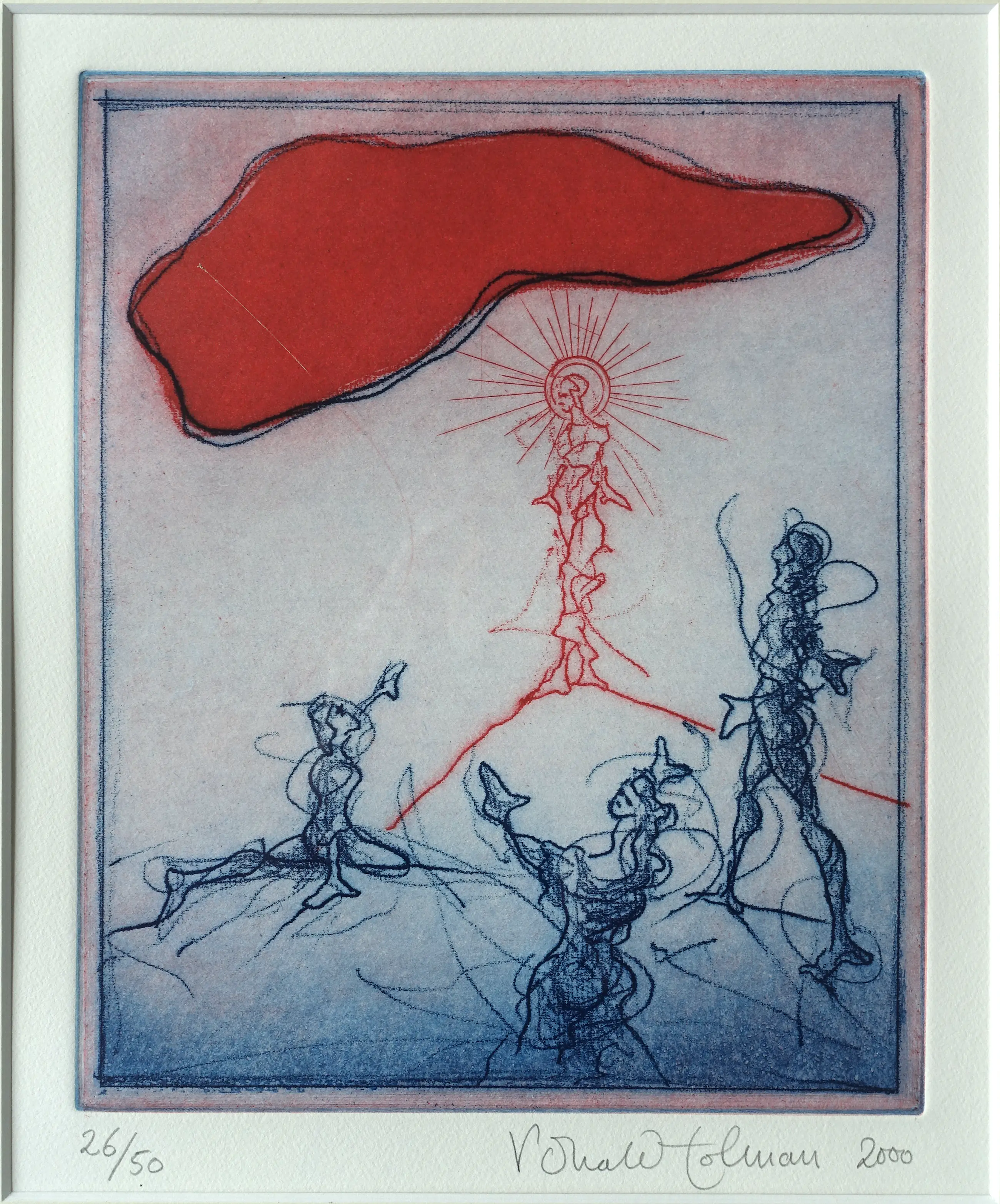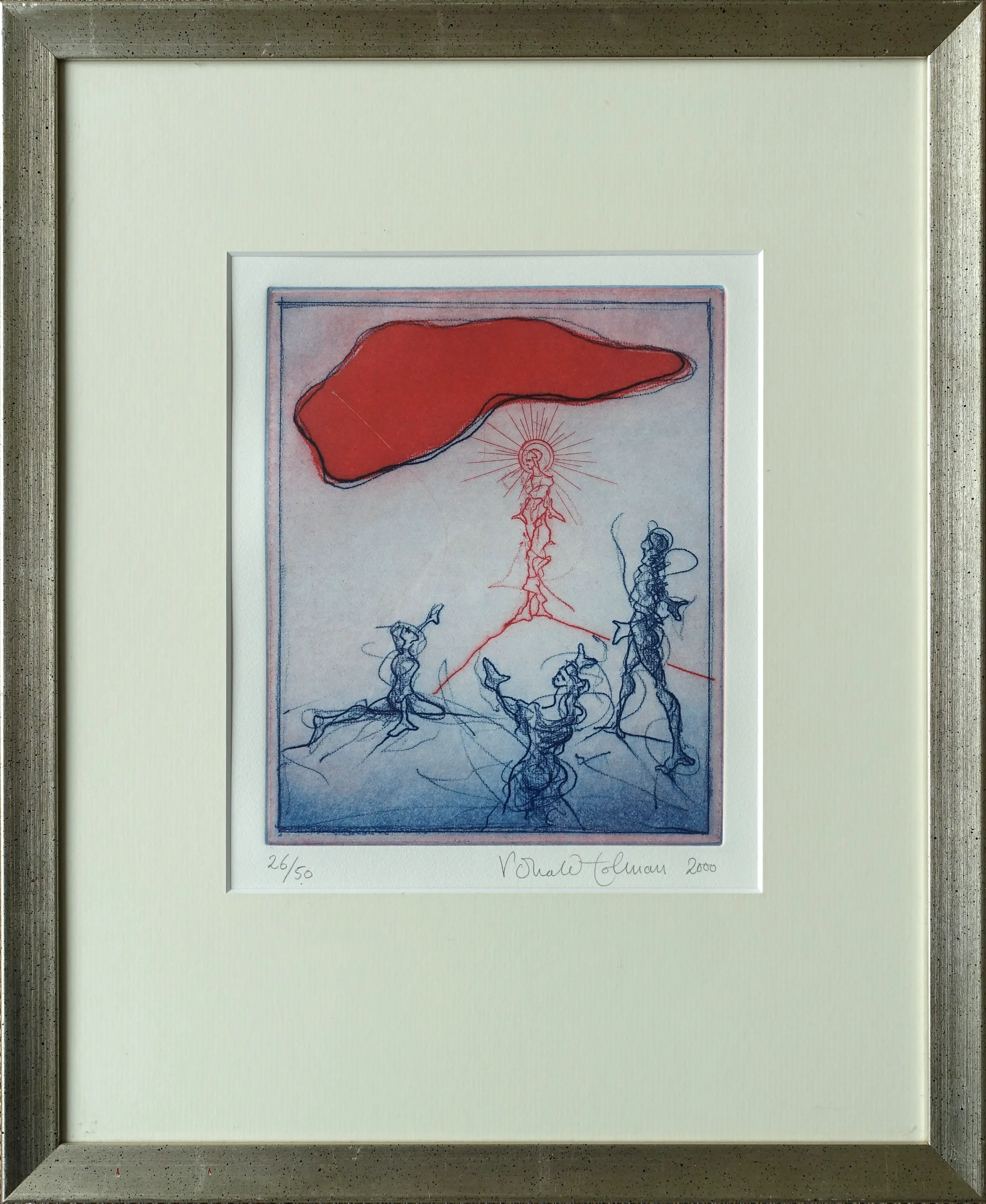Ets van Ronald Tolman in zilverkleurige houten lijst. De ets en de lijst zijn in een zeer goede staat.