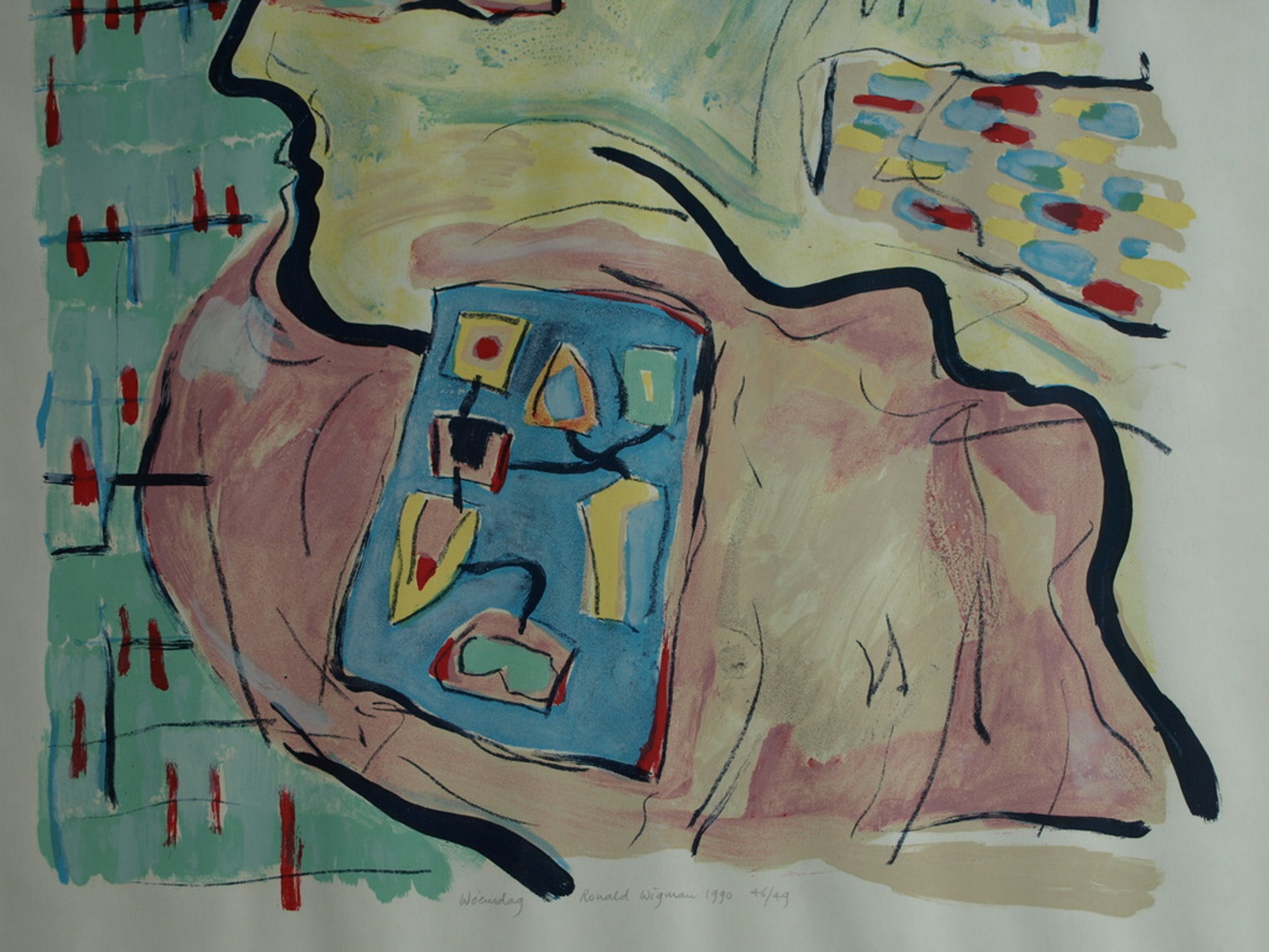 Een zeefdruk uit 1990 van de Nederlandse kunstenaar Ronald Wigman, getiteld “Woensdag”.