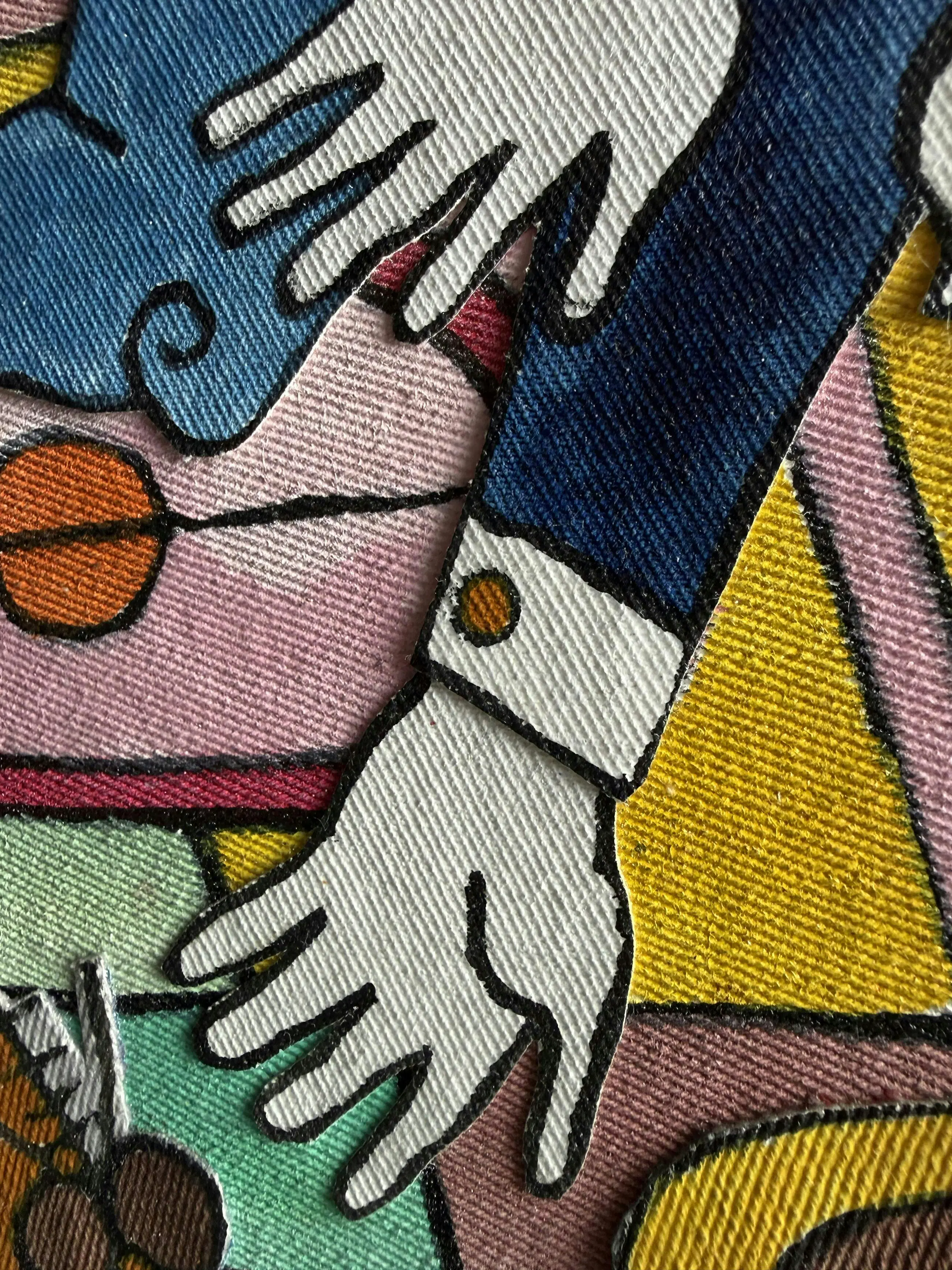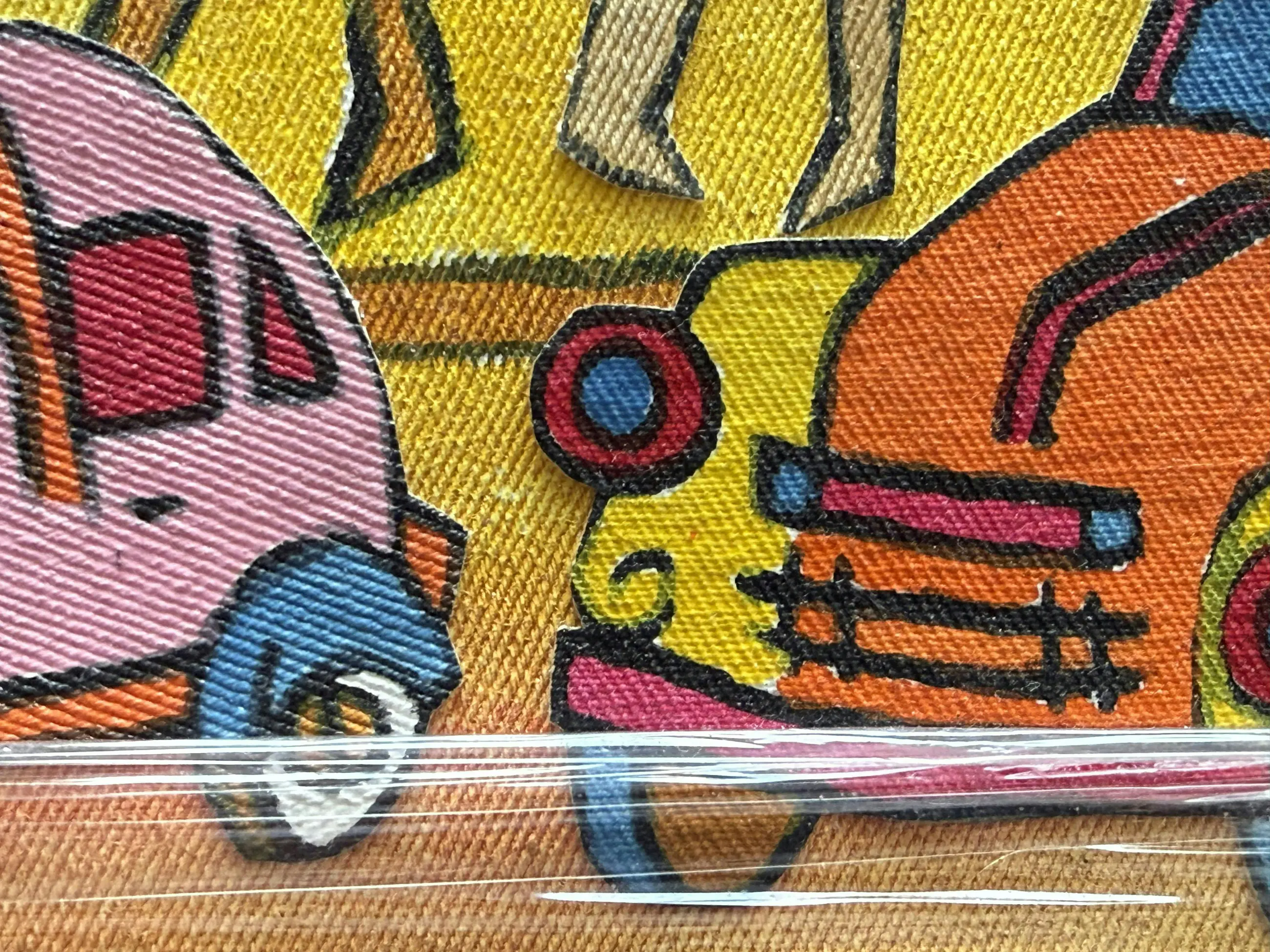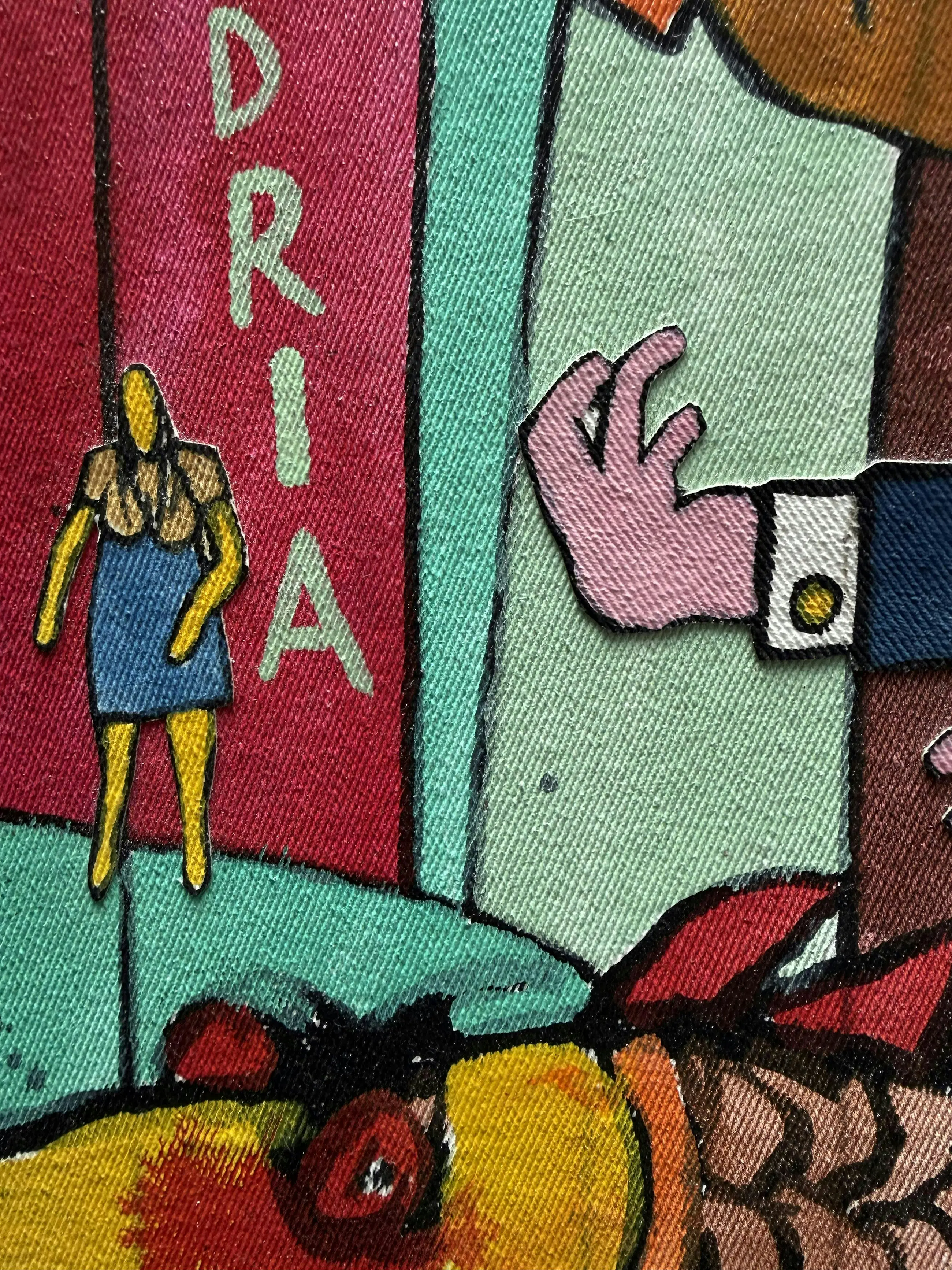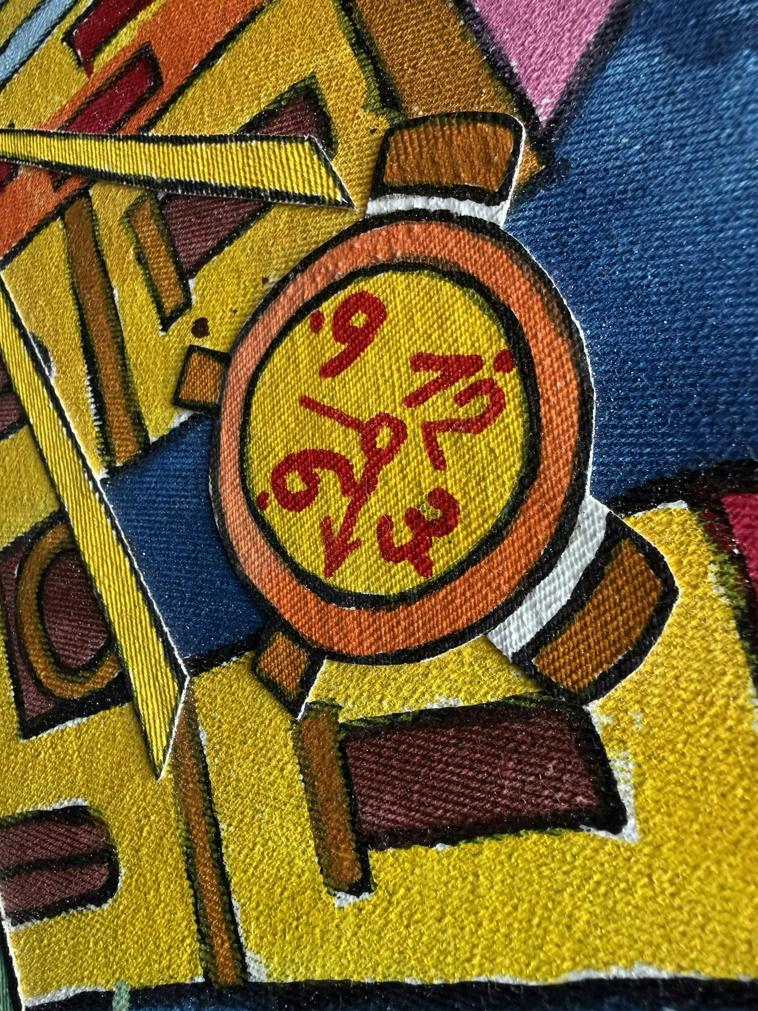 Schilderij met gemengde techniek: op doek geschilderde objecten zijn, samen met enkele andere kleine objecten, op het doek bevestigd. Ronaldo Torquato (1957) is een Braziliaanse kunstenaar, geboren in Rio de Janeiro. Hij staat bekend om zijn figuratief-abstracte beeldtaal. Zijn schilderijen richten zich vaak op stedelijke en menselijke thema's.