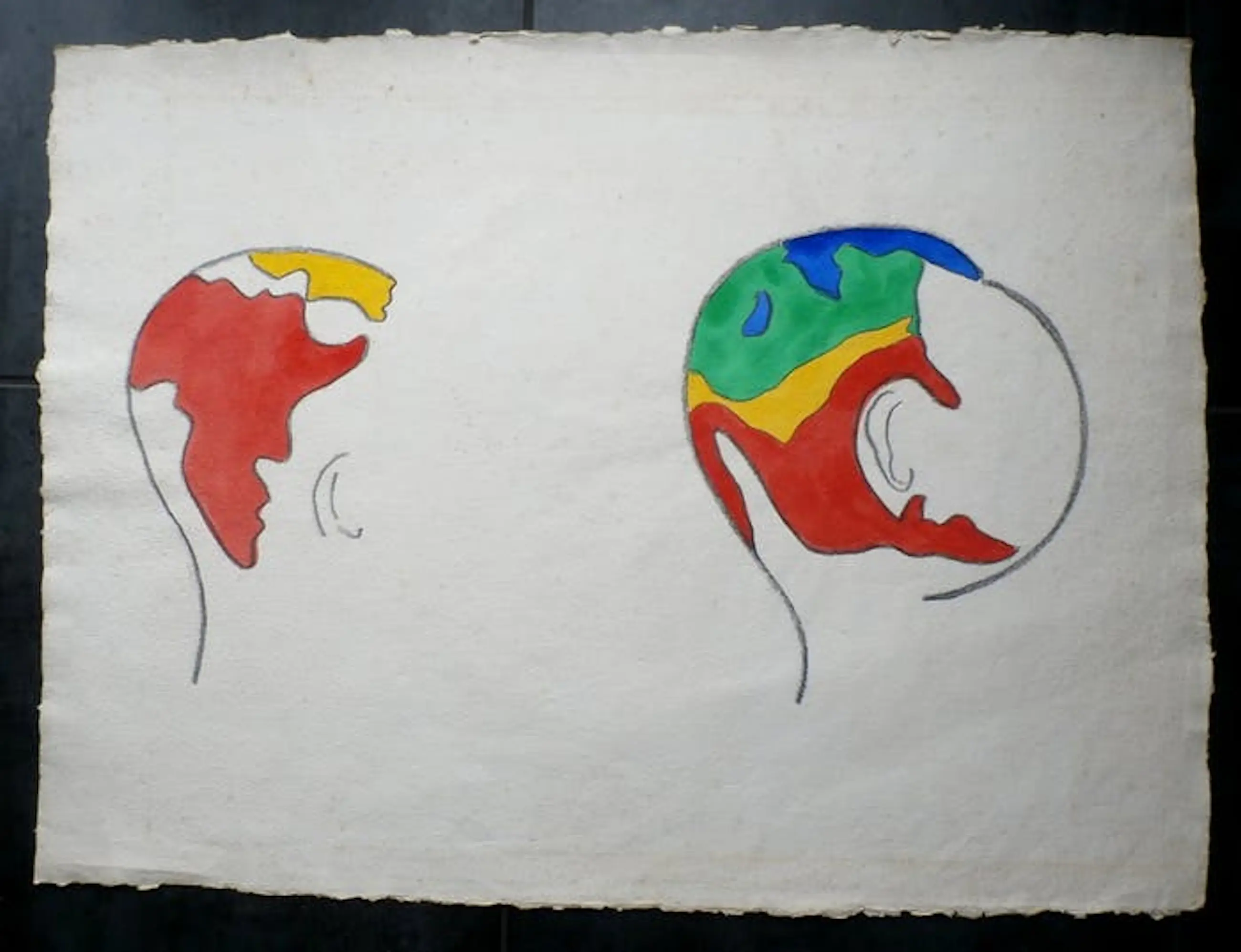 Gemengde techniek van de Amerikaanse kunstenaar Ronnie Cutrone. Jaar: 1975. Afmetingen werk: H76 x b100,5 cm. Het werk is gesigneerd op de achterzijde van het werk. De authenticiteit van het aangeboden werk wordt volledig gegarandeerd. Een certificaat van echtheid kan, op aanvraag, worden gemaild.