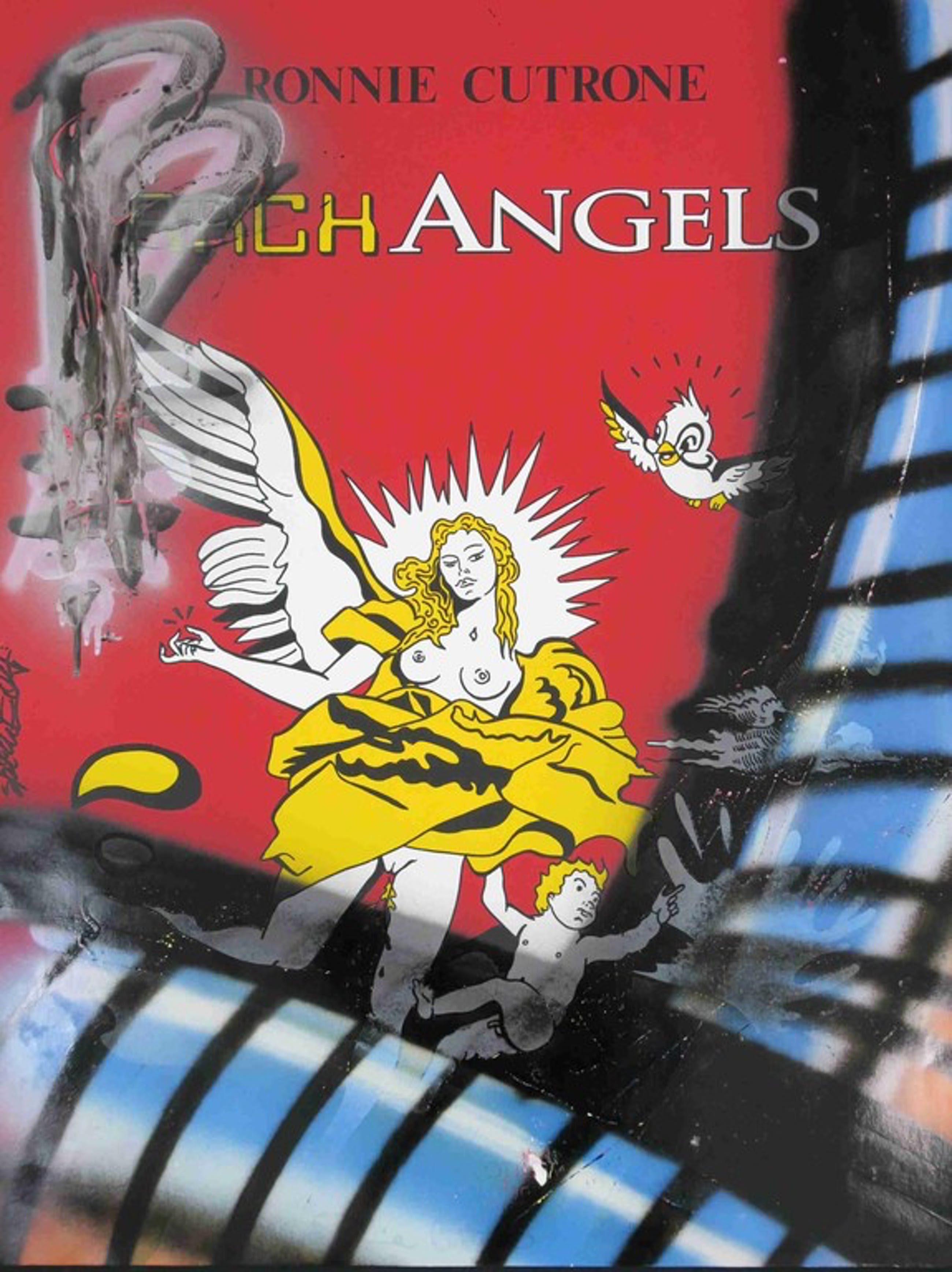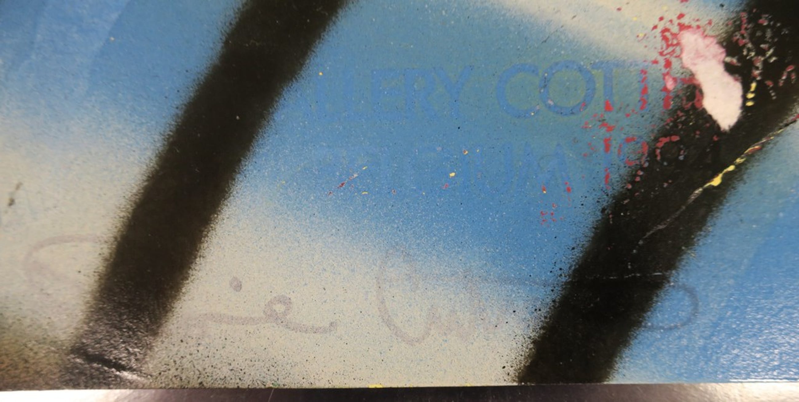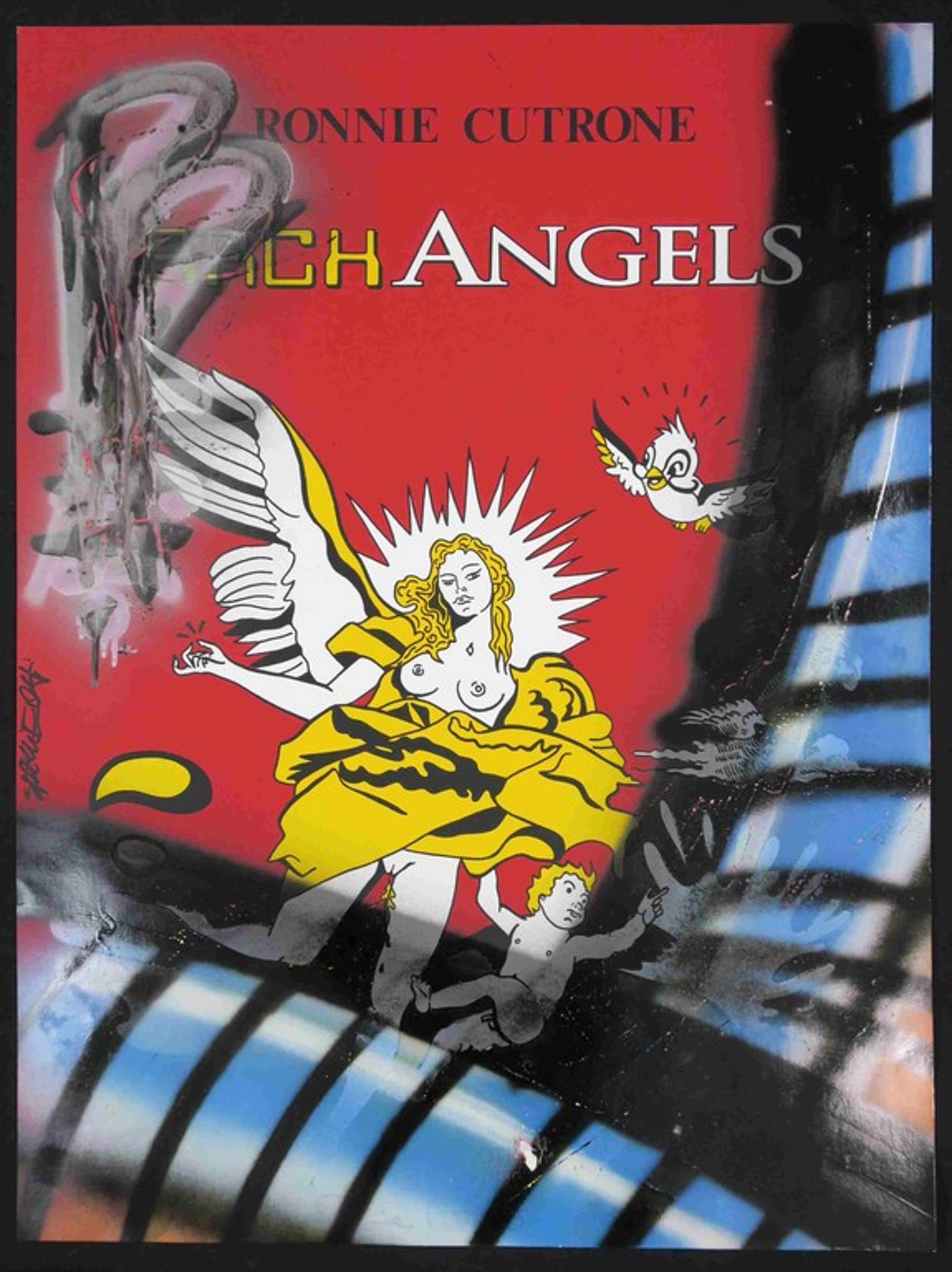 Met graffiti bewerkte zeefdruk van Ronnie Cutrone (die o.a. Andy Warhol's assistent was tussen 1972 en 1980)
