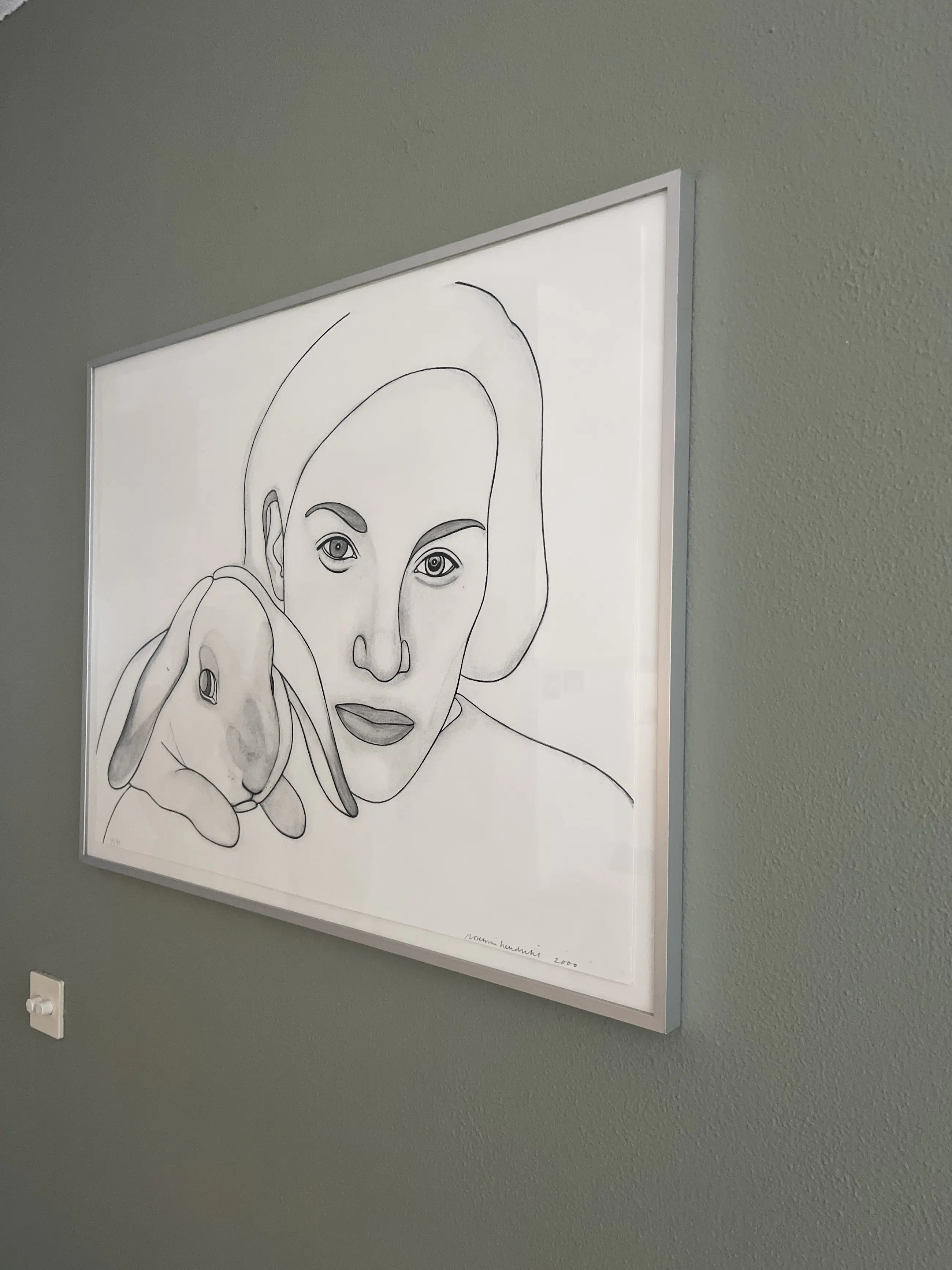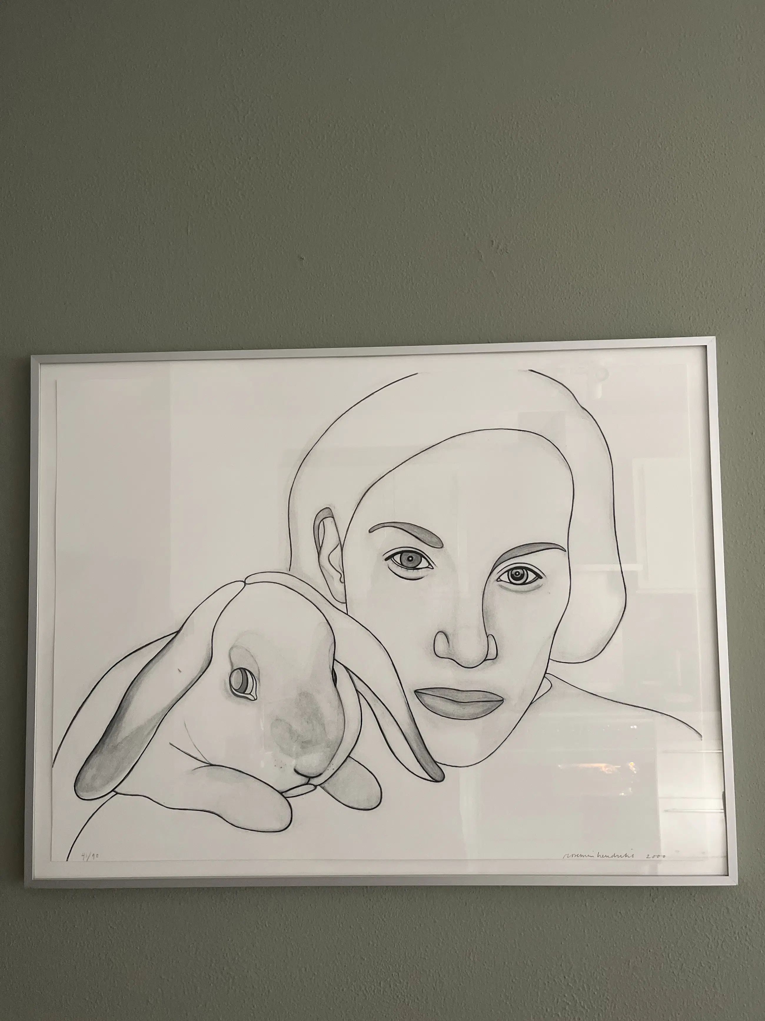 Vrouw met konijn van Rosemin Hendriks, zeer goede staat incl.lijst