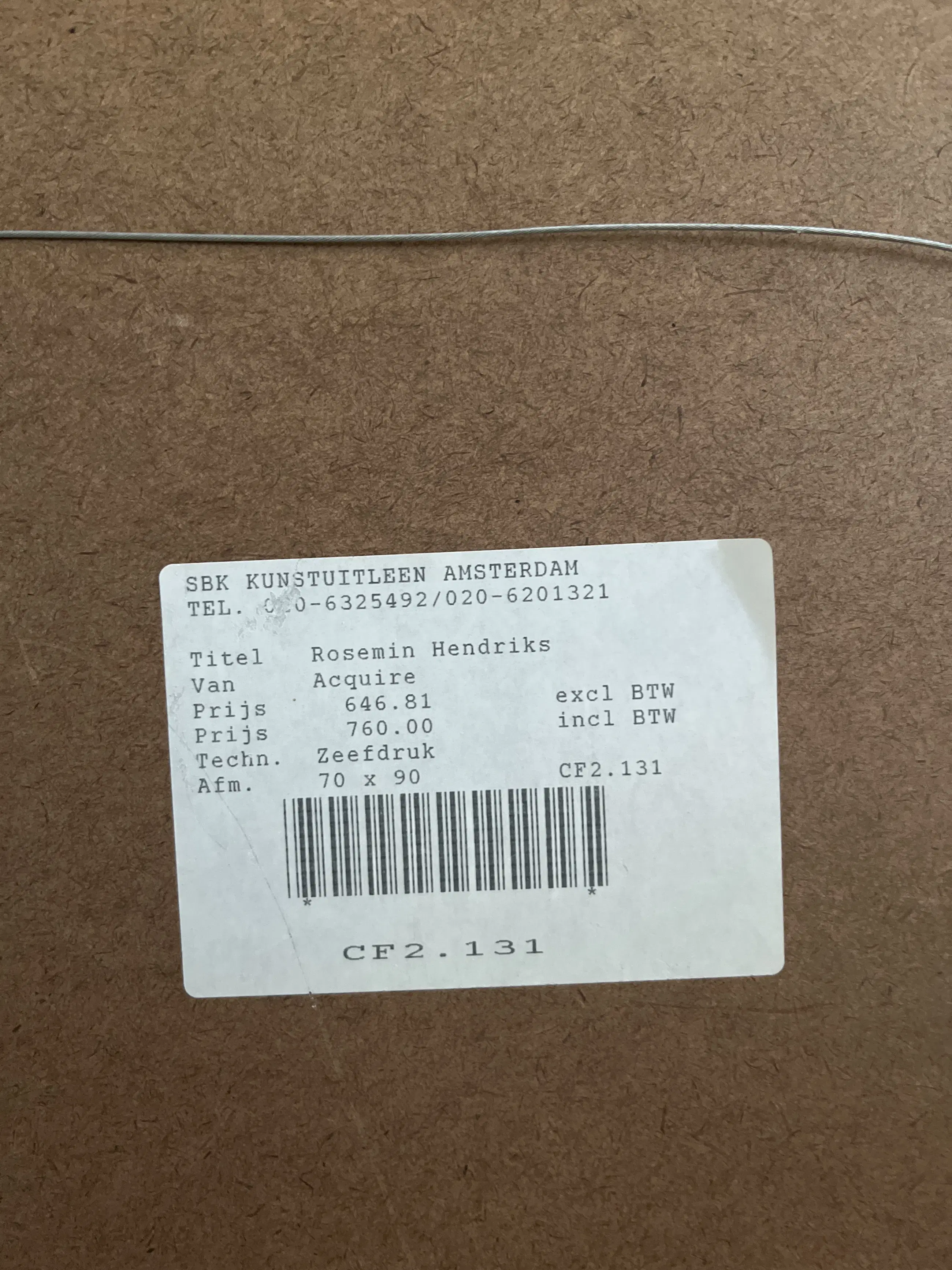 Ben u niet in staat om een werk zelf af te halen, dan kunt u een koeriersdienst inschakelen om het werk te laten afhalen. Klik hier voor meer informatie over hoe dit werkt en bekijk de tarieven.