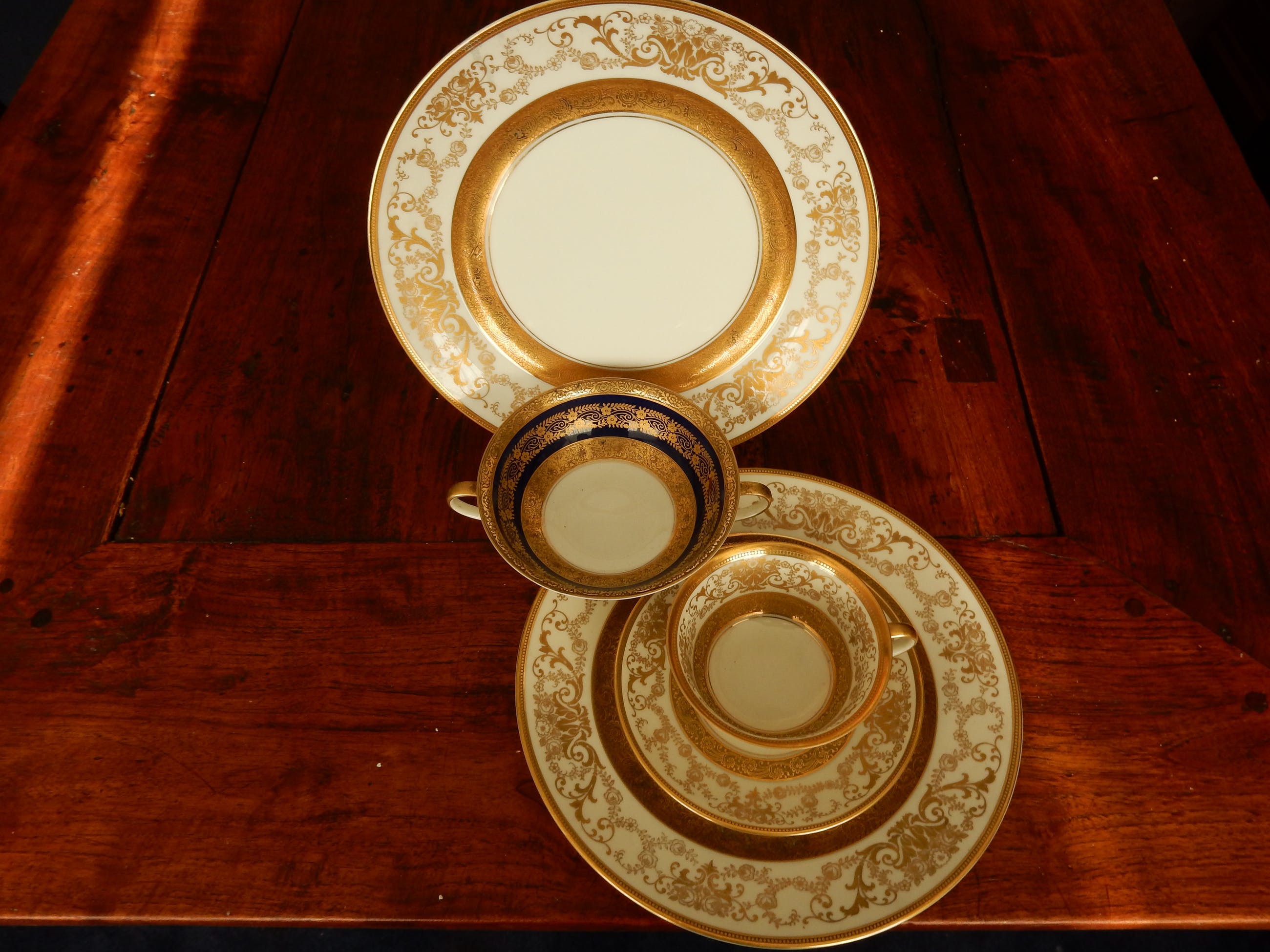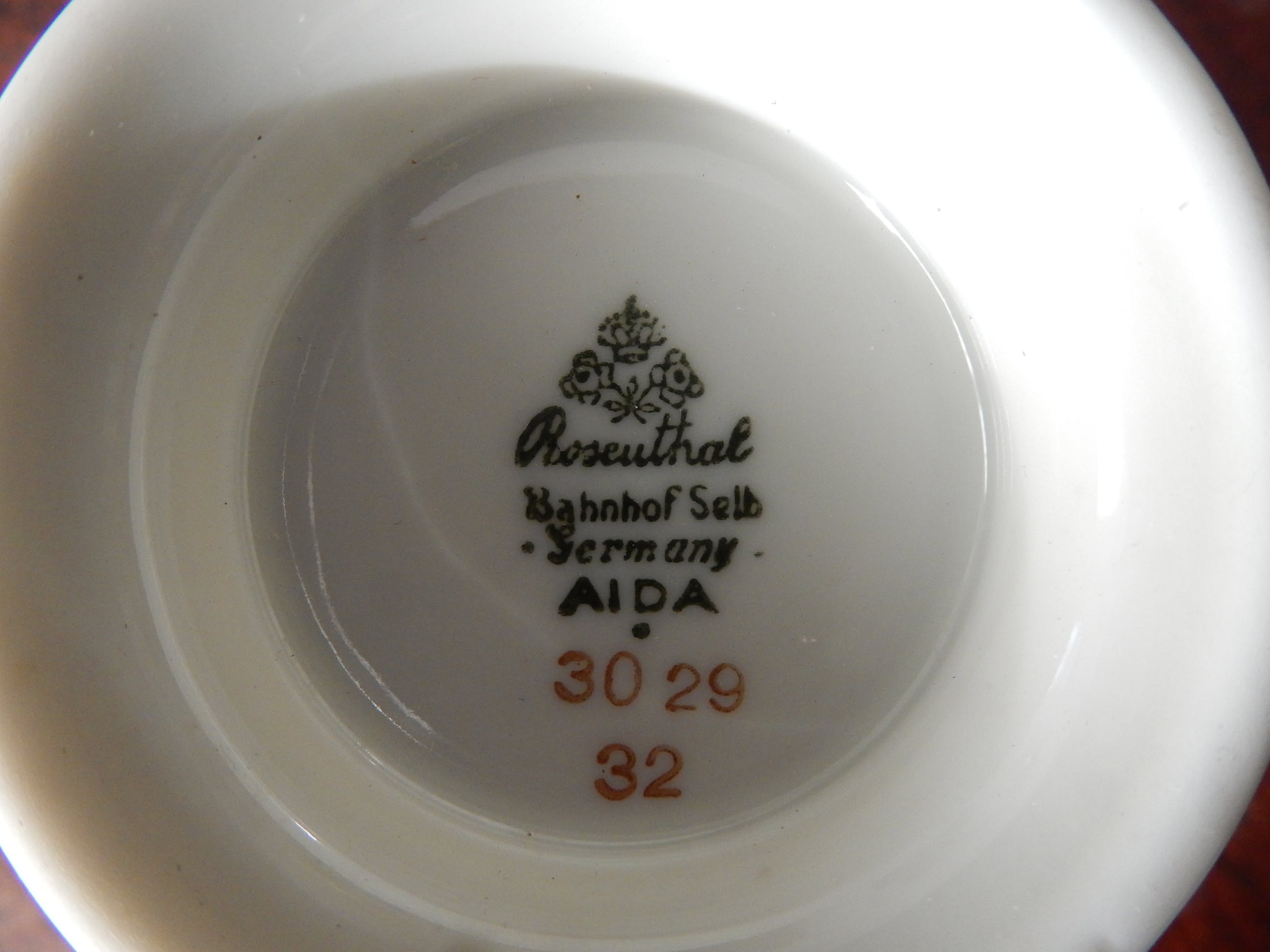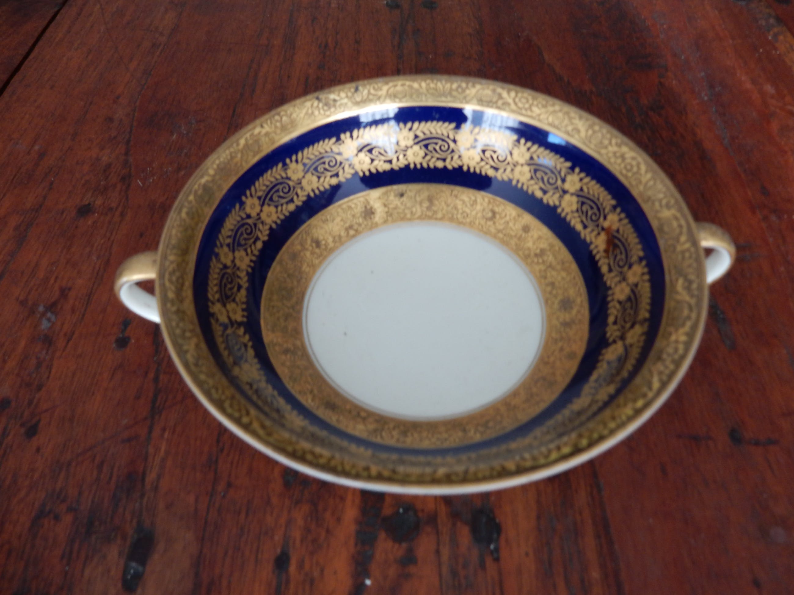 Rosenthal klassiek, ongeveer eind 20 e eeuwBahnhof Selb Germany vorm Aida 2 teller/bord 25 cm diameter / rijk gedecoreerd goud decor 1 thee kop en schotel / rijk gedecoreerd goud decor1 presenteer schaaltje / rijk gedecoreerd met goud en kobalt blauw onder glazuur.