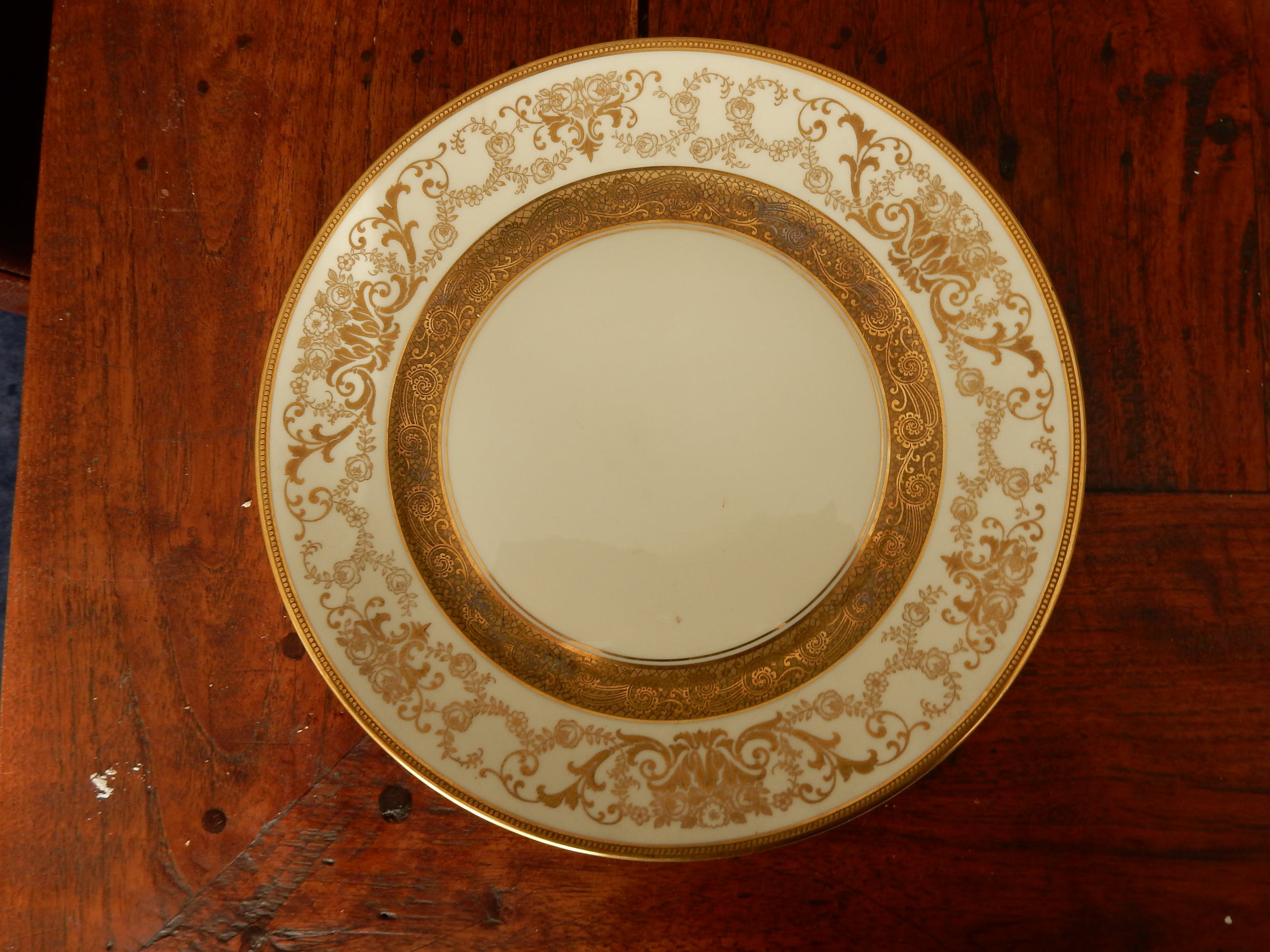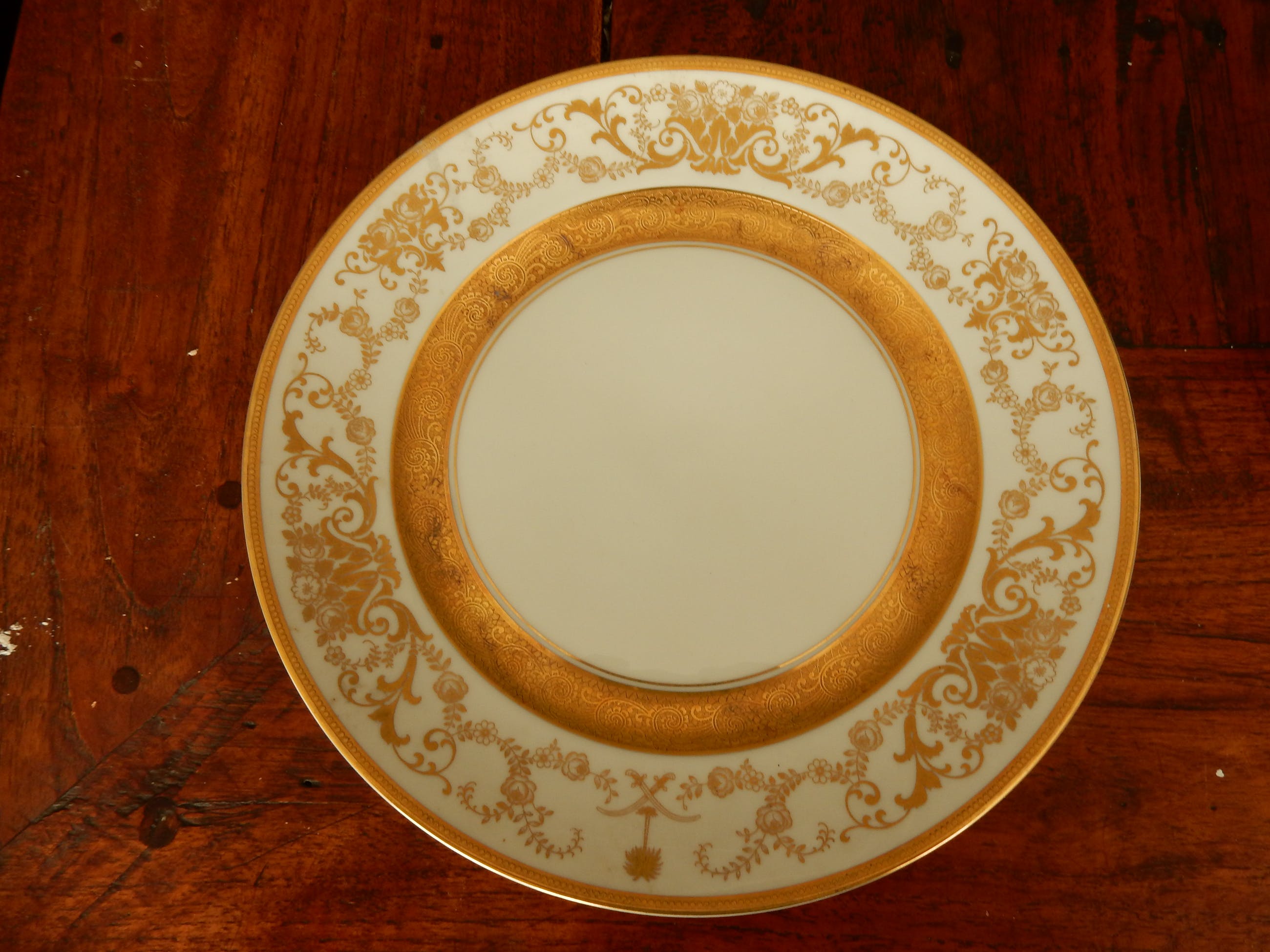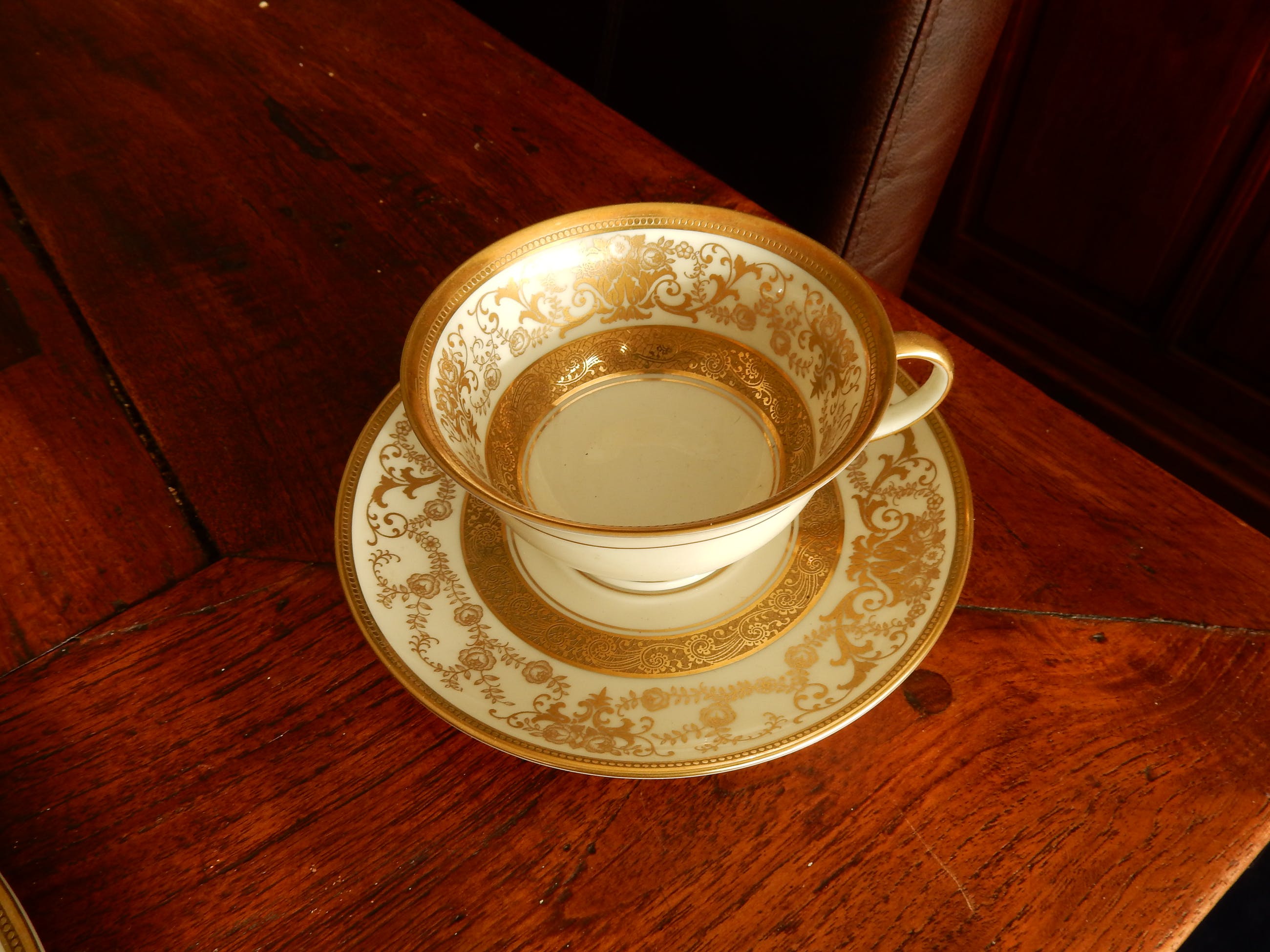 Rosenthal klassiek, ongeveer eind 20 e eeuwBahnhof Selb Germany vorm Aida 2 teller/bord 25 cm diameter / rijk gedecoreerd goud decor 1 thee kop en schotel / rijk gedecoreerd goud decor1 presenteer schaaltje / rijk gedecoreerd met goud en kobalt blauw onder glazuur.