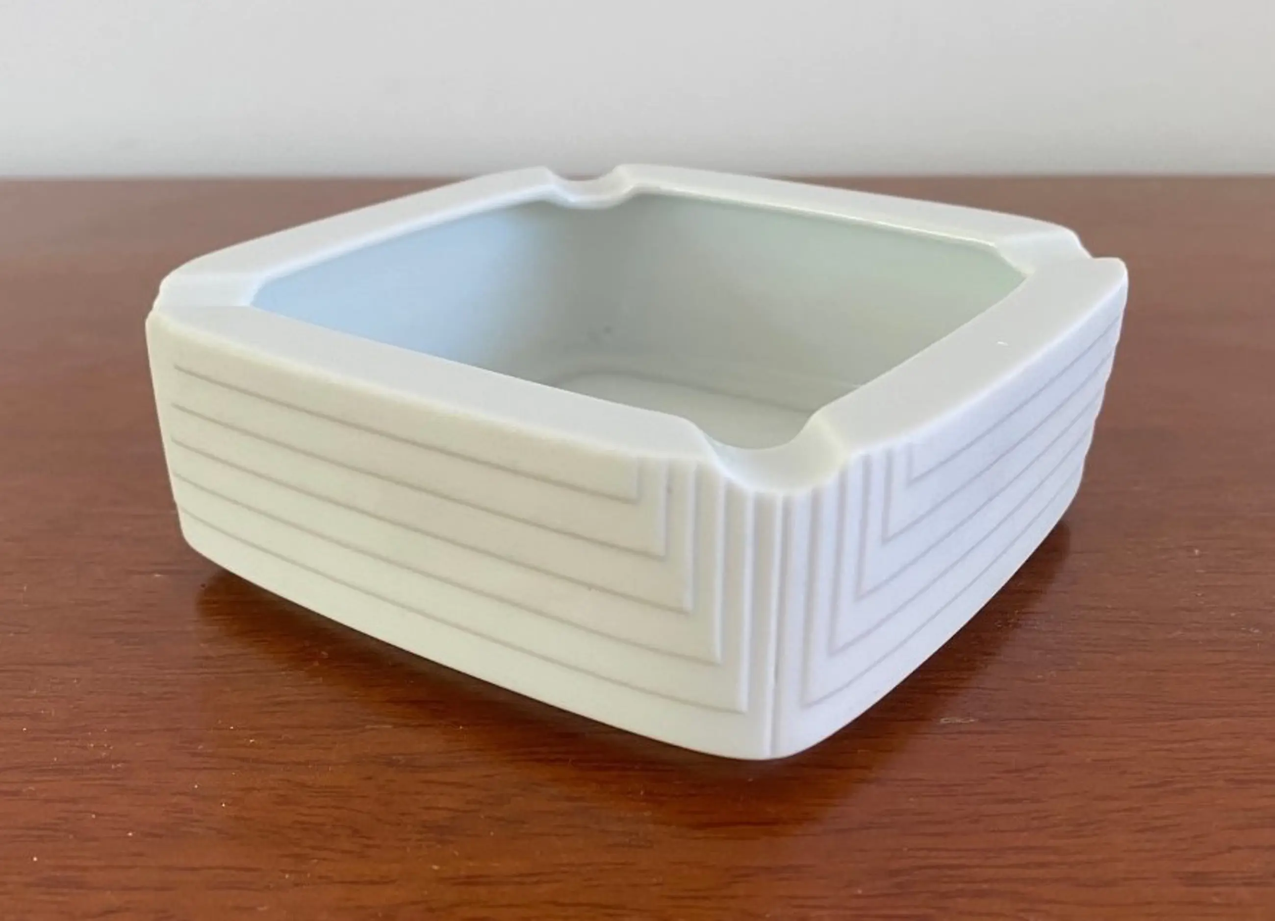 Christa Hausler Goltz - Op Art Architectonische biscuit porseleinen asbak voor Rosenthal. Tof ding, in nieuwstaat! De buitenzijde is van biscuit en de binnenzijde is geglazuurd. Gesigneerd en gemerkt aan de achterzijde.