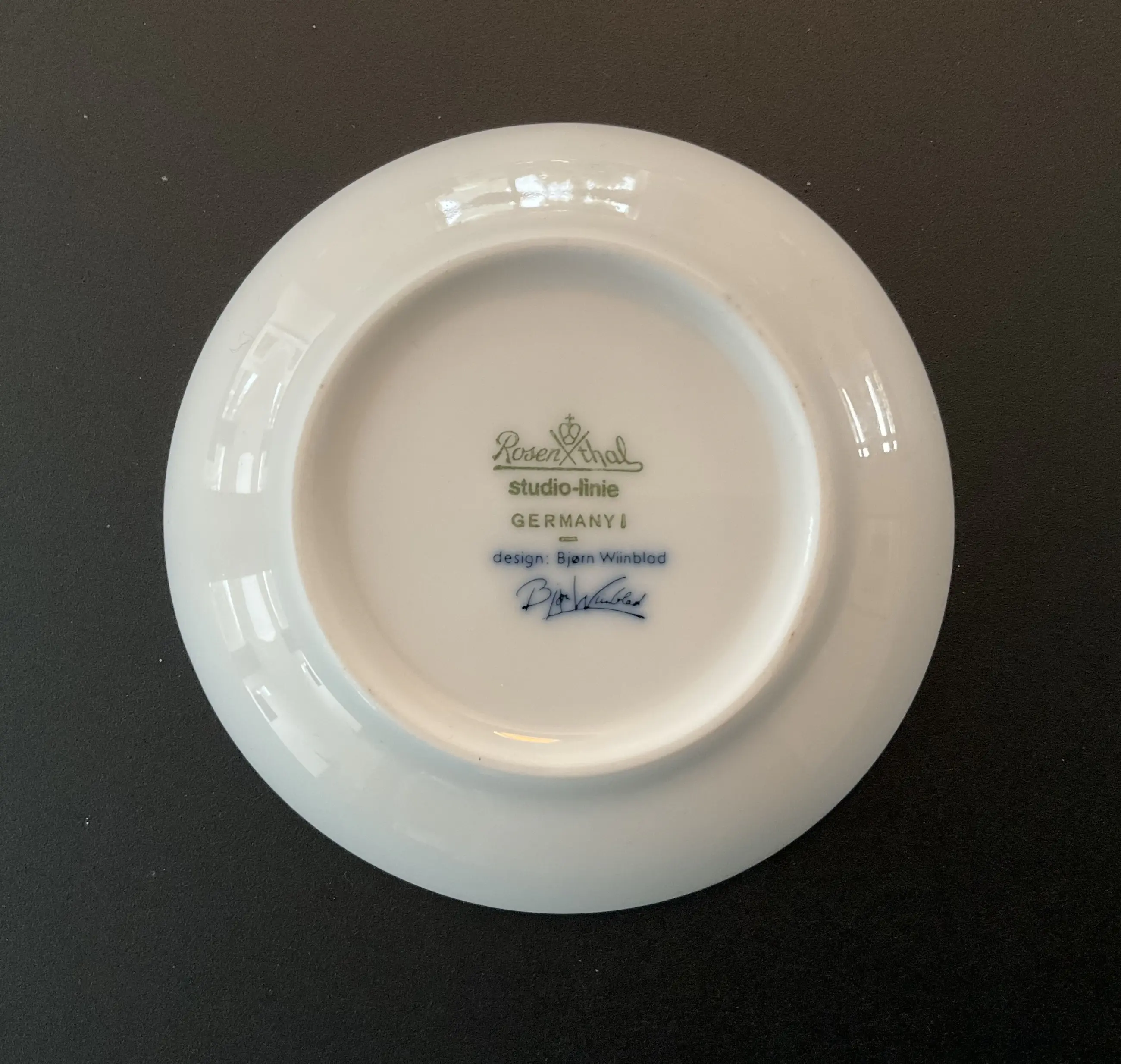 Het schaaltje is ook onderdeel van Studio-Linie en is een ontwerp van Björn Wiinblad. Het schaaltje heeft een doorsnede van 9,5 cm en is gesigneerd.