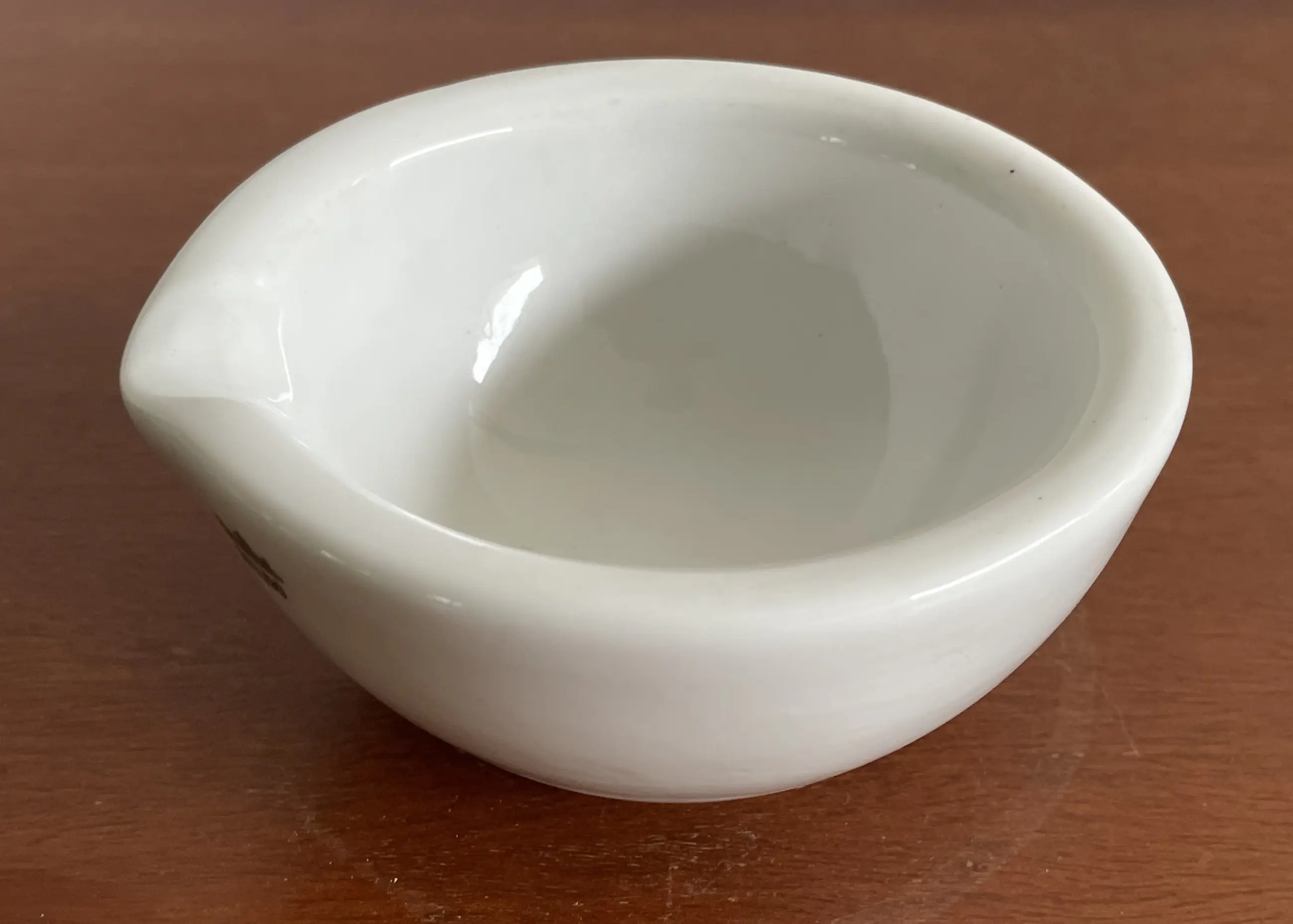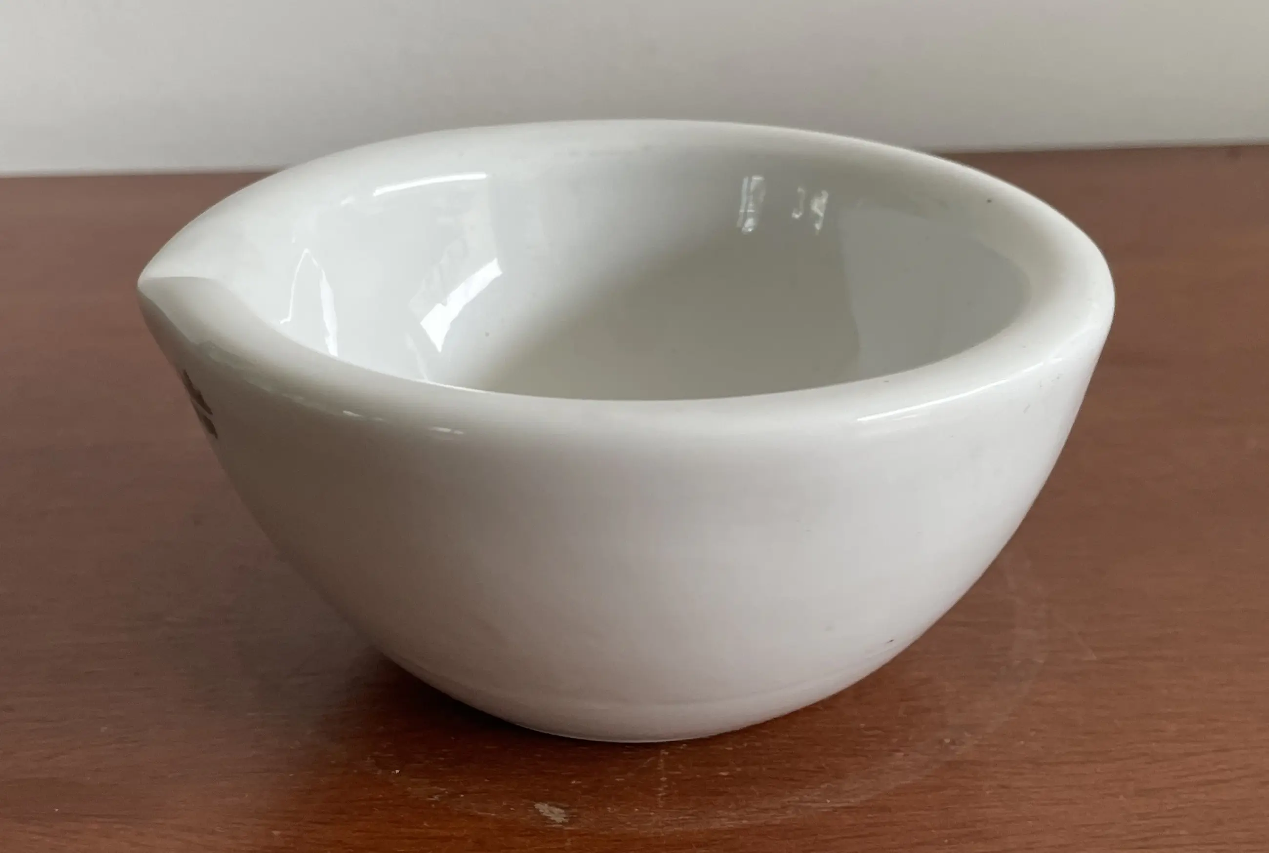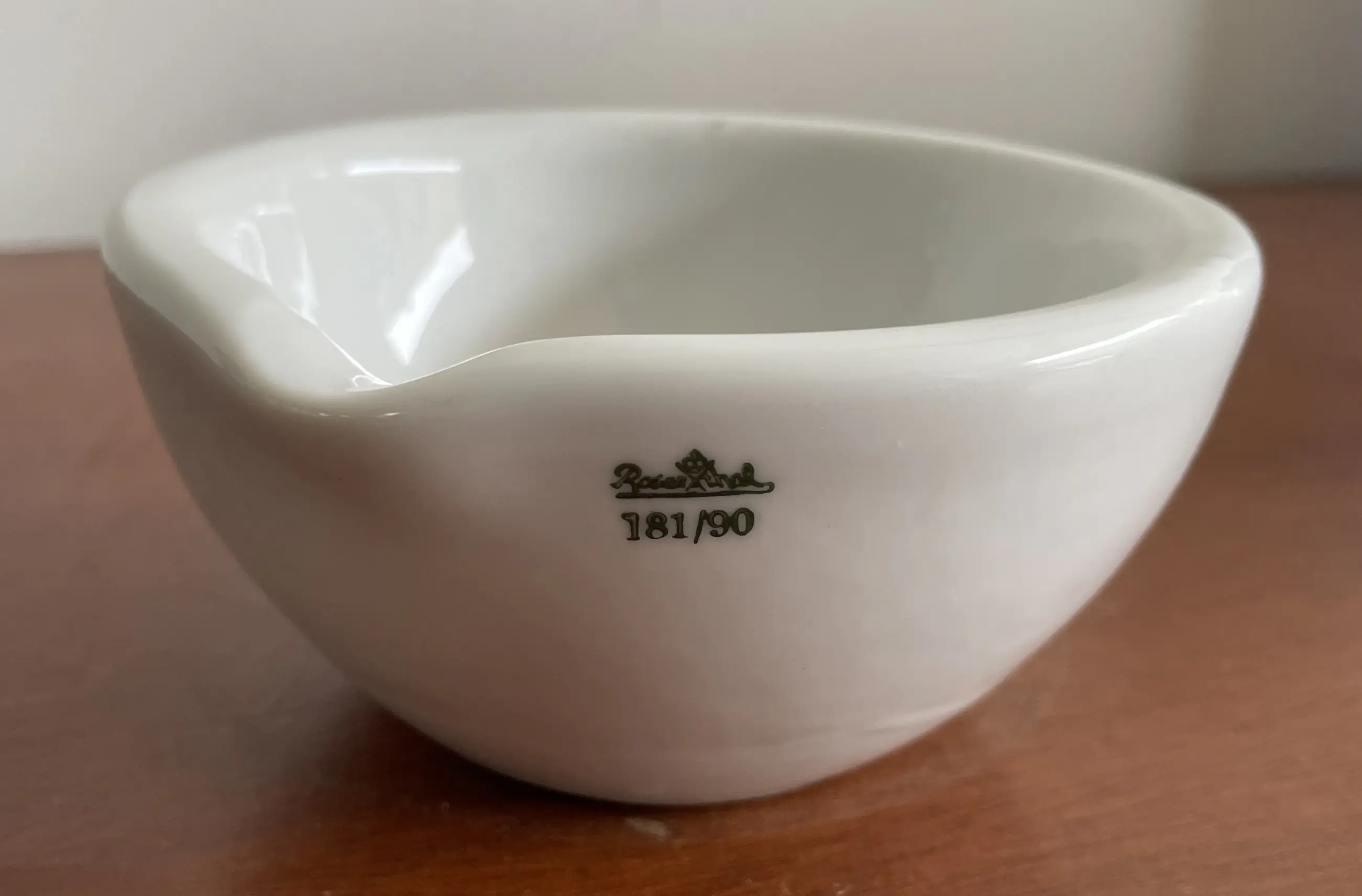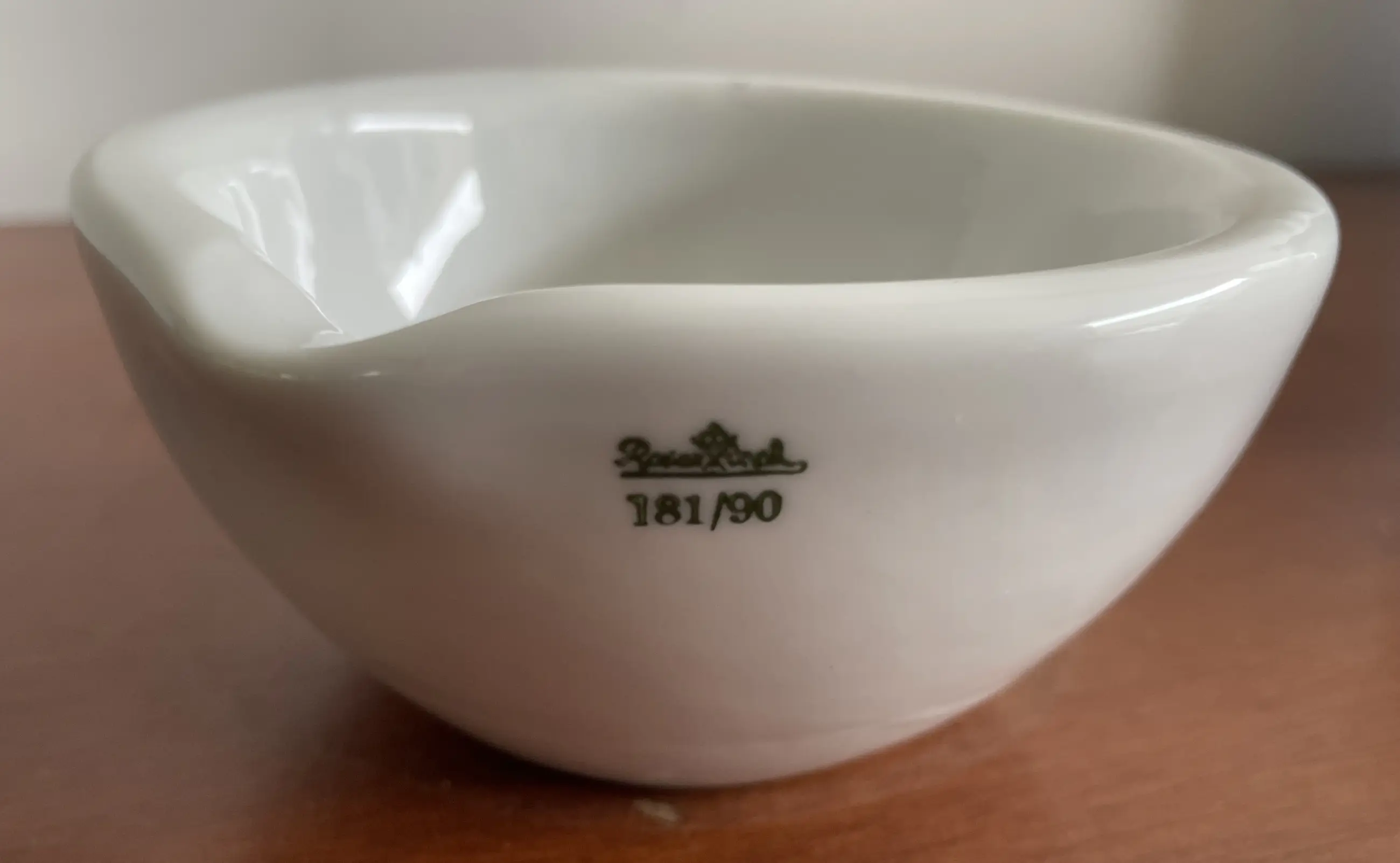 Dikwandige wit porseleinen apotheek mortier van Rosenthal. Komt helaas zonder stamper.